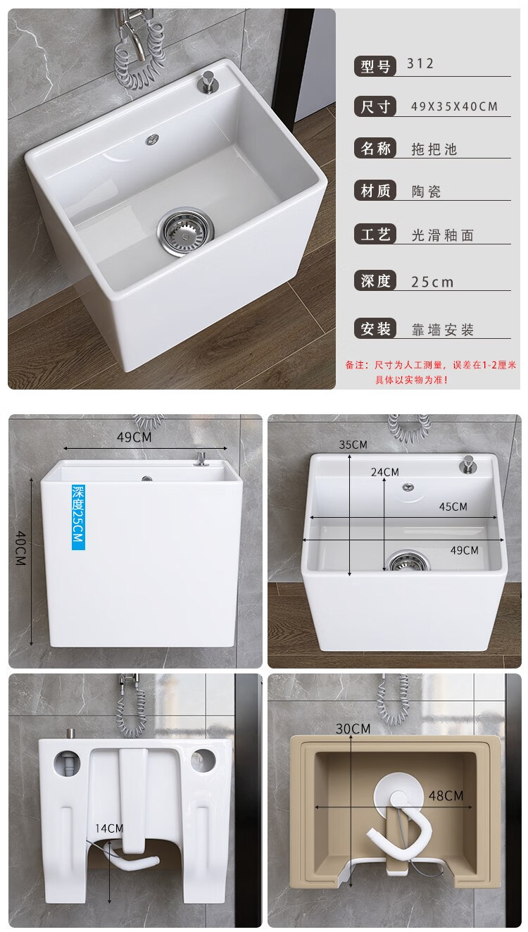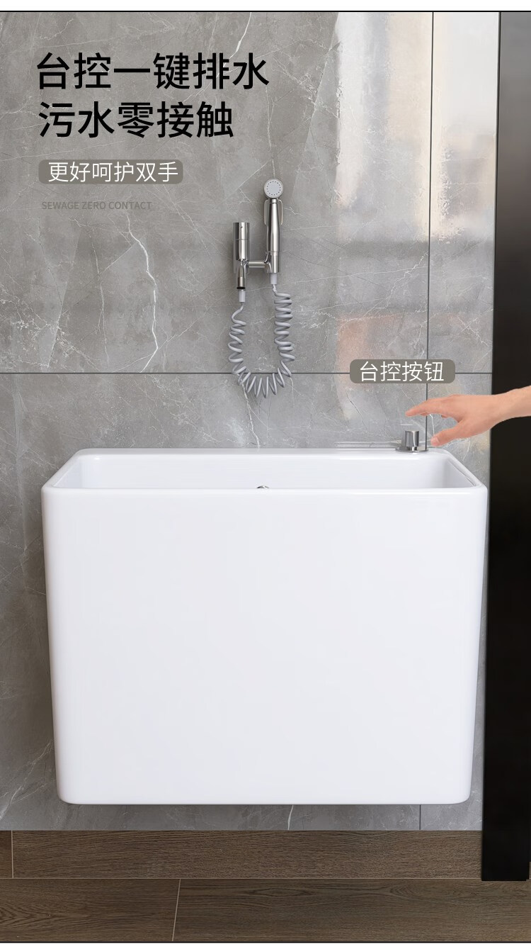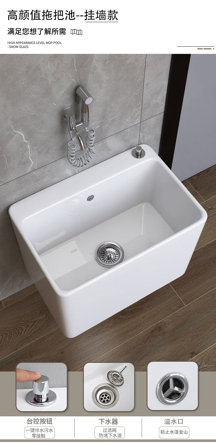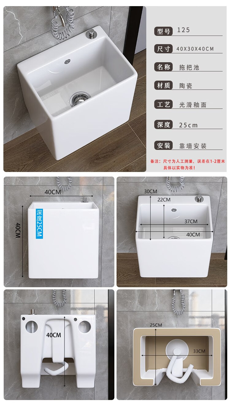 Wall-mounted wall-mounted mop pool household balcony ceramic bathroom wall-mounted large mop pool sink small 125+ anti-blocking drain wall-mounted