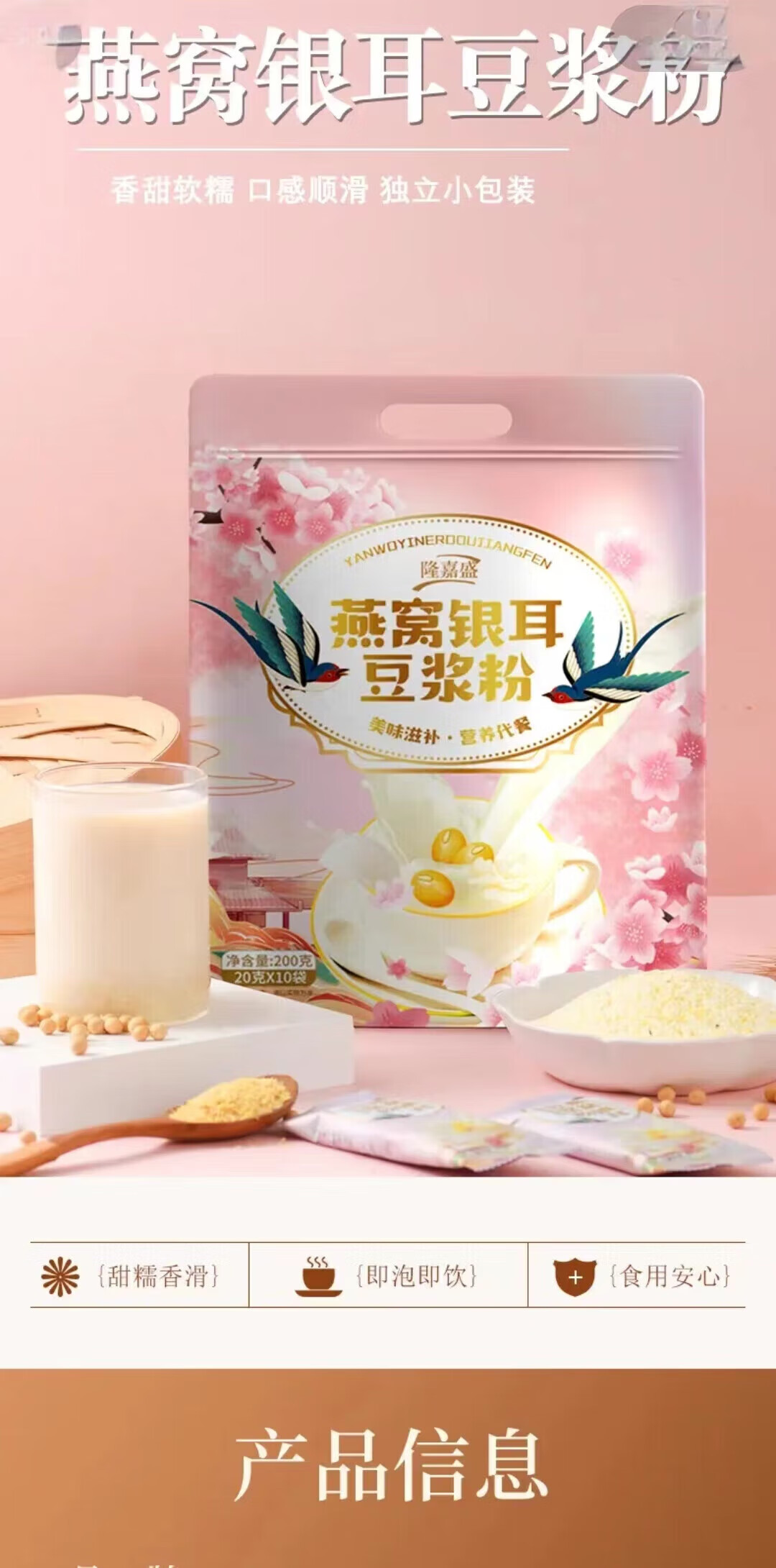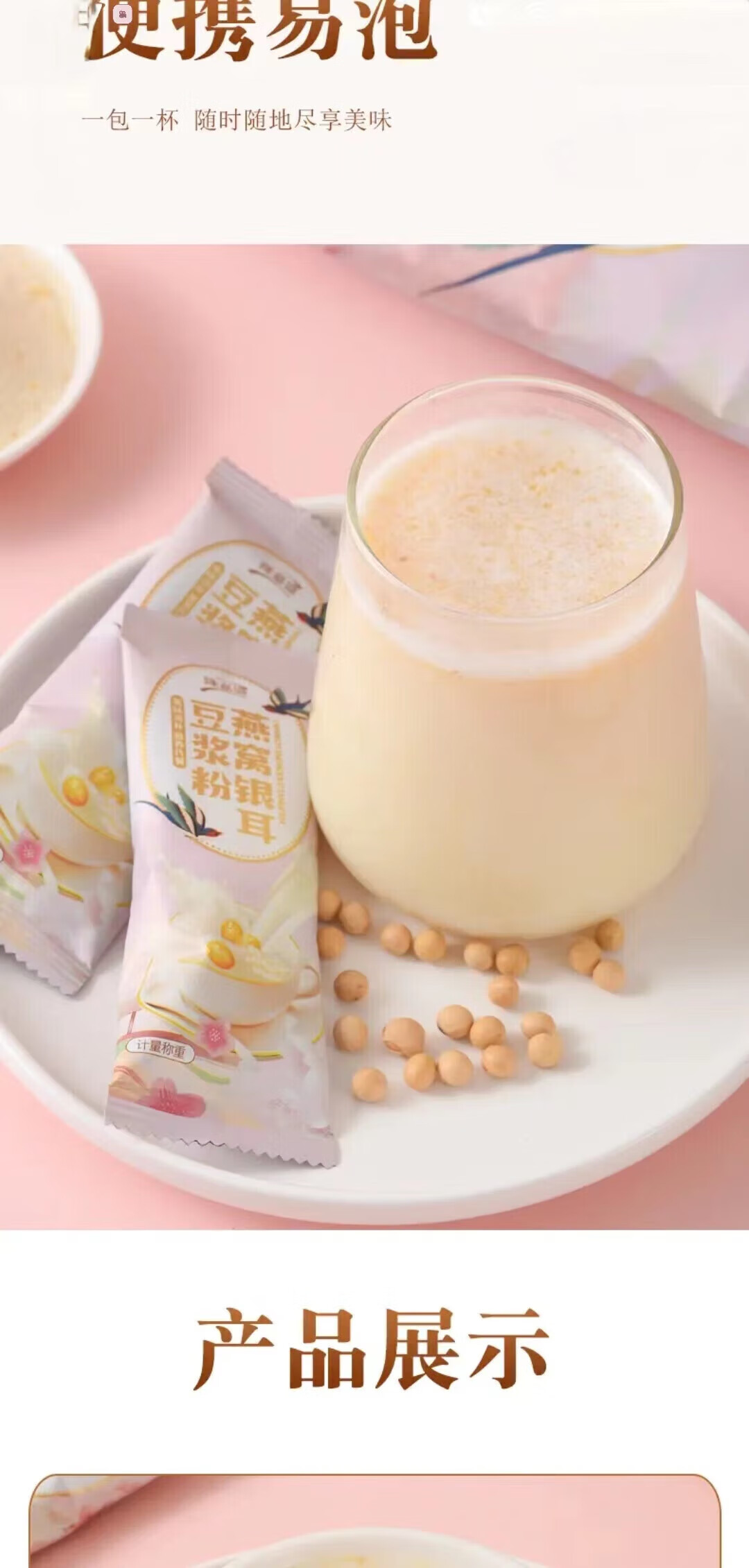 Longjiasheng Bird's Nest Tremella Soy Milk Powder Breakfast Soy Milk Powder Individually packaged ready-to-eat convenient breakfast 8 bags + cups