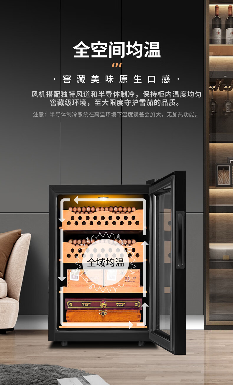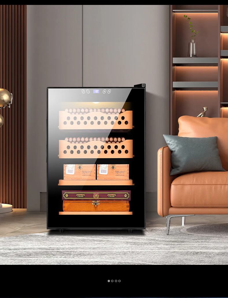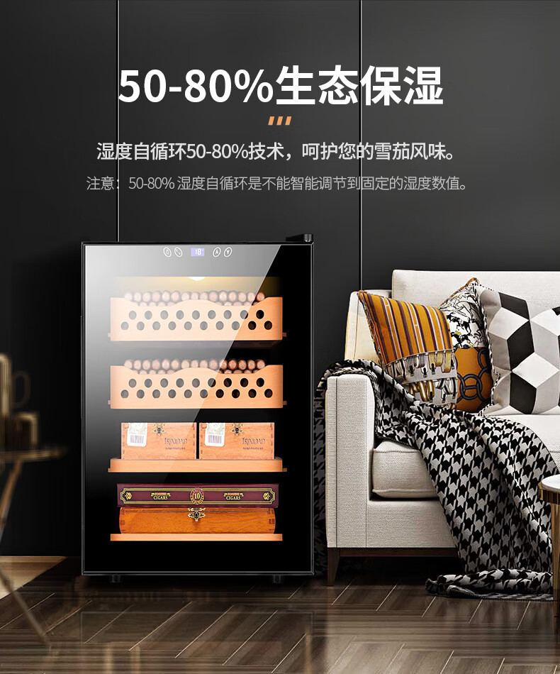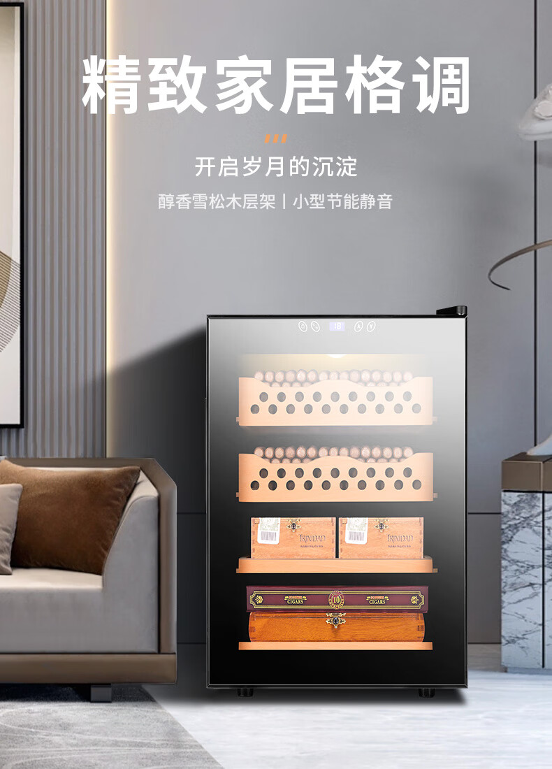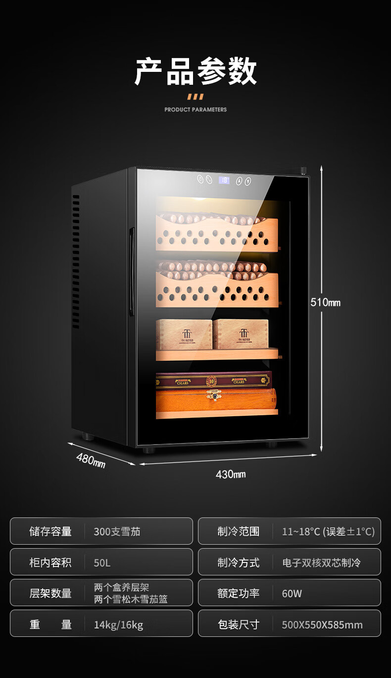 CIGARLOONG cigar cabinet temperature controlled moisturizing activated carbon ammonia removal independent dual-core refrigeration beech wood cedar wood shelf alcohol nourishing household small energy-saving silent electronic cigar humidor 50C 50C1 black full cigar style temperature control and humidity control 50L cigar cabinet