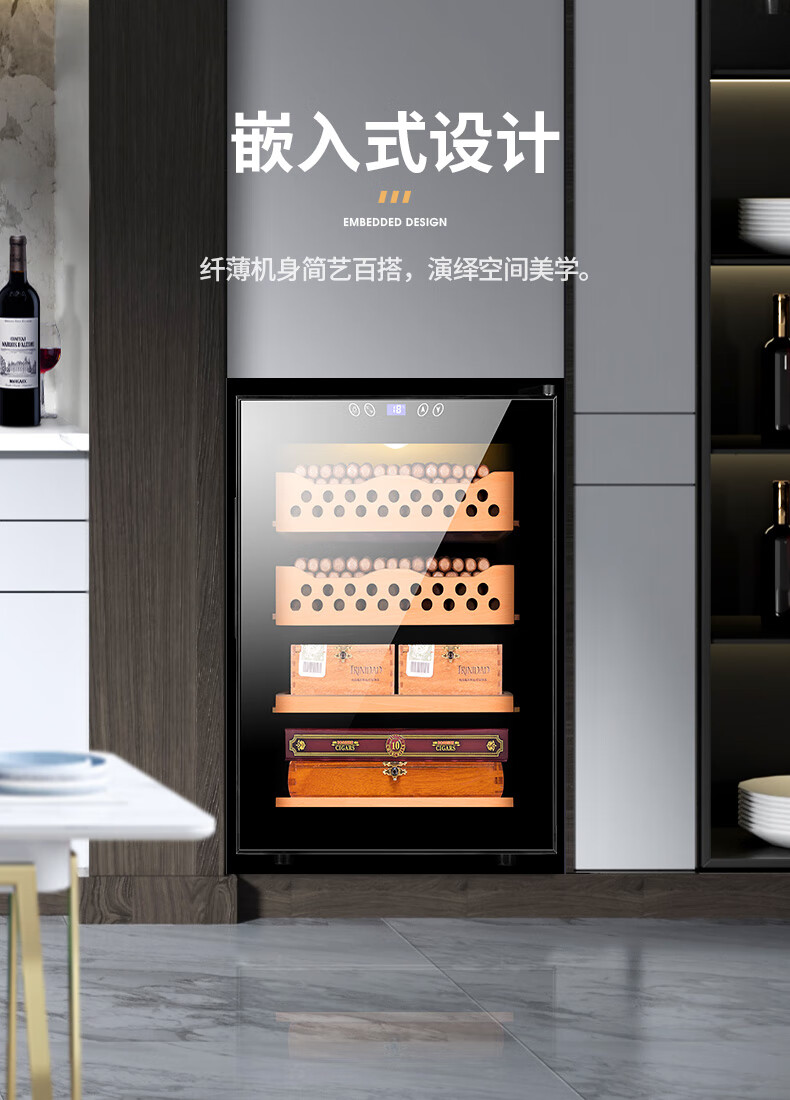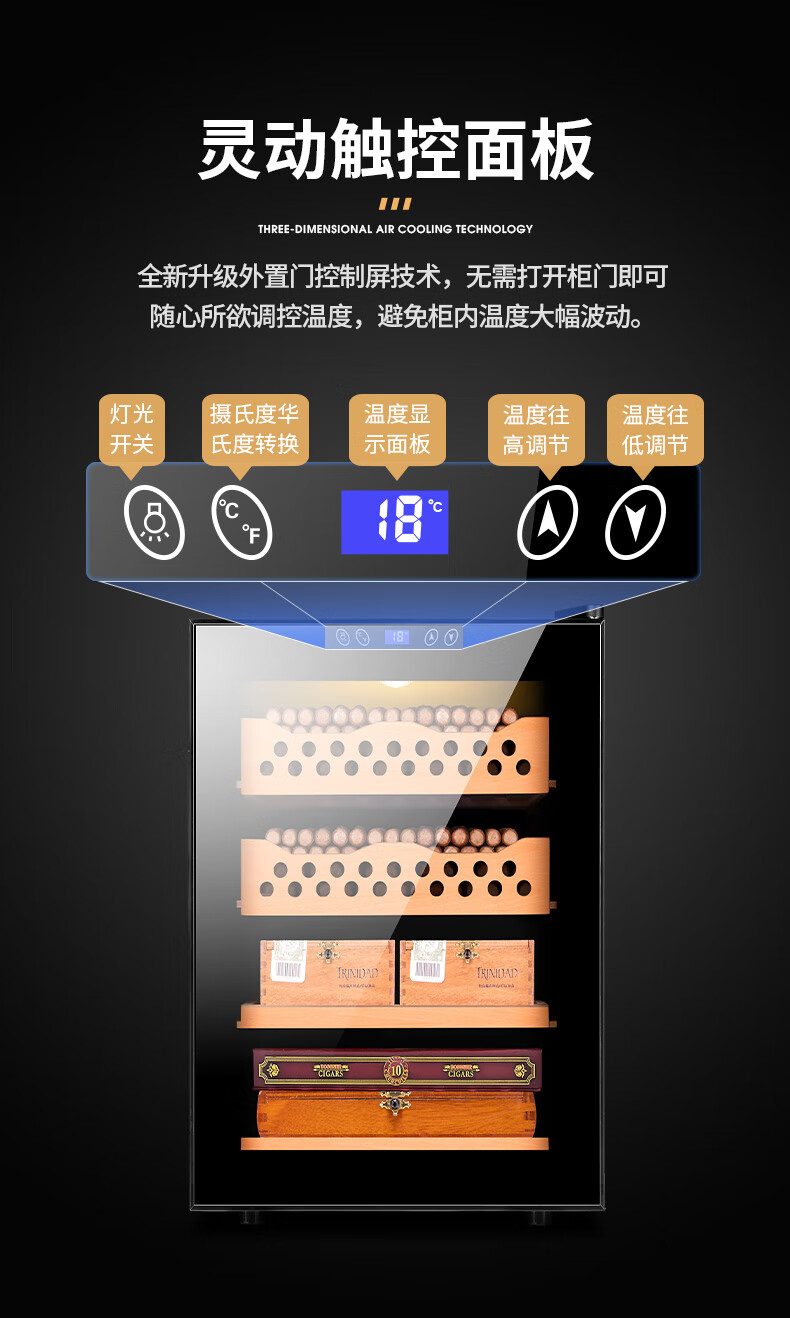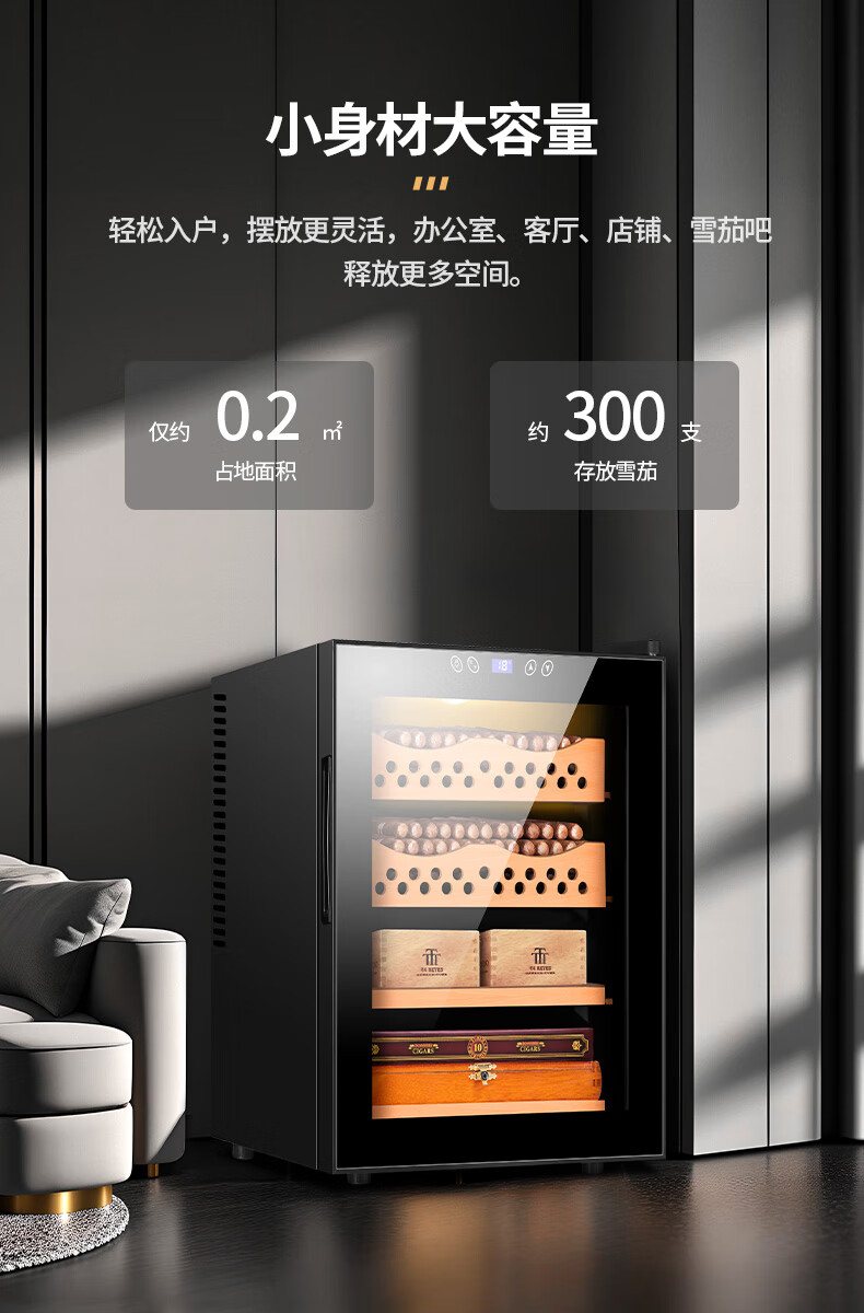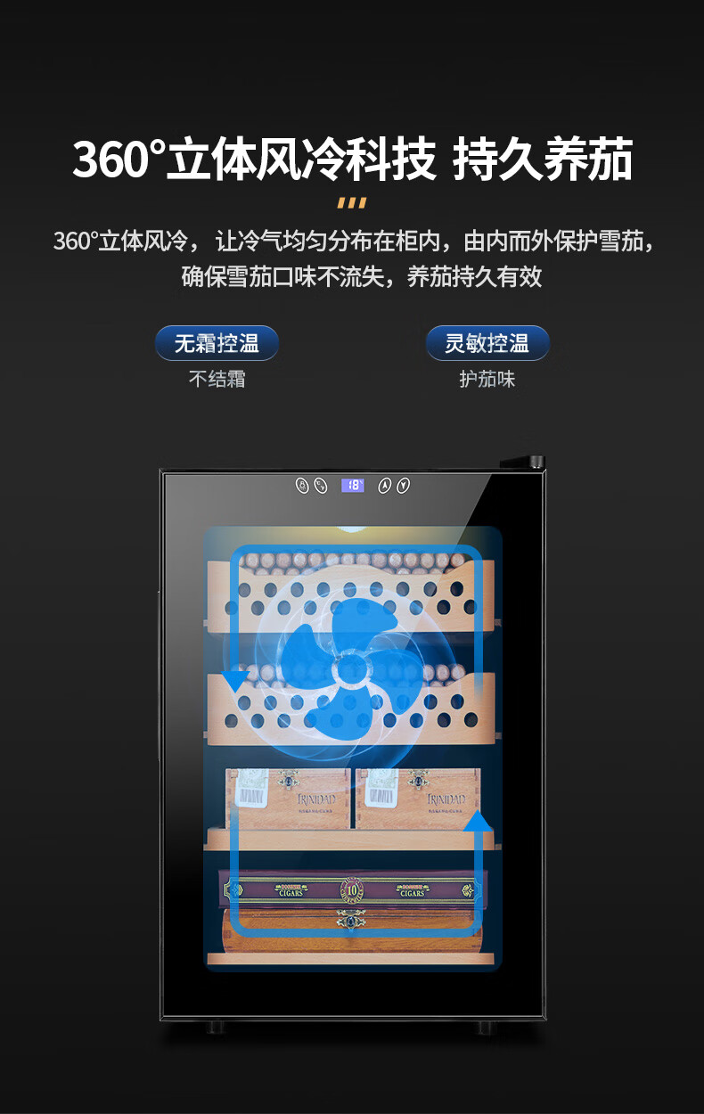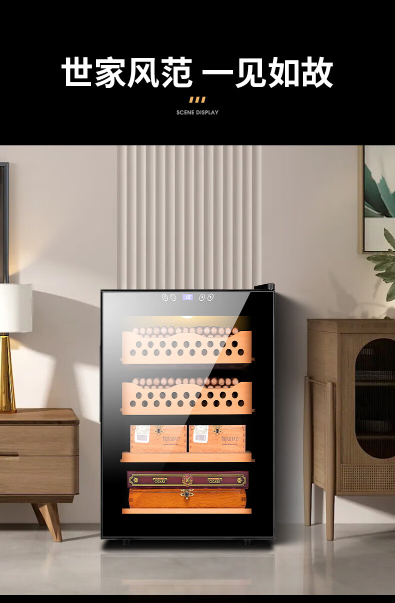 CIGARLOONG cigar cabinet temperature controlled moisturizing activated carbon ammonia removal independent dual-core refrigeration beech wood cedar wood shelf alcohol nourishing household small energy-saving silent electronic cigar humidor 50C 50C1 black full cigar style temperature control and humidity control 50L cigar cabinet