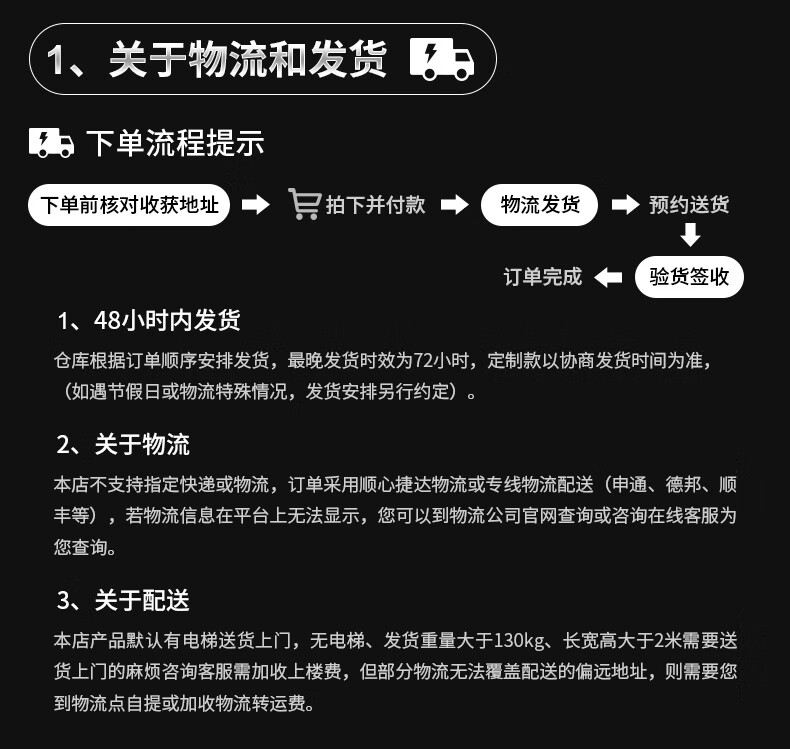 The following items (but not limited) might only could ship with specific logistic lines,