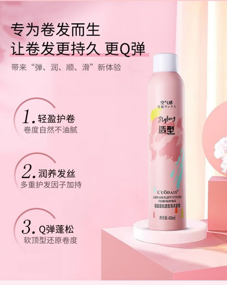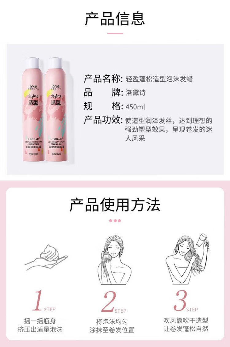 Luodaishi Foam Hair Wax for Curly Hair Moisturizing Natural Fluffy Hair Gel Mousse Wool Curl Bubble Elastin Hair Salon Unisex 2 Bottles Second Bottle Half Price Light and Fluffy