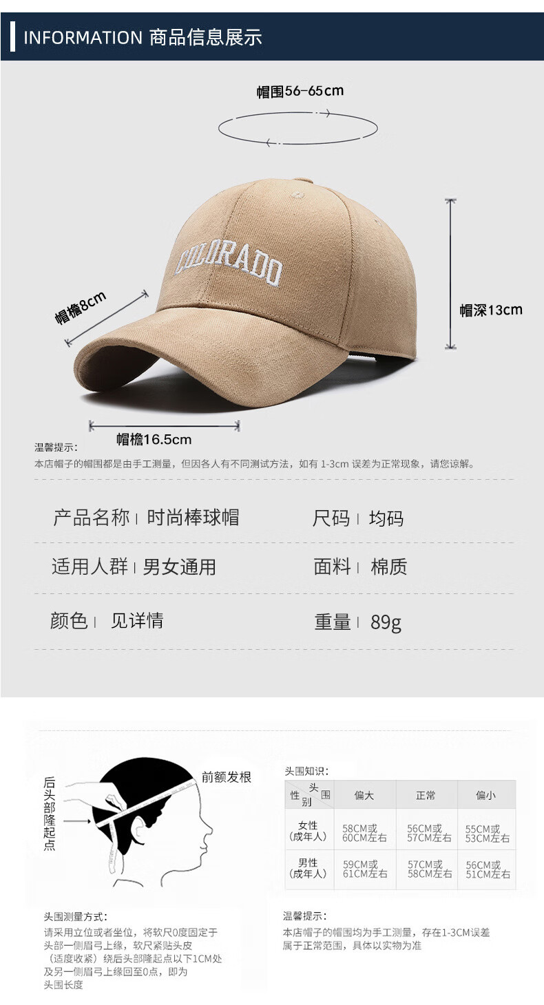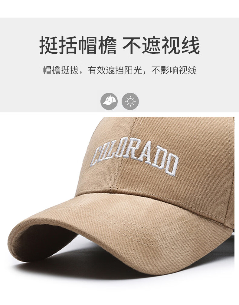 COLO big head deepened and enlarged hard top embroidered letters baseball cap peaked cap outdoor sports sun hat pure black large head circumference one size adjustable
