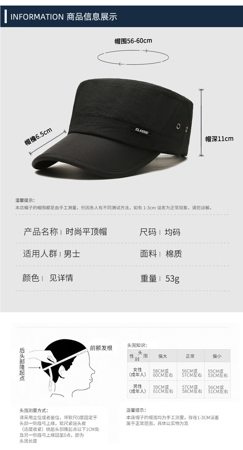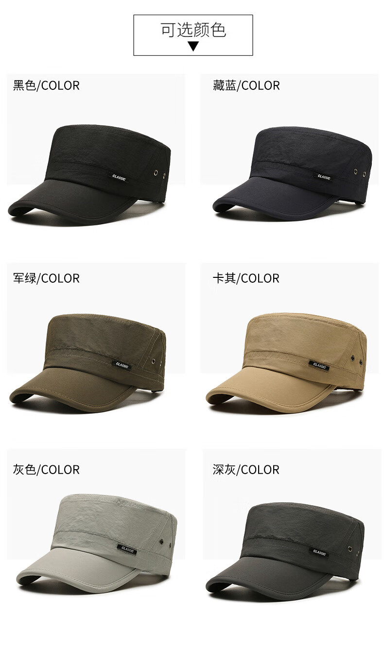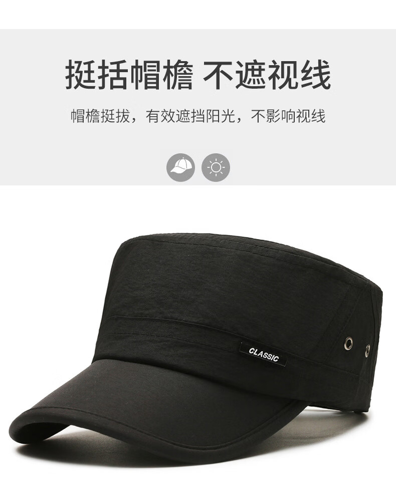 Hat Men's Spring and Autumn Fishing Sun Shade Casual Hat Outdoor Fashion Simple Travel Quick-Drying Flat Top Hat Navy Blue Adjustable