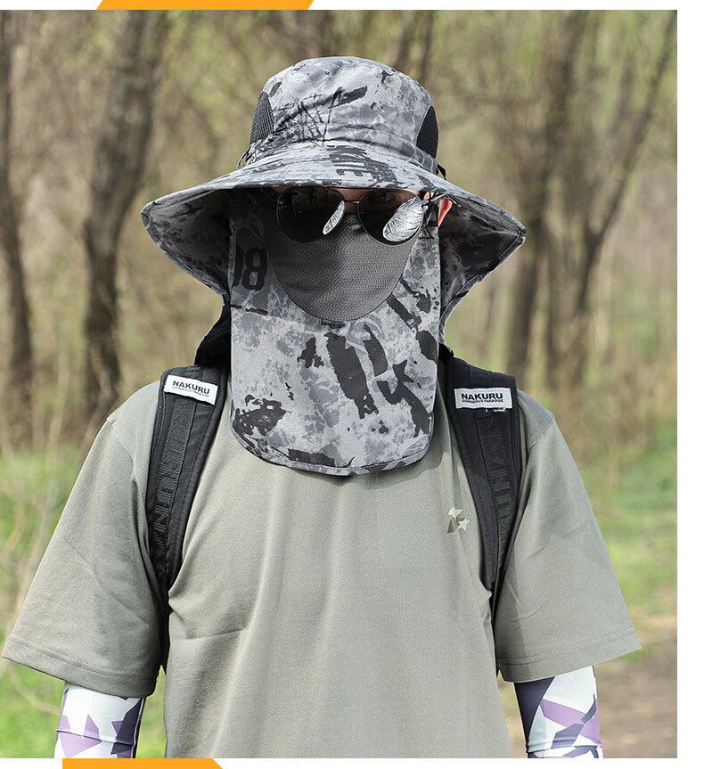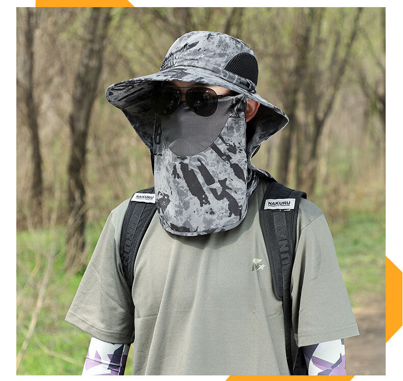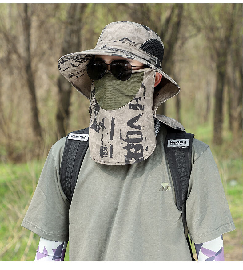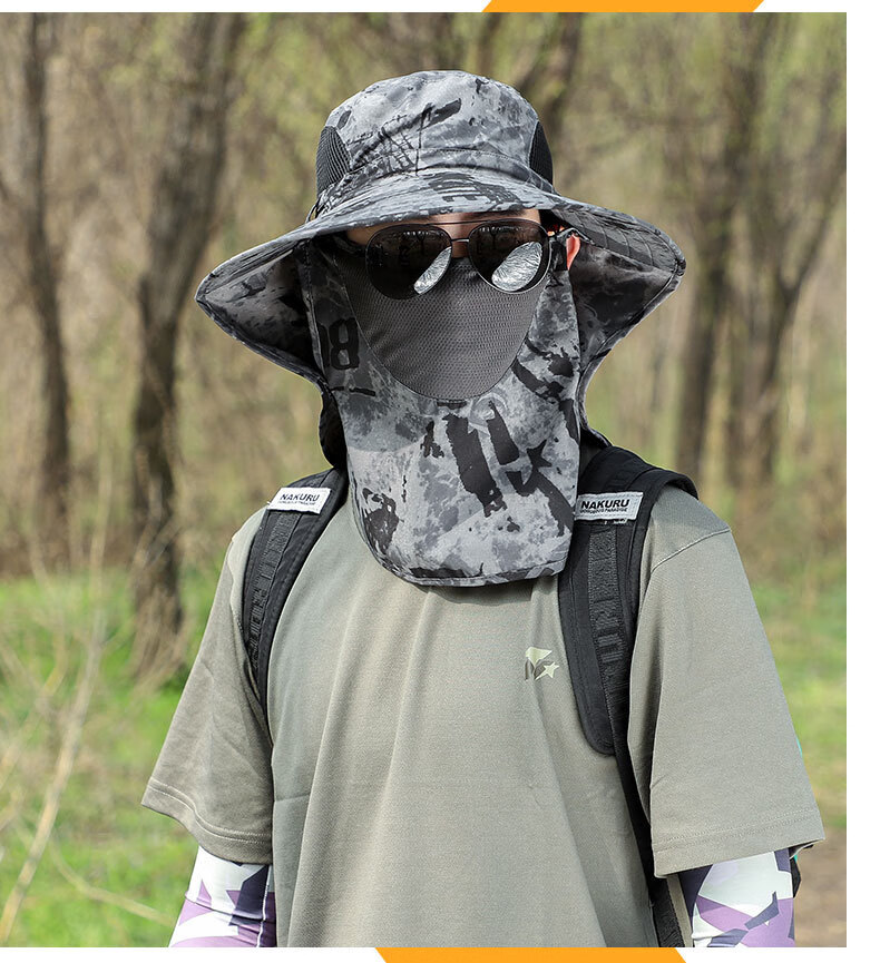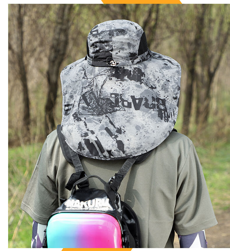 Hat Men's Summer Jungle Personalized Face Covering Mosquito-Repellent Large Brim Hat Outdoor Fishing Breathable Sun Protection Sunshade Hiking Hat Ink Shawl Gray One Size