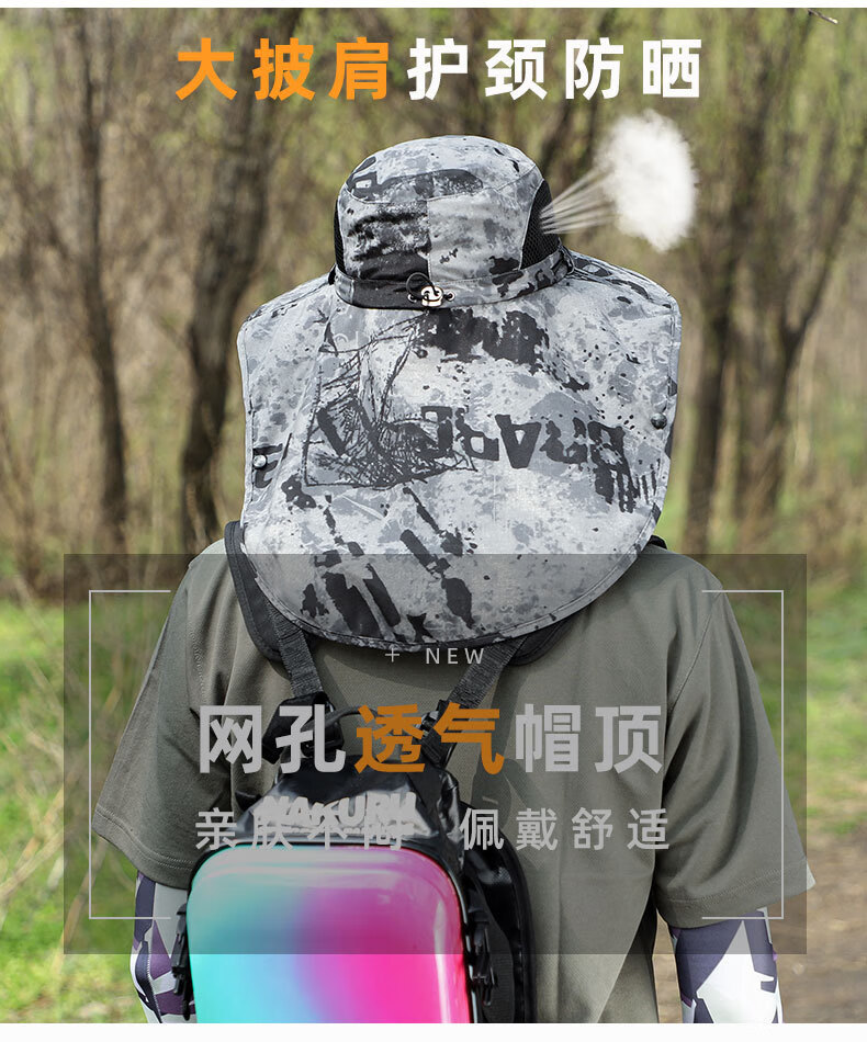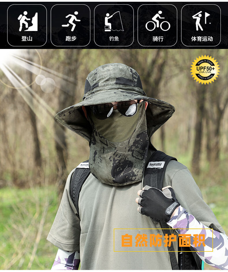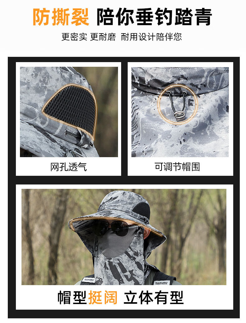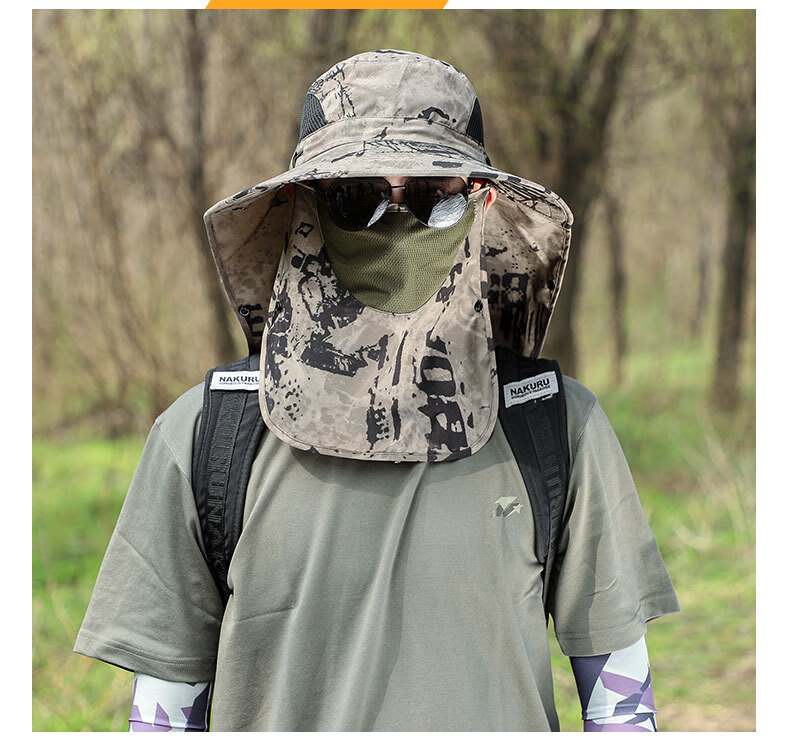 Hat Men's Summer Jungle Personalized Face Covering Mosquito-Repellent Large Brim Hat Outdoor Fishing Breathable Sun Protection Sunshade Hiking Hat Ink Shawl Gray One Size