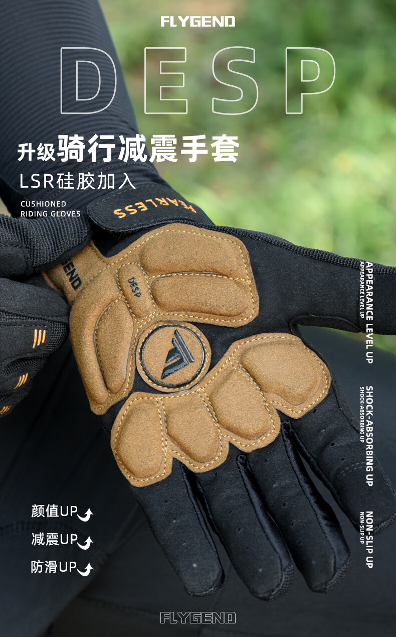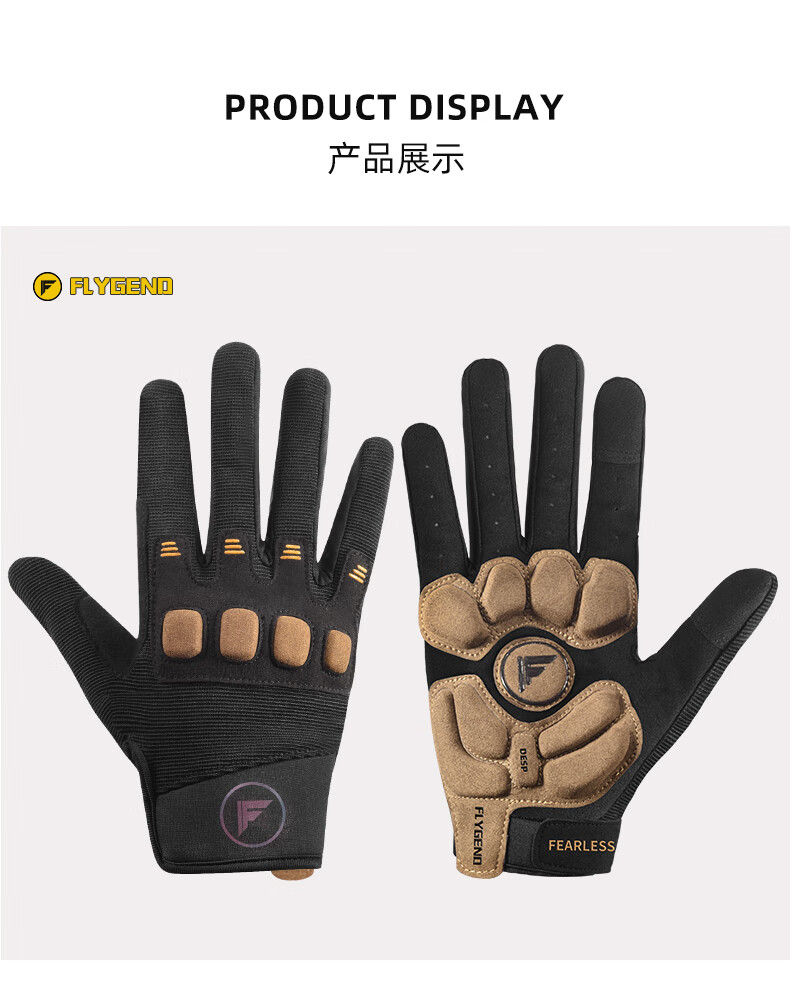 FLYGEND Hong Kong Feijide Spring and Autumn Long Finger Cycling Gloves Warm and Windproof Outdoor Sports Protective Equipment Cowhide Palm L