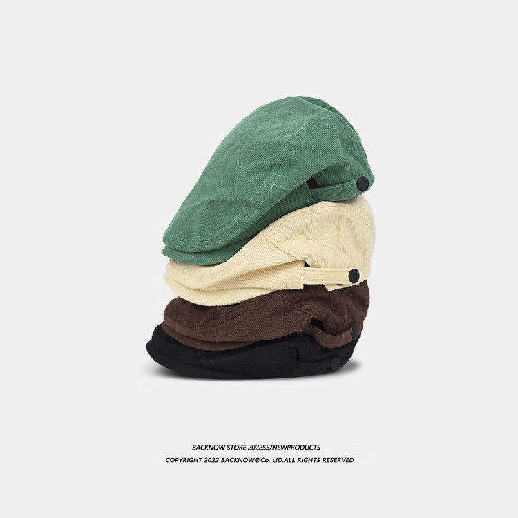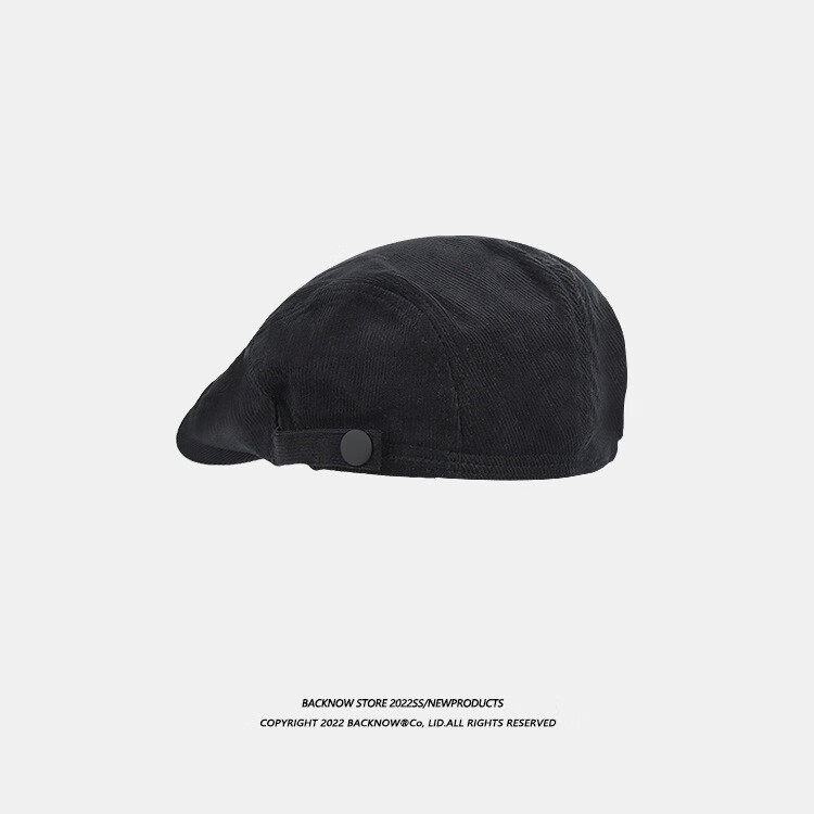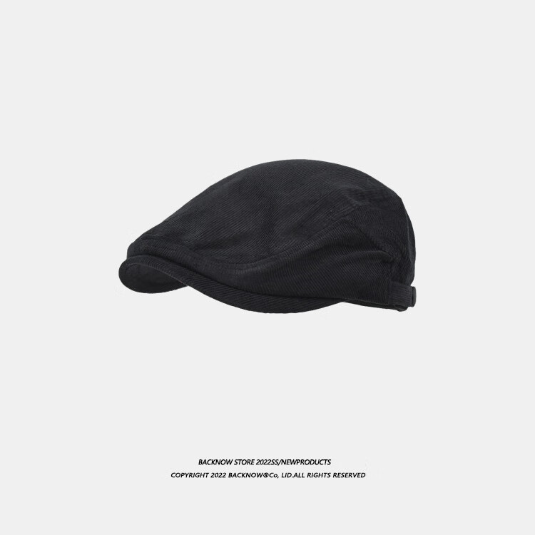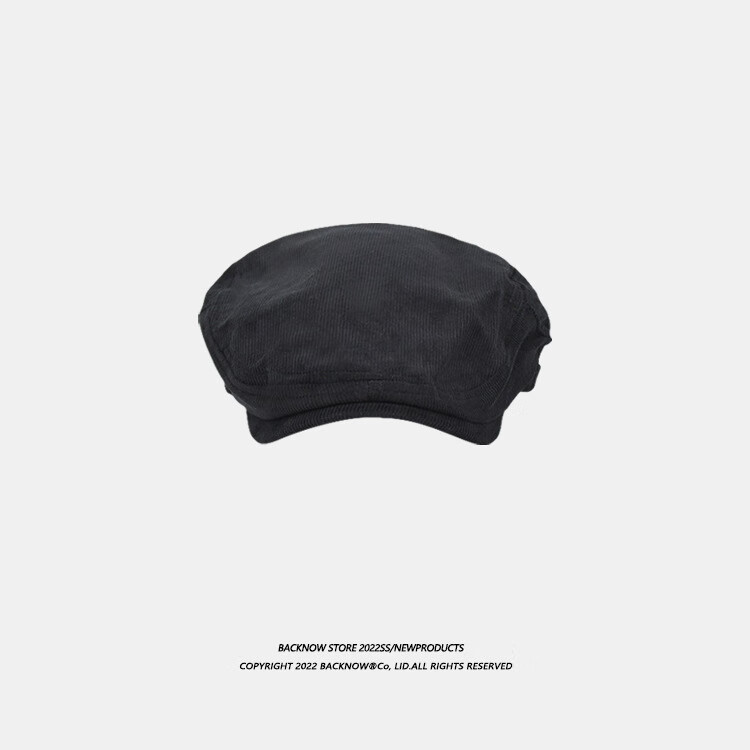 QIPEIER corduroy big head circumference hat men's spring and autumn beret retro progressive hat large size trendy winter literary painter hat black L large head circumference (60-64cm)