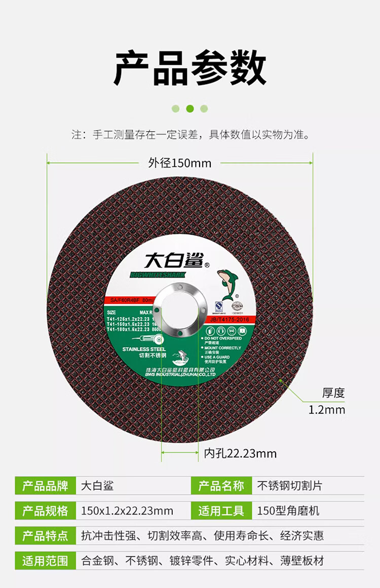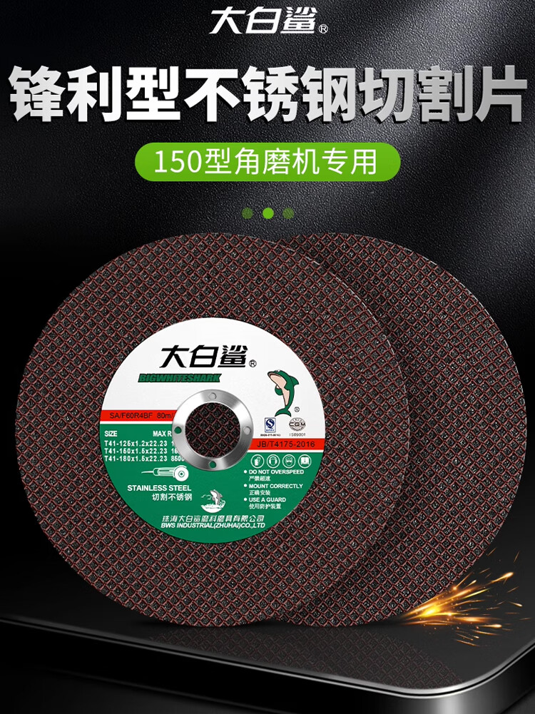 Great White Shark cutting disc 150 grinding wheel angle grinding disc cutting metal resin grinding disc stainless steel ultra-thin grinding wheel 150x1.5x22.23 black disc double mesh 25 pieces