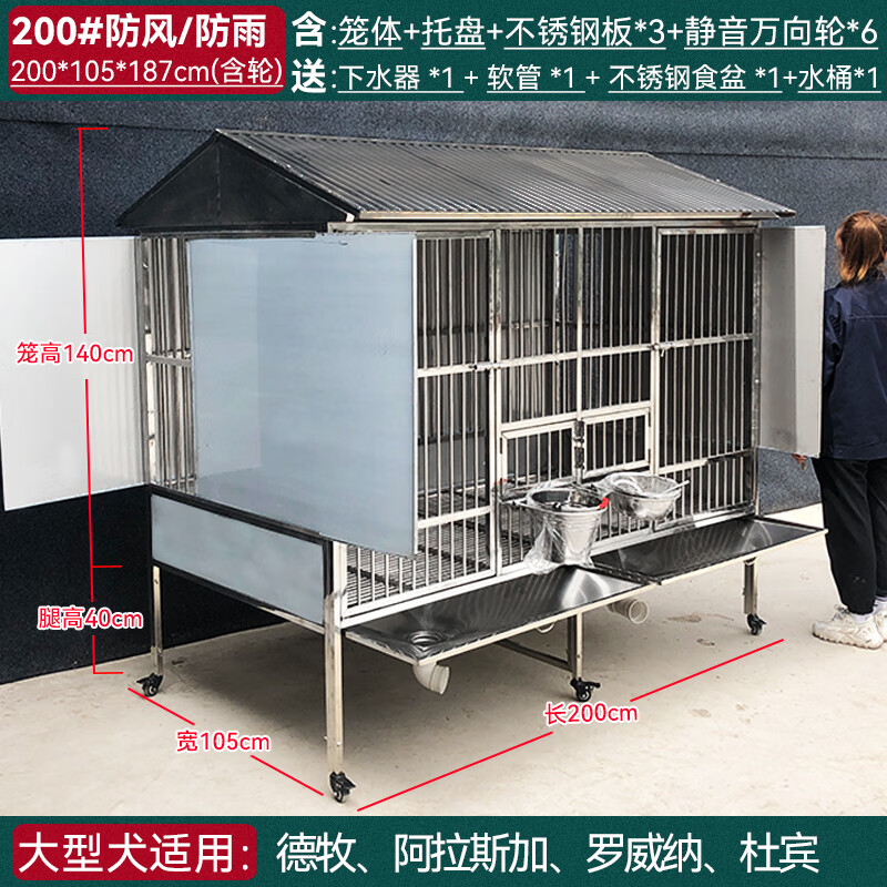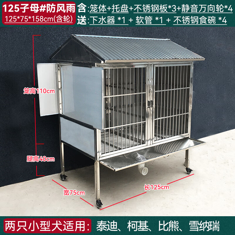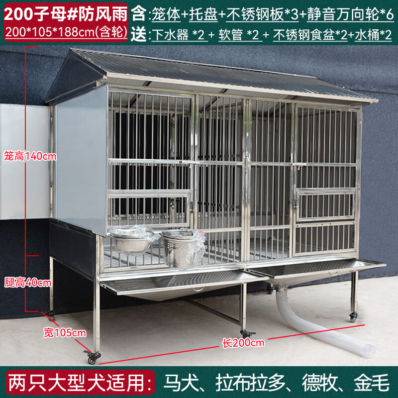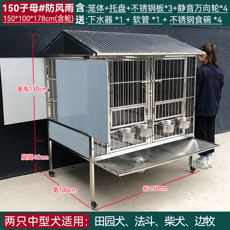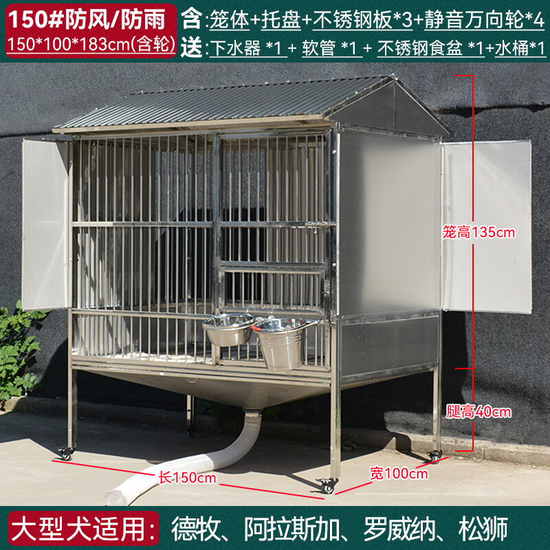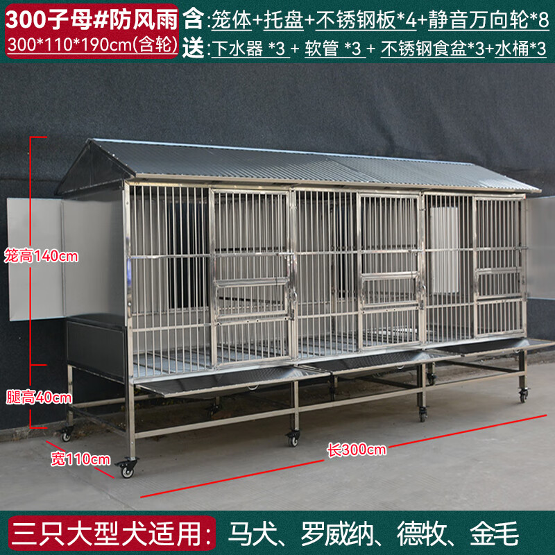 HKML Outdoor Stainless Steel Dog Cage Large Dog Outdoor Rainproof Medium Dog Flush Funnel Toilet Female Dog Cage Three Sided Baffles 110 Styles 110*75*156cm Boutique 202 Thickened Round Tube Style - Diameter 9.5mm Quick delivery within 1 day