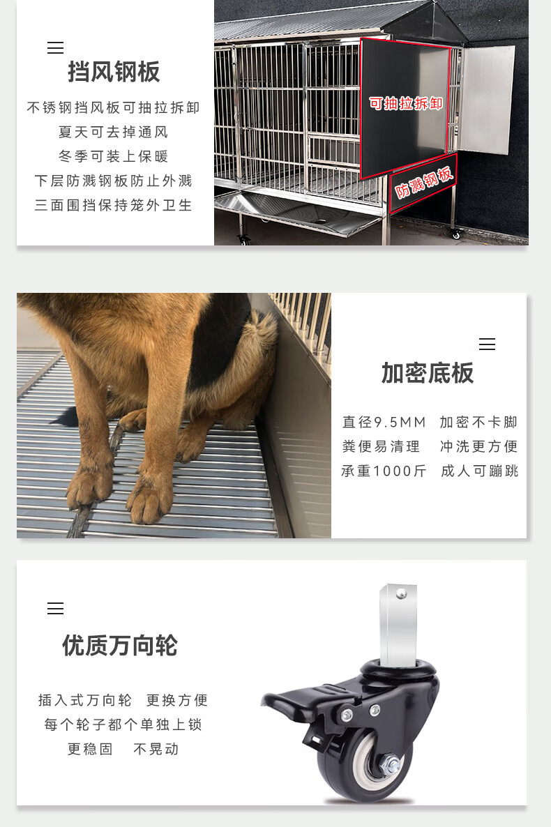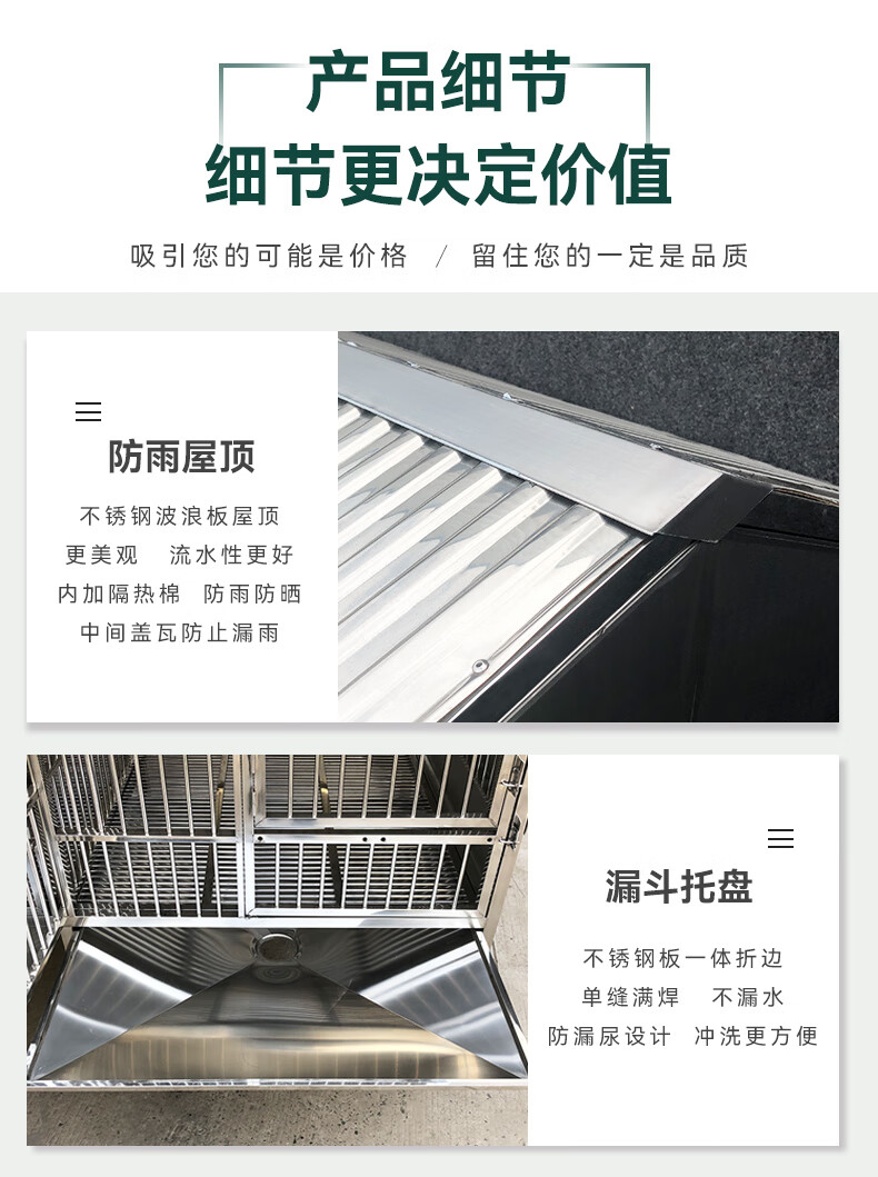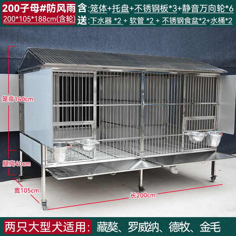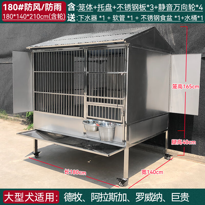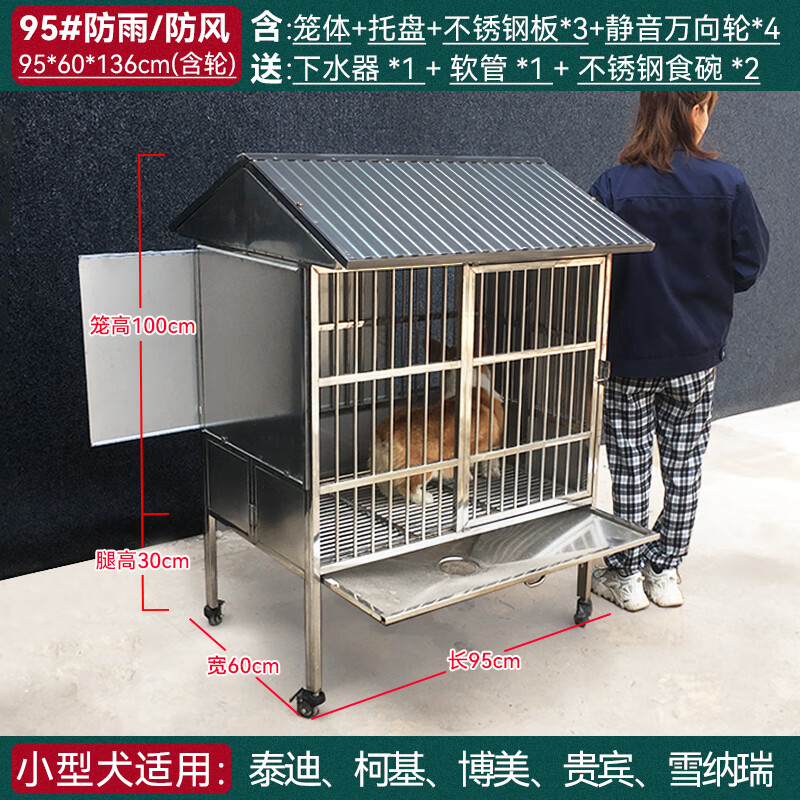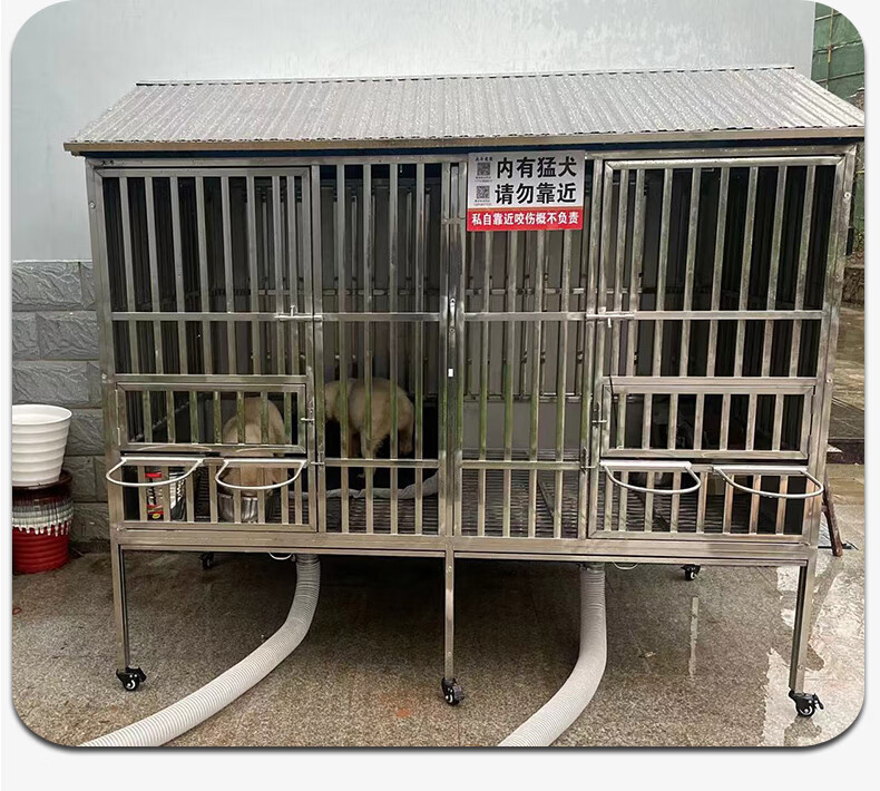 HKML Outdoor Stainless Steel Dog Cage Large Dog Outdoor Rainproof Medium Dog Flush Funnel Toilet Female Dog Cage Three Sided Baffles 110 Styles 110*75*156cm Boutique 202 Thickened Round Tube Style - Diameter 9.5mm Quick delivery within 1 day