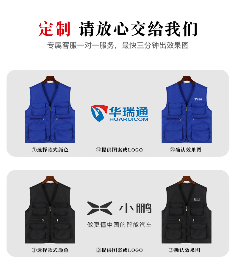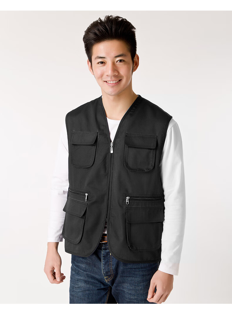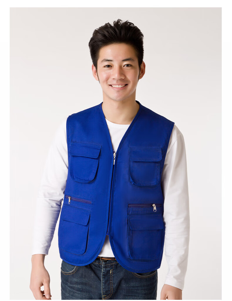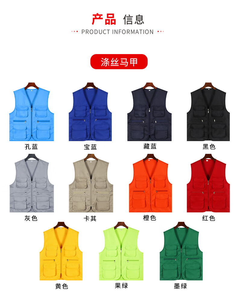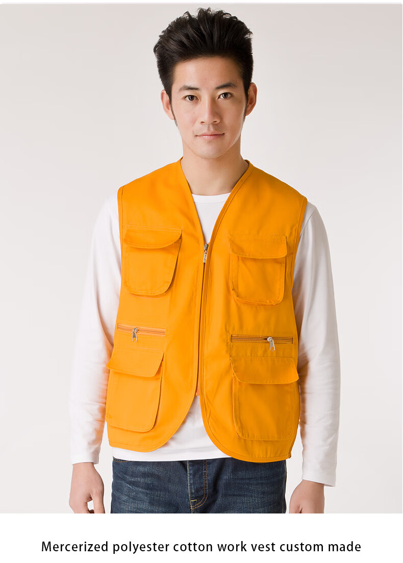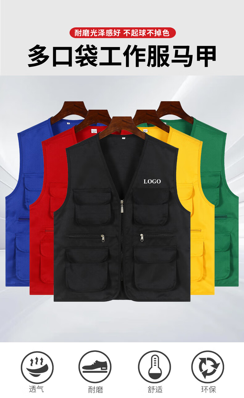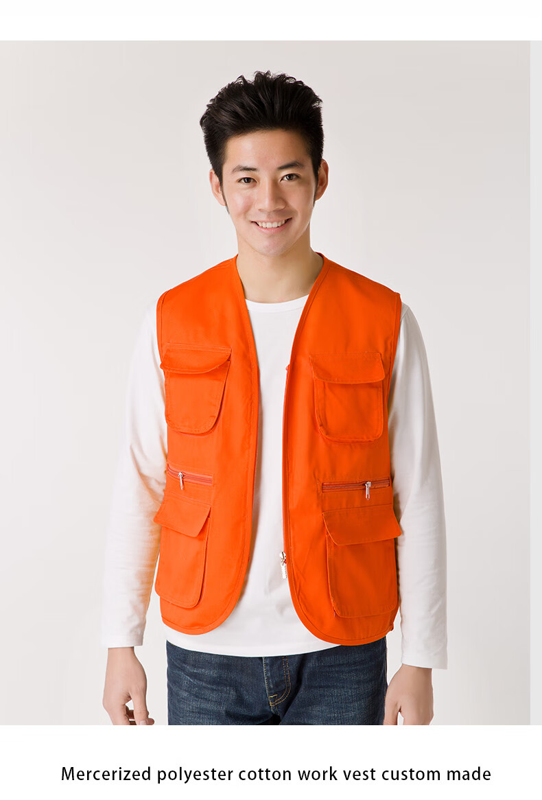 Success.long vest work clothes custom printed logo billiard hall multi-pocket volunteer advertising photography media promotion vest red XL