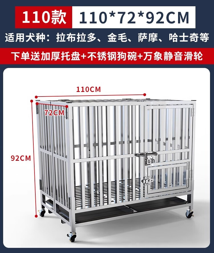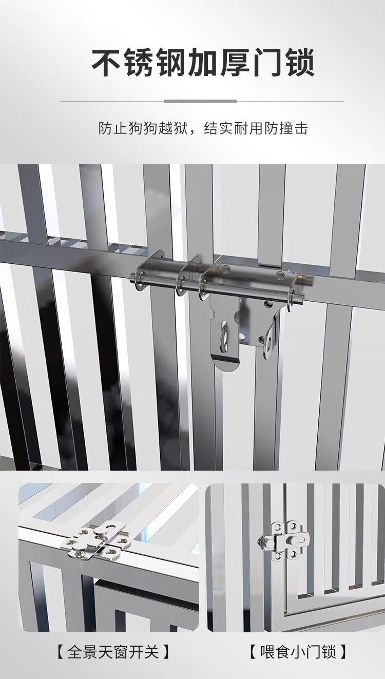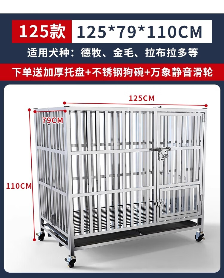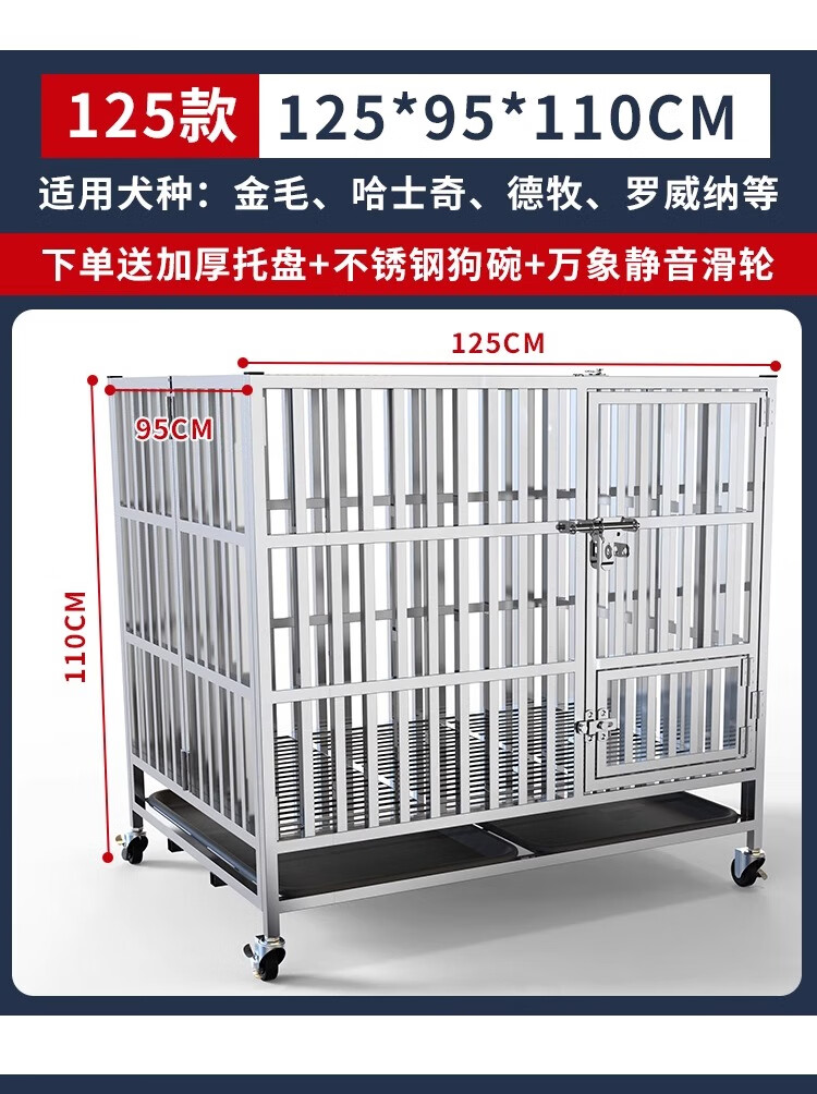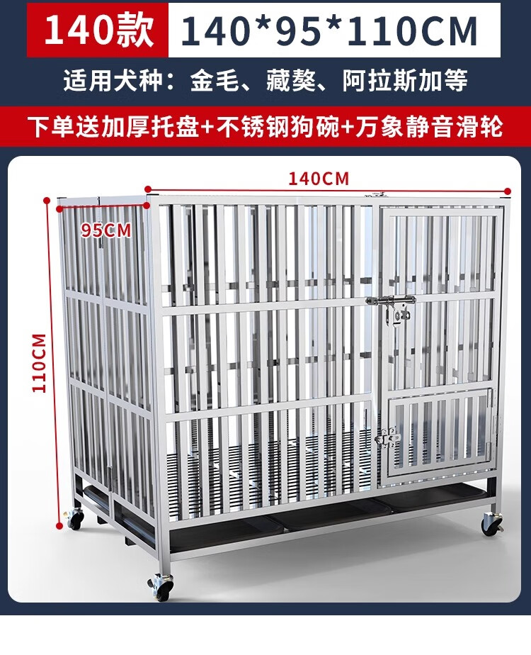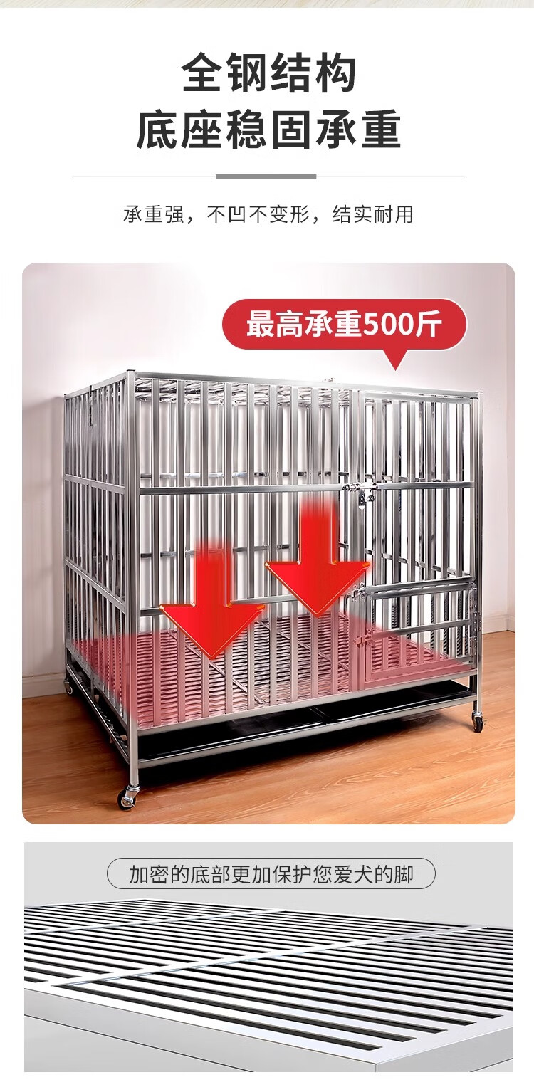 HKML304 stainless steel dog cage, medium and large dog cage, indoor folding golden retriever Labrador multi-sided dog house with toilet, 149*95*120cm, suitable for Rottweiler, Alaska, etc. 304 thickened stainless steel cage + stainless steel dog bowl + high-quality tray + high-quality mat