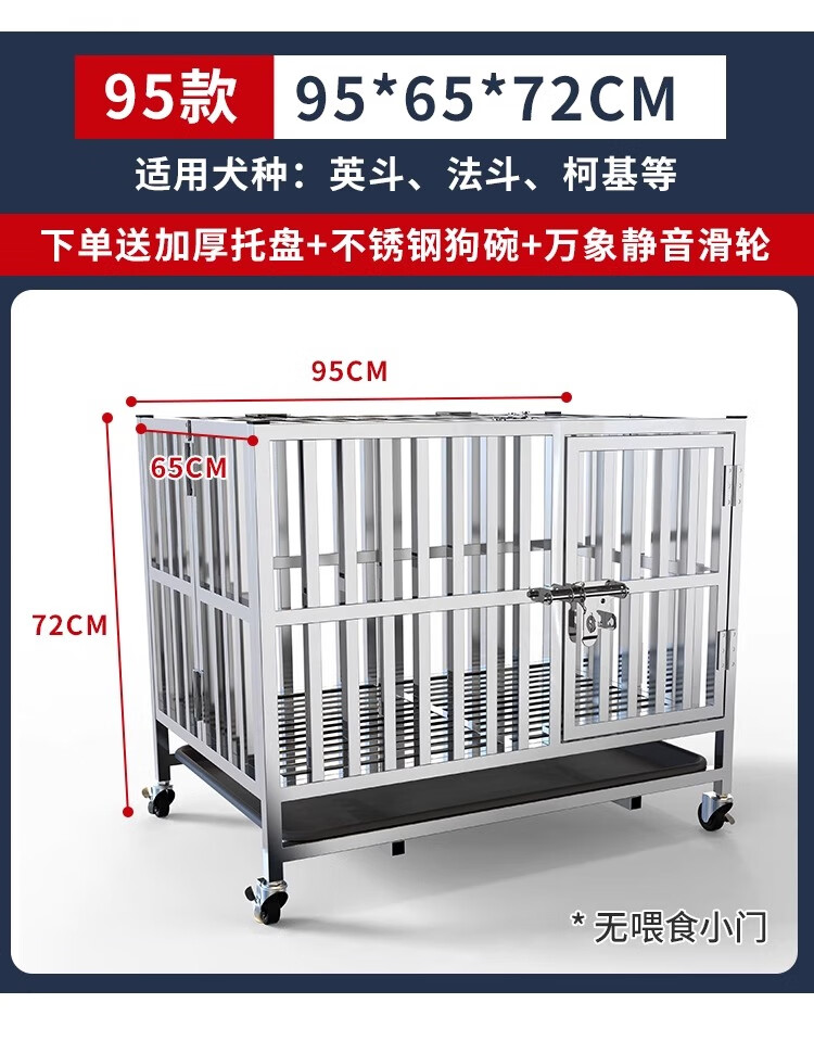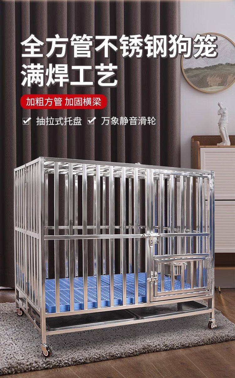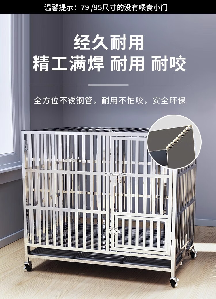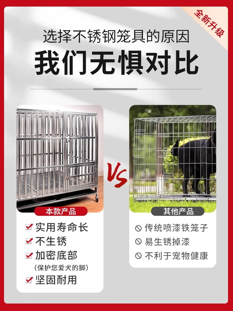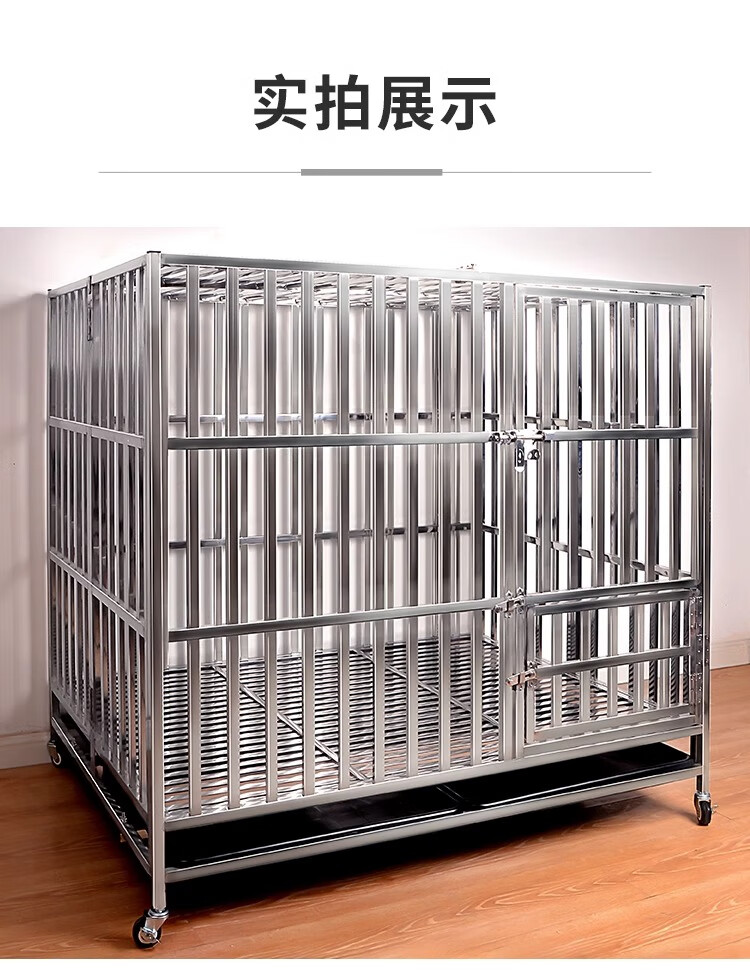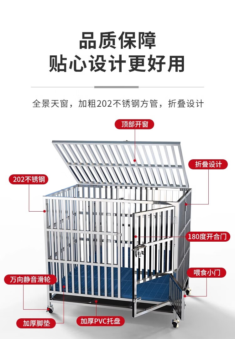 HKML304 stainless steel dog cage, medium and large dog cage, indoor folding golden retriever Labrador multi-sided dog house with toilet, 149*95*120cm, suitable for Rottweiler, Alaska, etc. 304 thickened stainless steel cage + stainless steel dog bowl + high-quality tray + high-quality mat
