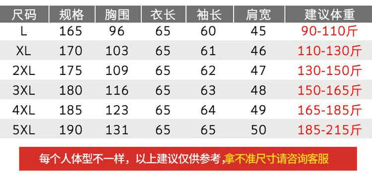 China (cm) 165 / 88-90 170 / 96-98 175 / 108-110 180 / 118-122 185 / 126-130