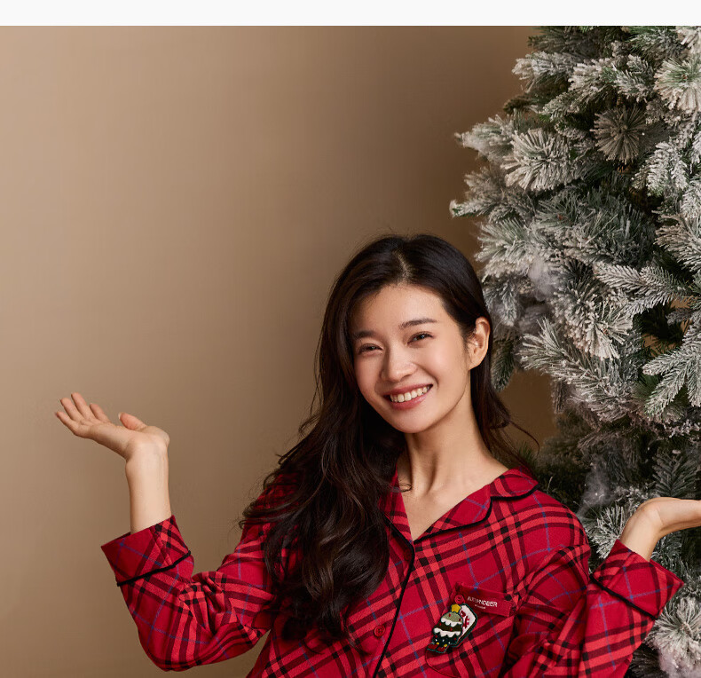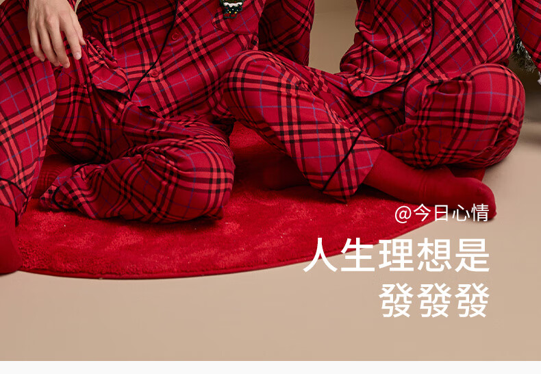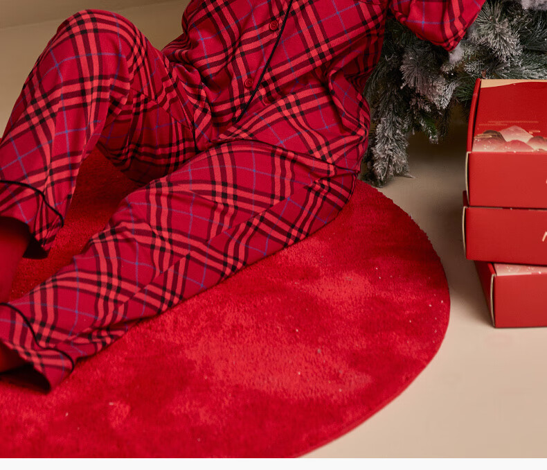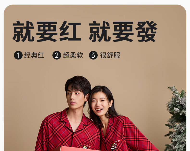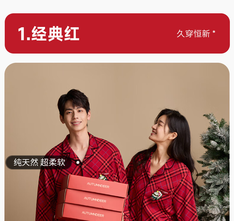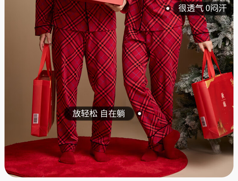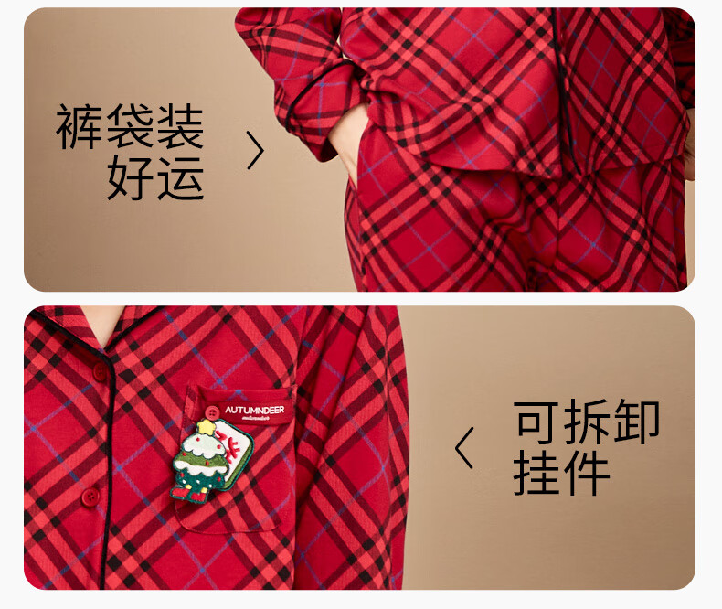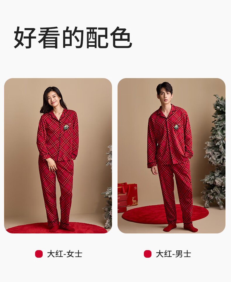 Autumn Deer Couple Pajamas Women Autumn Red Modal Cotton Plaid Cardigan Long Sleeve Men Wedding Home Clothes Suit New Year Gift Big Red Women (01) M
