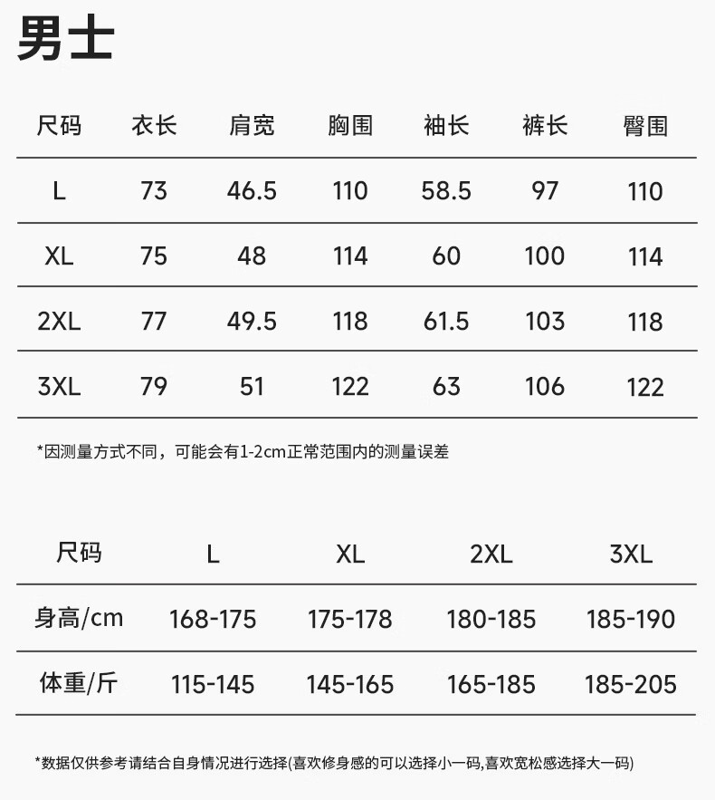 China (cm) 165 / 88-90 170 / 96-98 175 / 108-110 180 / 118-122 185 / 126-130