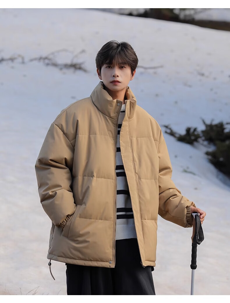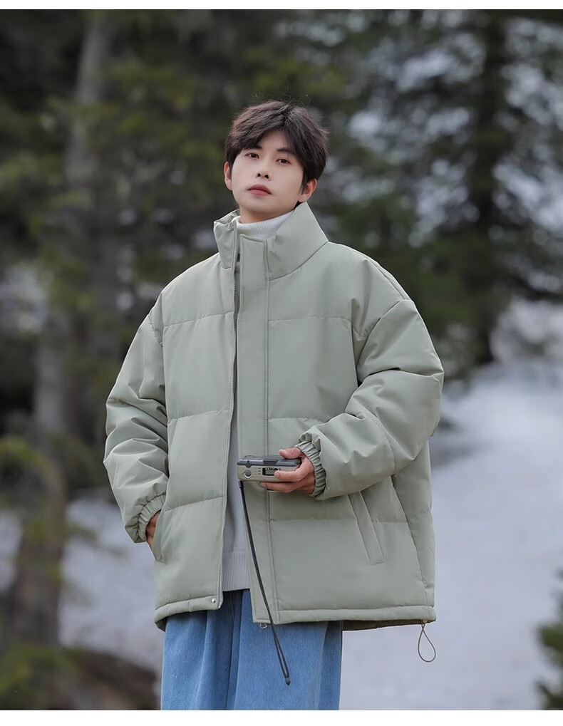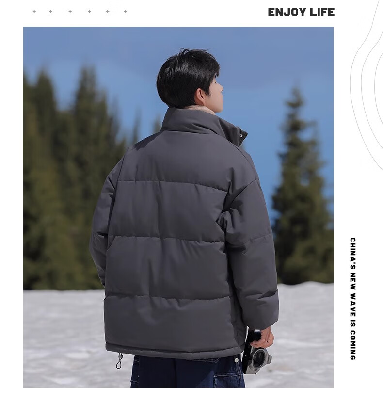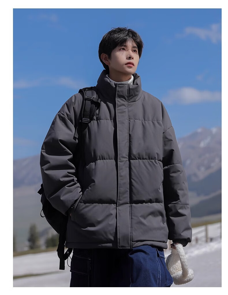 Geslandi Cotton Jacket Men's Jacket 2025 Winter New Trendy Loose Down Cotton Jacket Men's Thickened Casual Stand Collar Cotton Jacket Black L 125Jin Jin is equal to 0.5kg -140Jin Jin is equal to 0.5kg
