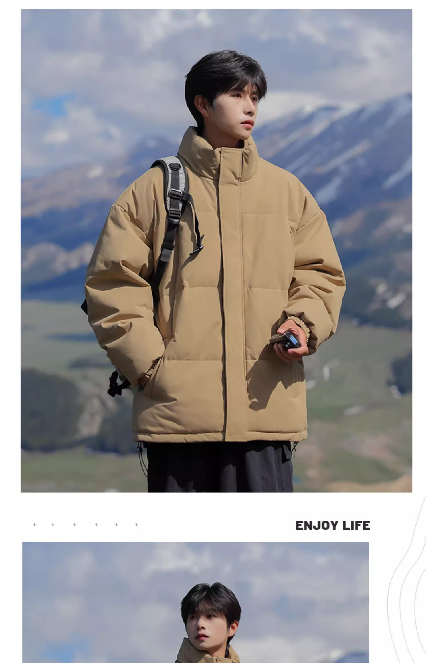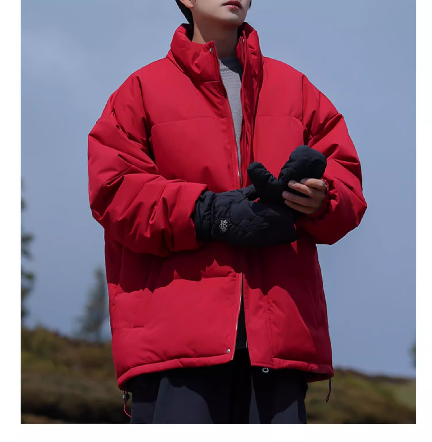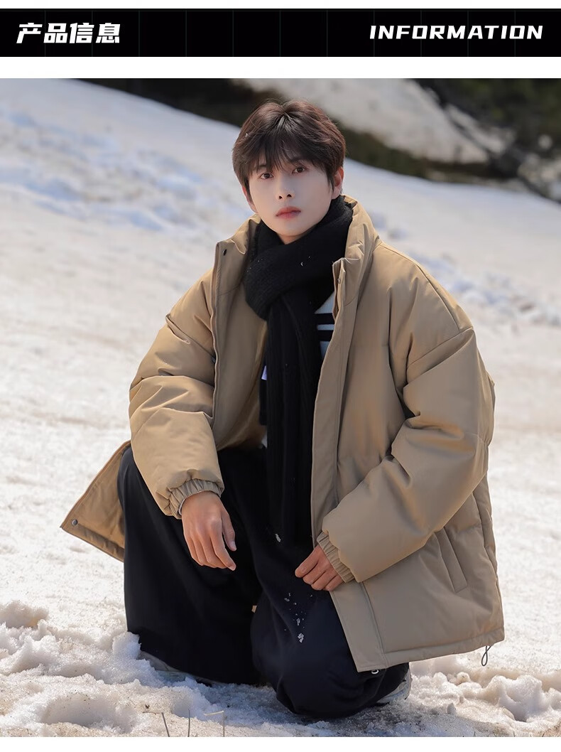 Geslandi Cotton Jacket Men's Jacket 2025 Winter New Trendy Loose Down Cotton Jacket Men's Thickened Casual Stand Collar Cotton Jacket Black L 125Jin Jin is equal to 0.5kg -140Jin Jin is equal to 0.5kg