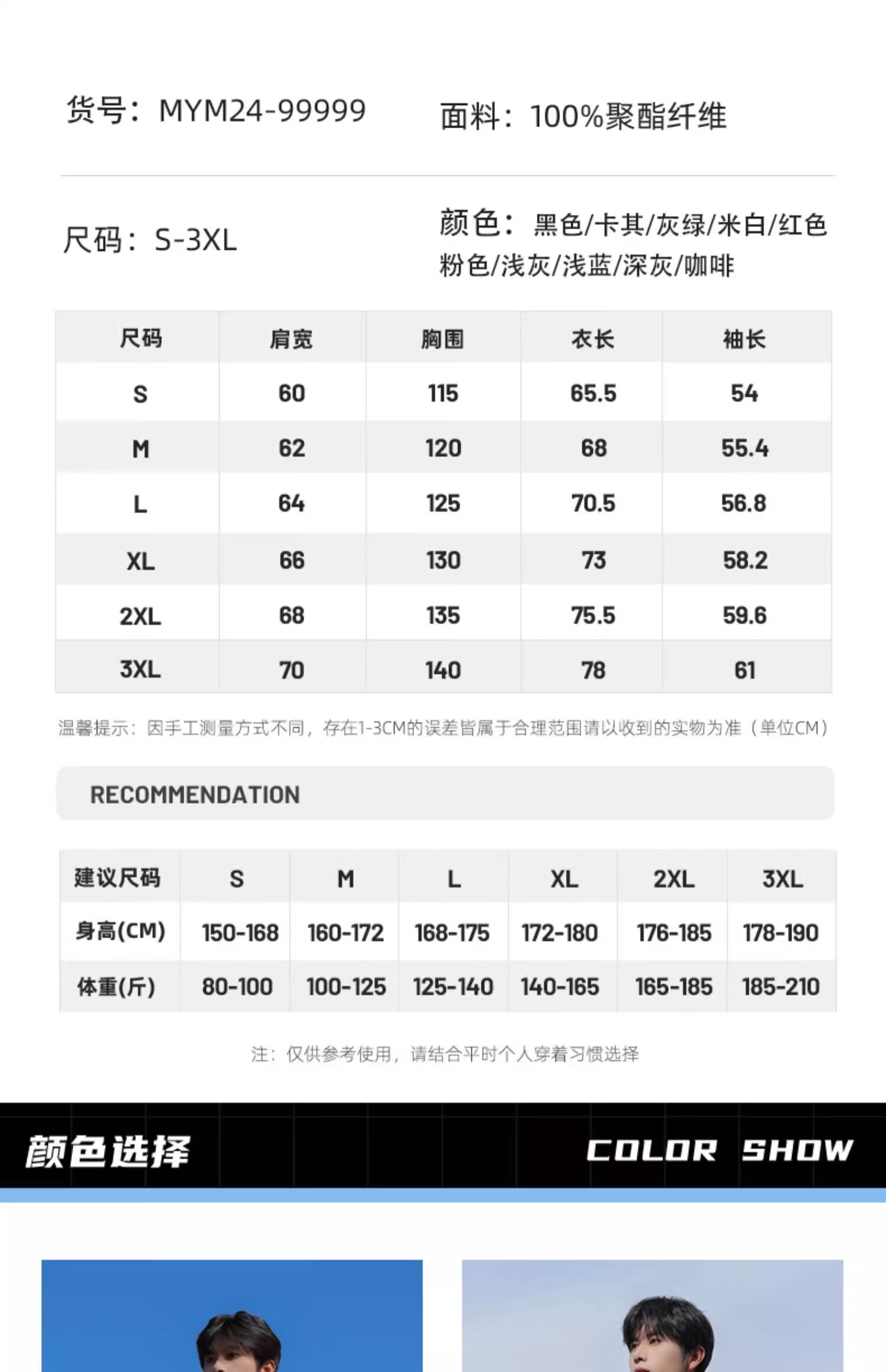 China (cm) 160-165/84-86 165-170 / 88-90 167-172 / 92-96 168-173 / 98-102 170-176 / 106-110