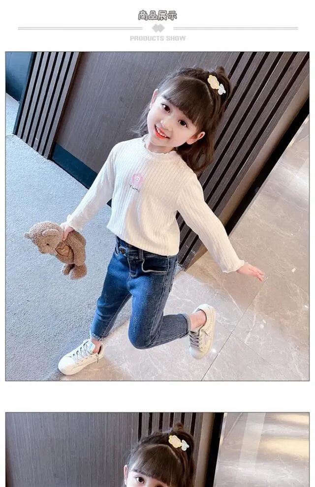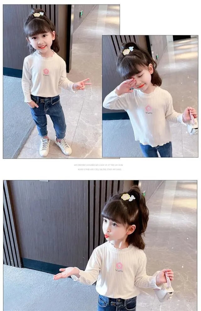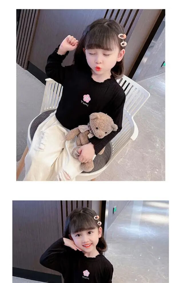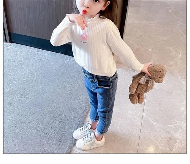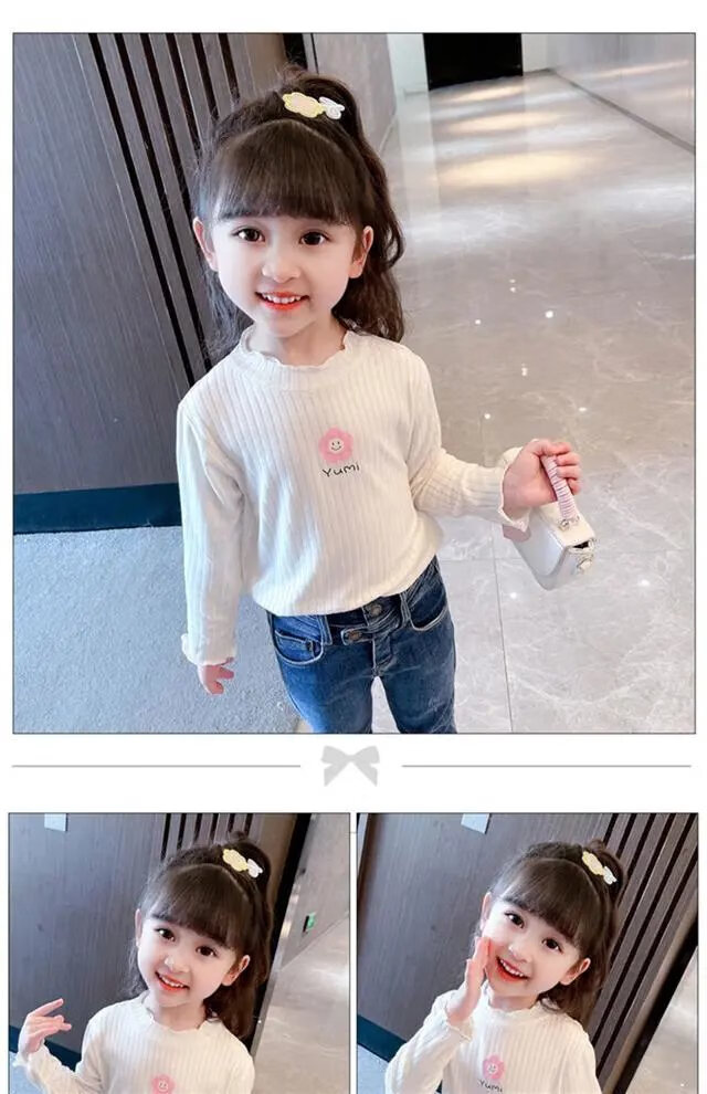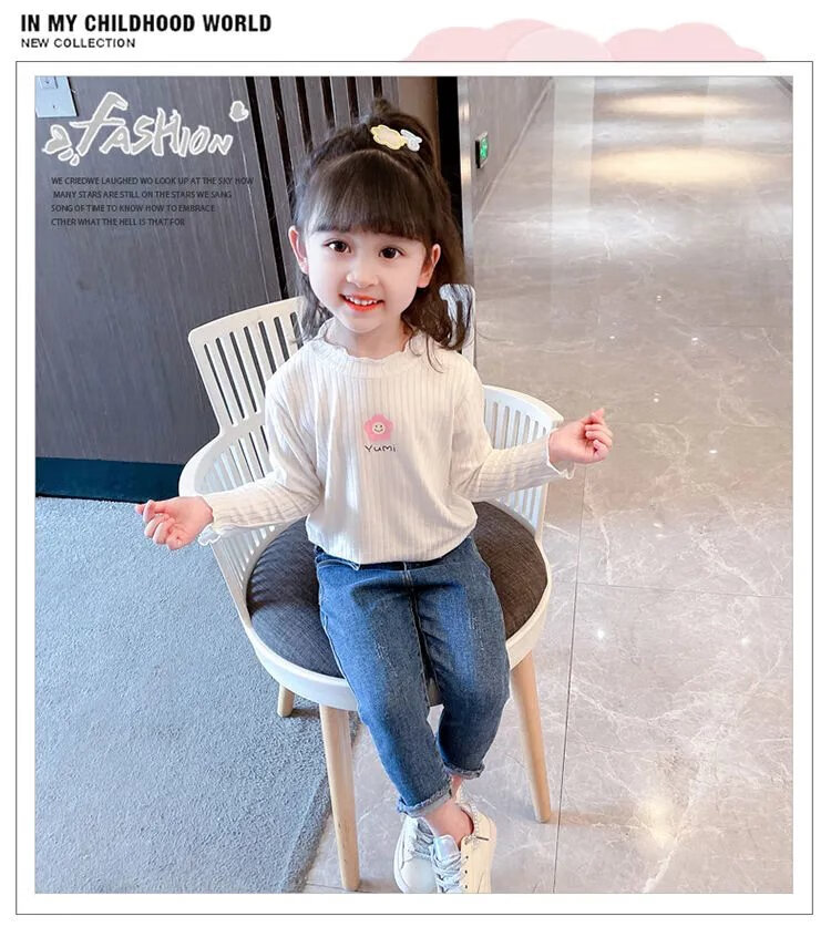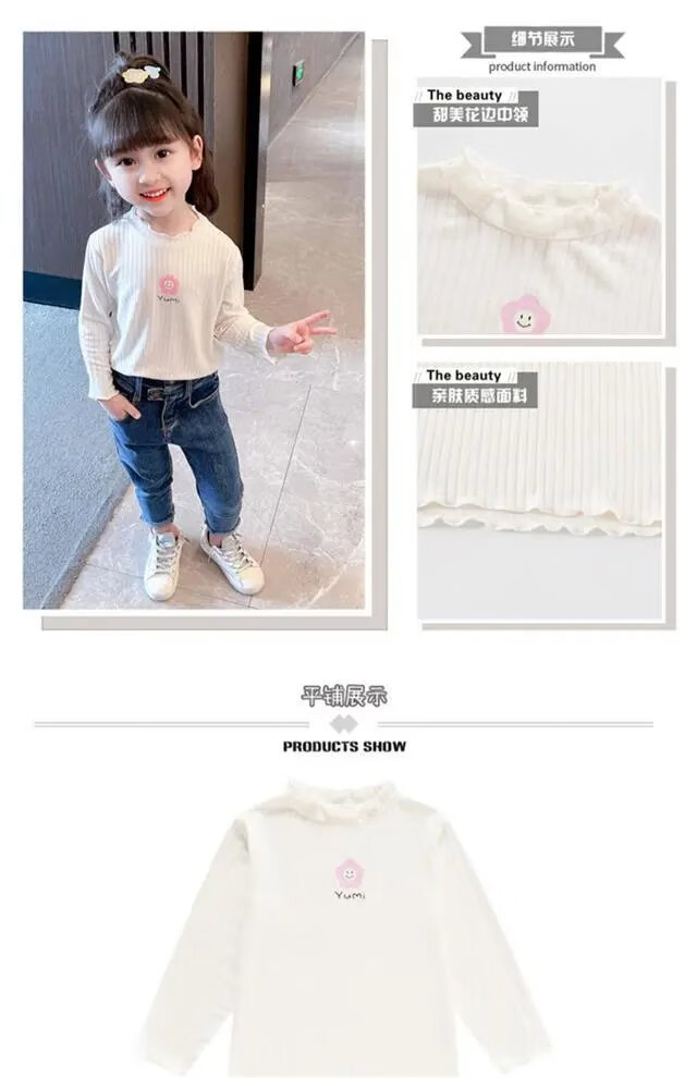 Disney (DISNEY) girls long-sleeved tops autumn and winter new children's round neck pullover bottoming shirt baby pure cotton half turtleneck inner autumn coat white spring and autumn wear around 18 degrees 80