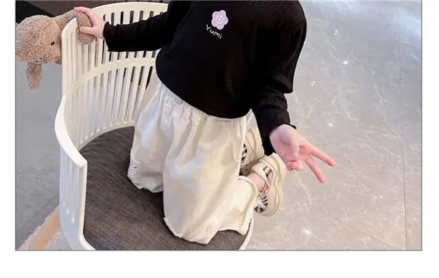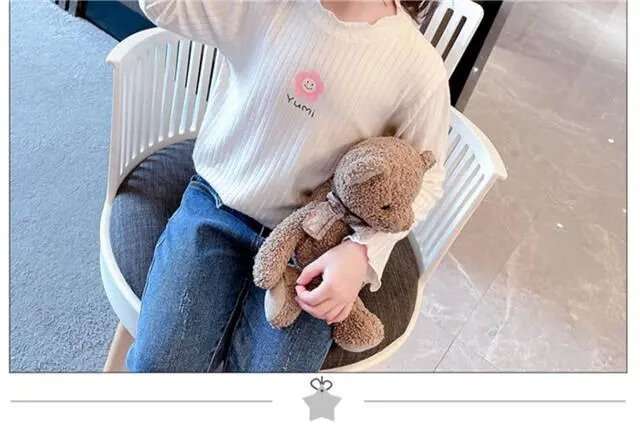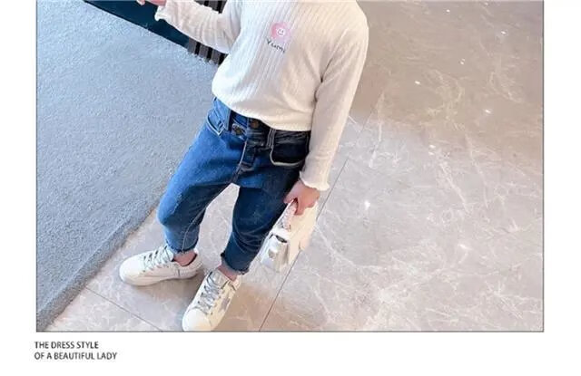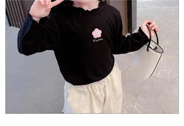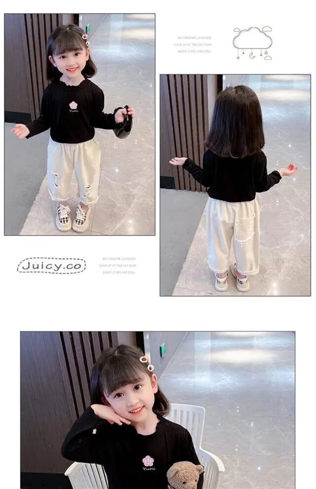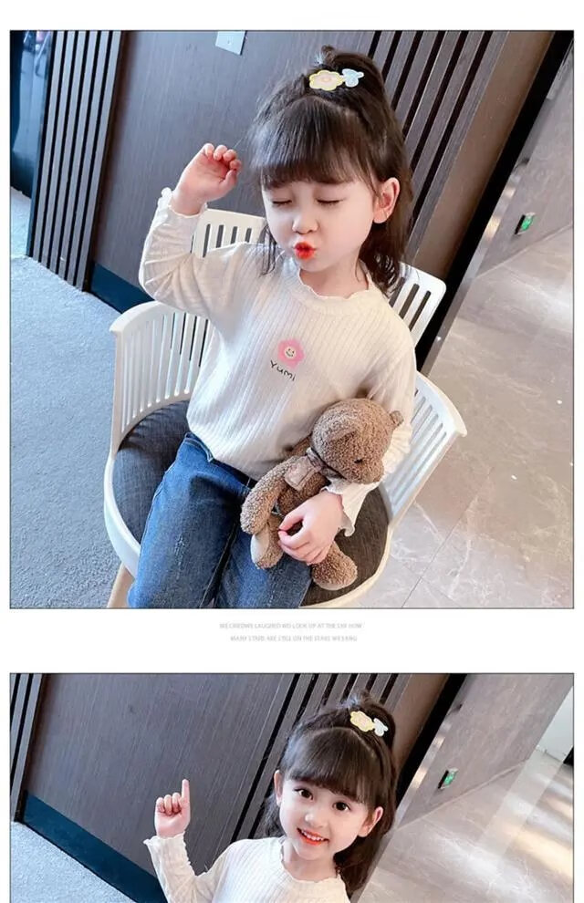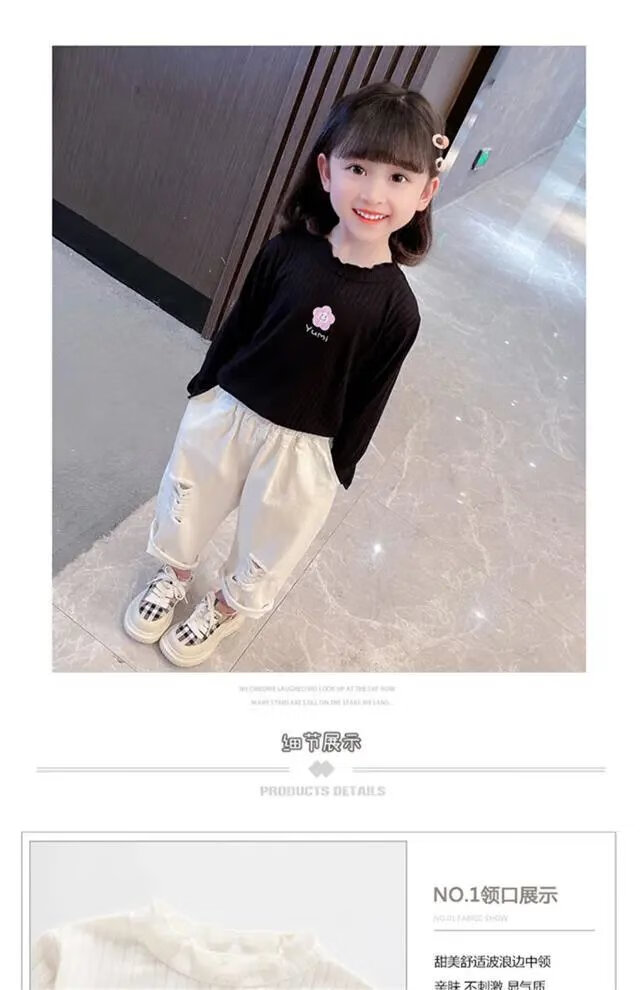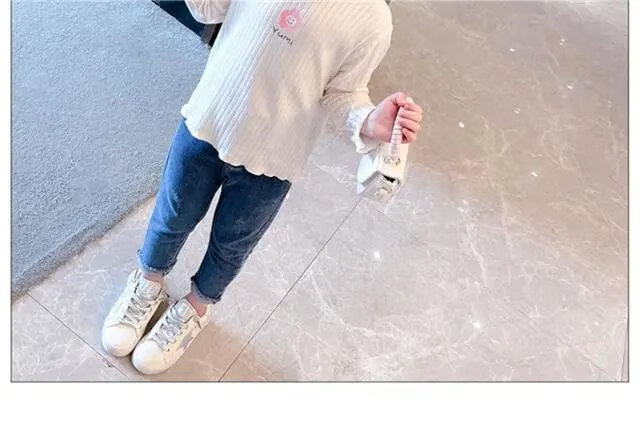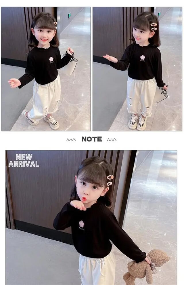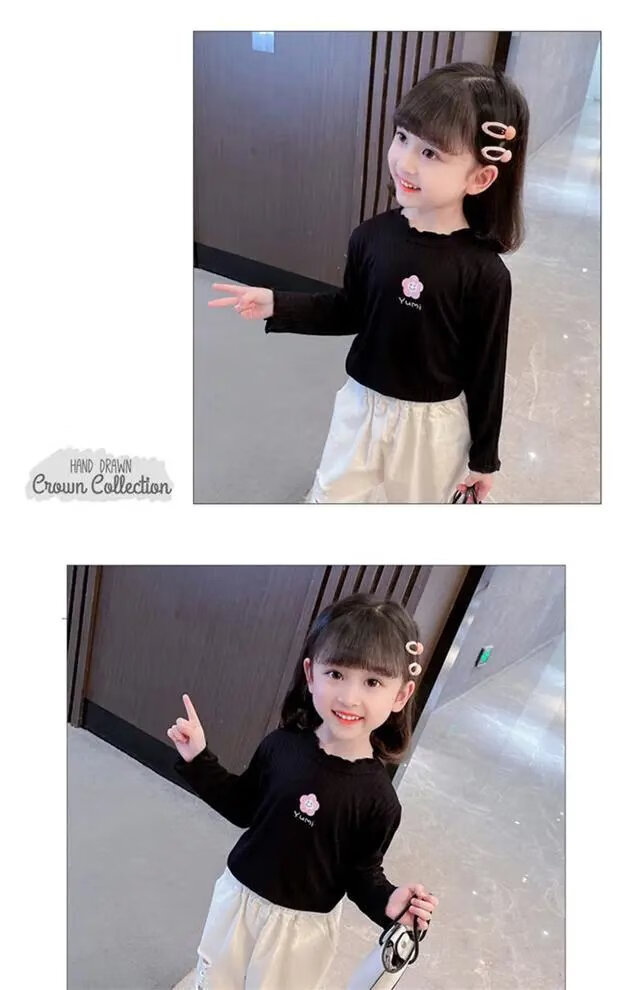Disney (DISNEY) girls long-sleeved tops autumn and winter new children's round neck pullover bottoming shirt baby pure cotton half turtleneck inner autumn coat white spring and autumn wear around 18 degrees 80