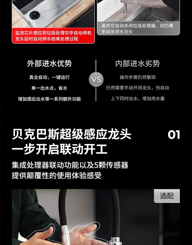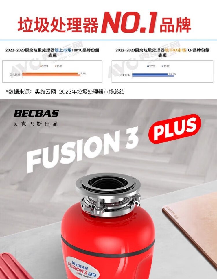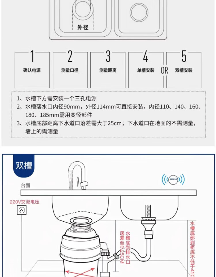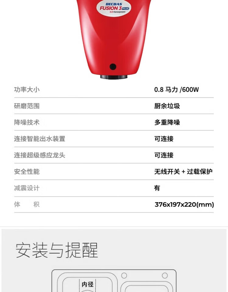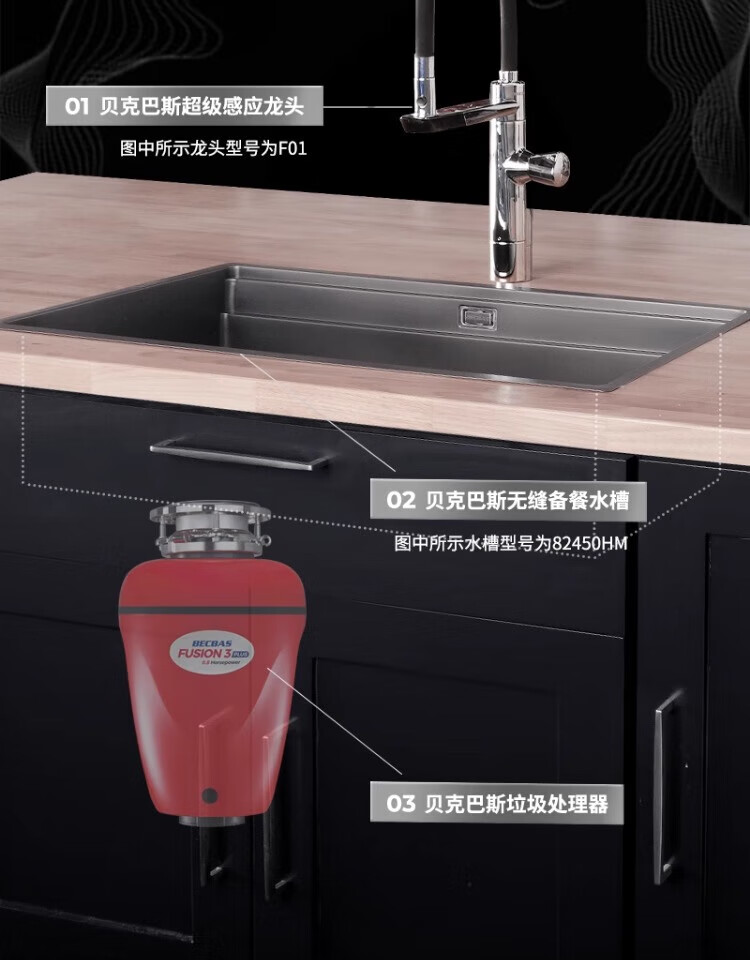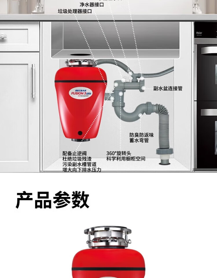 BECBAS F3PLUS household kitchen food waste disposer wireless switch fully automatic food waste shredder