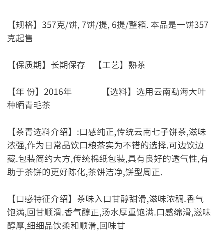 Shifangyi 2016 Pu'er Tea Ripe Tea Cake Tea 8451 Ripe Cake Menghai Ripe Tea Cake 357g Yunnan Seven 1 Cake (357g)