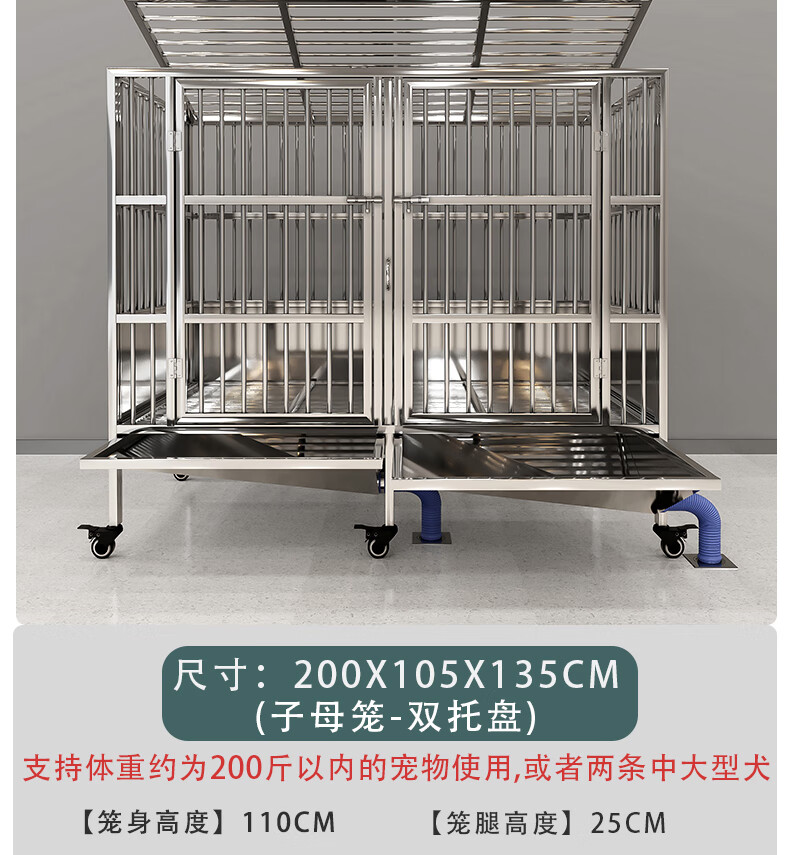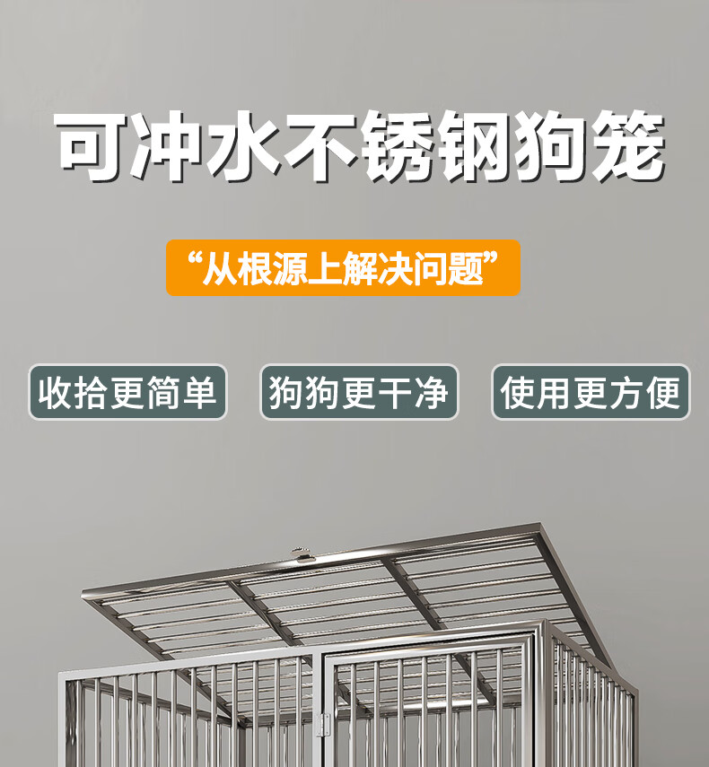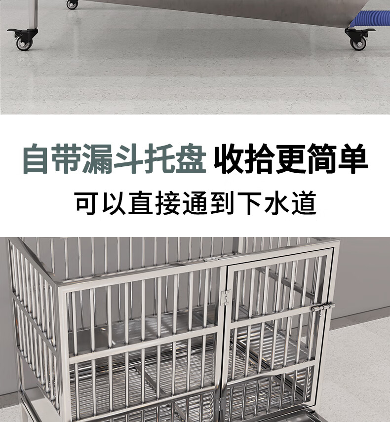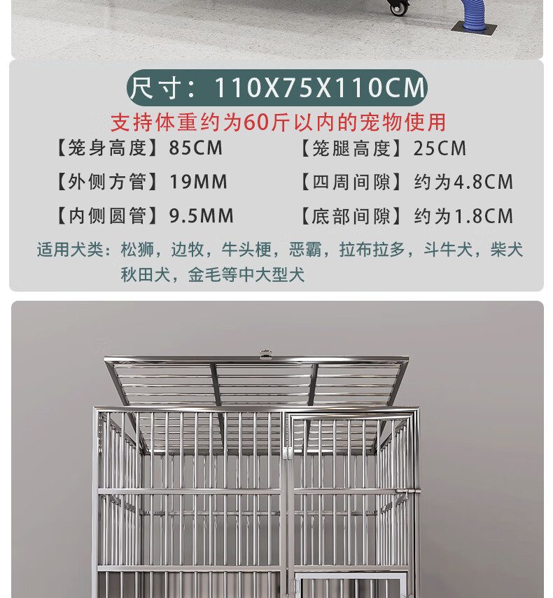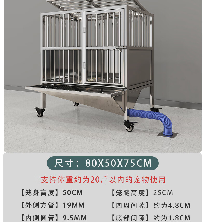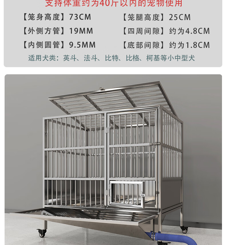 HKML Stainless Steel Dog Cage Large Dog Cage Medium Dog Cage with Toilet Separate Flush Funnel Tray Small Dog Kennel Full Tube Style - Length 80* Width 50* Height 75cm Stainless Steel 202 Hollow Round Tube Cage + Skylight + Funnel Tray - Dog Bowl Included