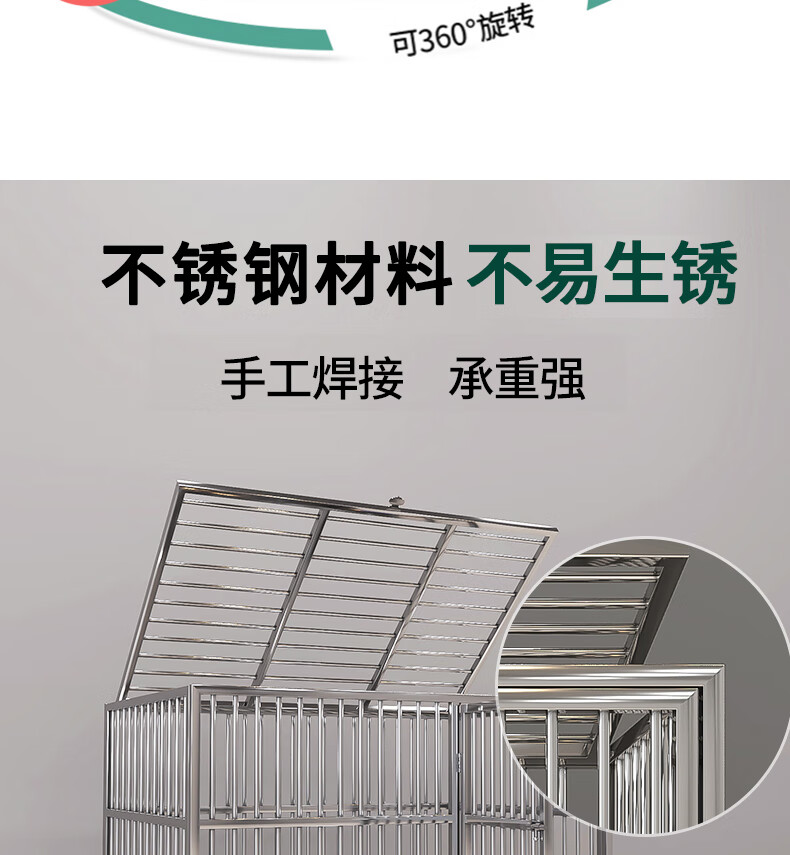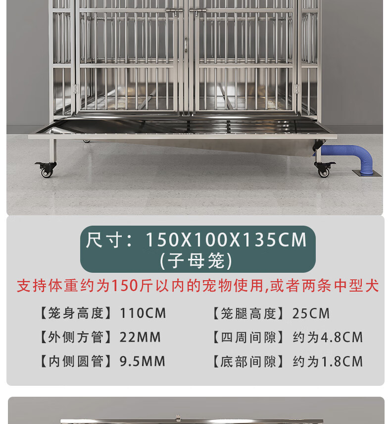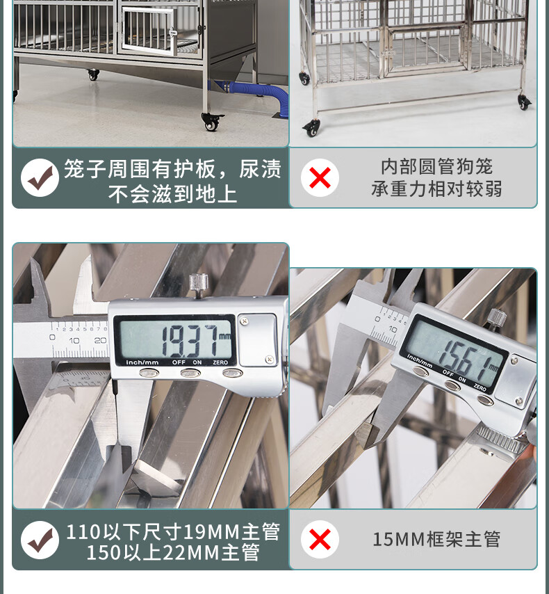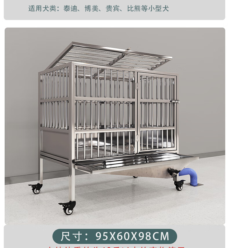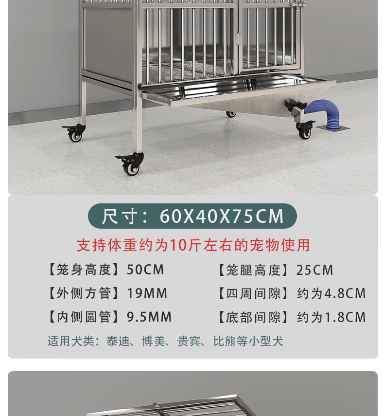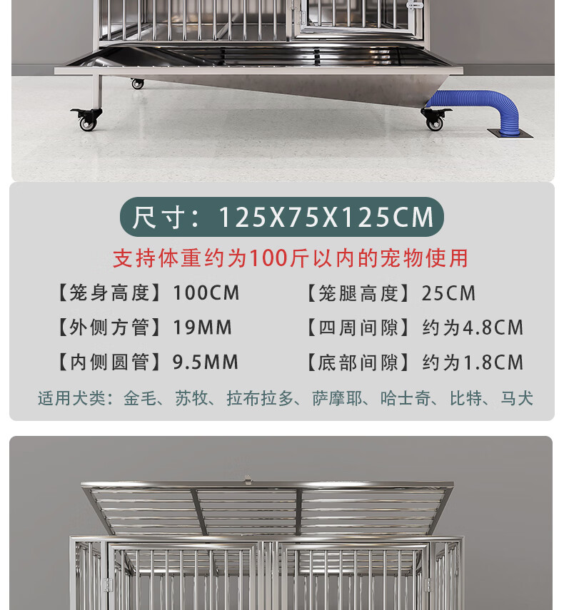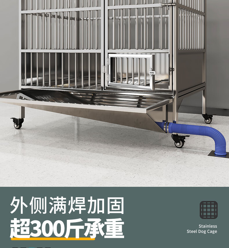 HKML Stainless Steel Dog Cage Large Dog Cage Medium Dog Cage with Toilet Separate Flush Funnel Tray Small Dog Kennel Full Tube Style - Length 80* Width 50* Height 75cm Stainless Steel 202 Hollow Round Tube Cage + Skylight + Funnel Tray - Dog Bowl Included