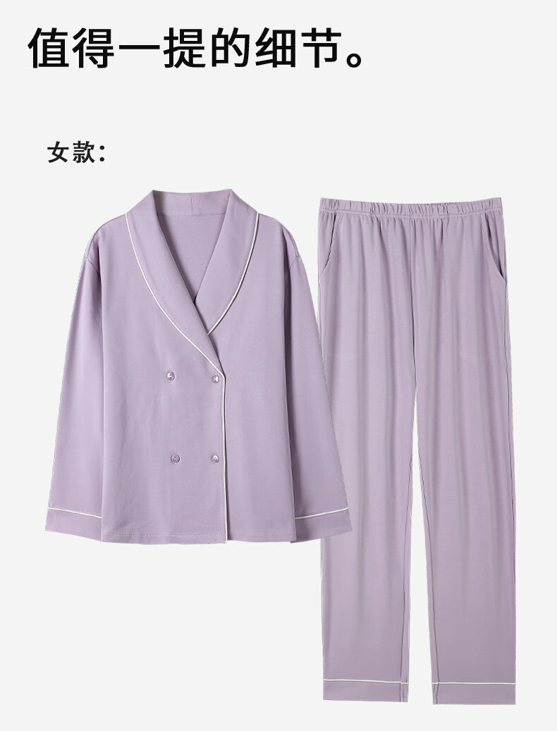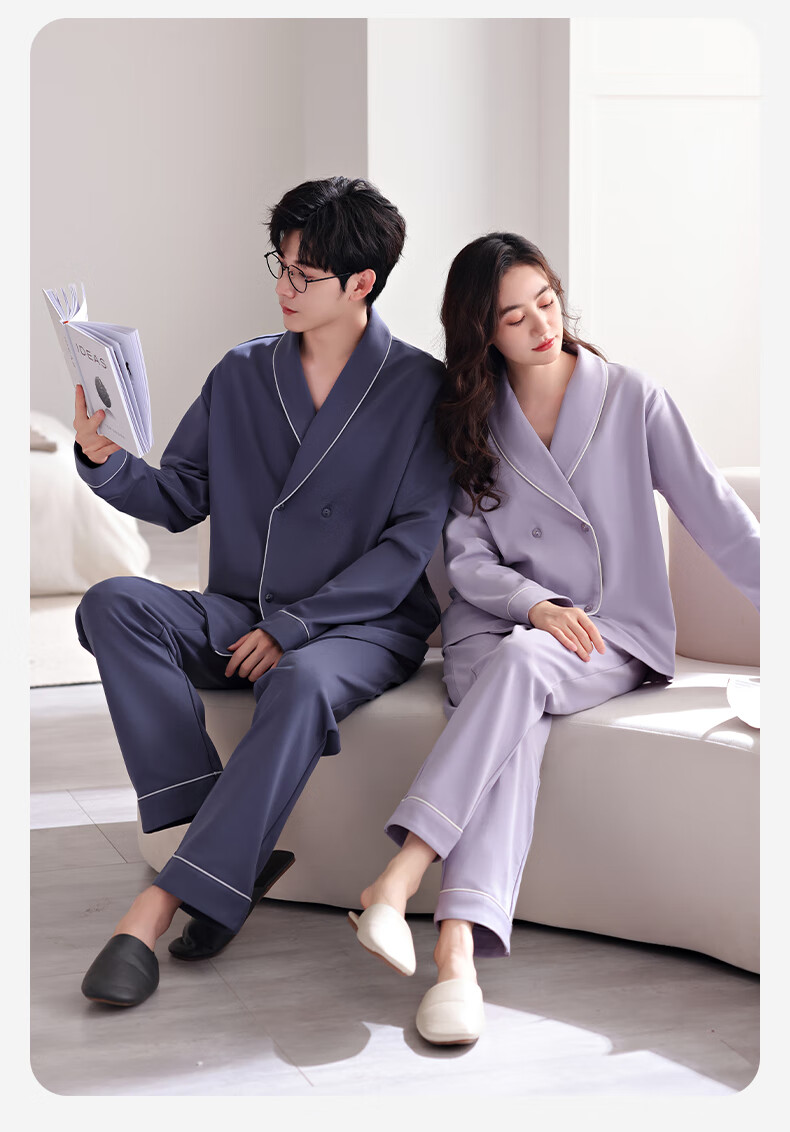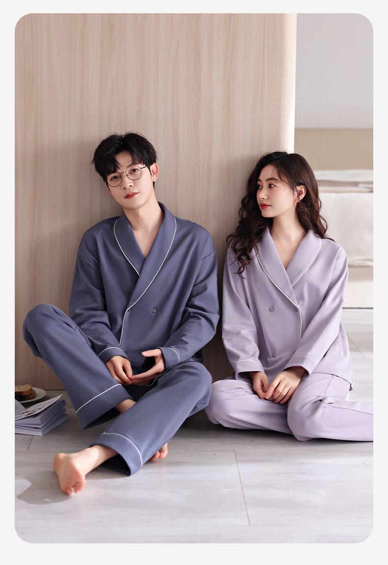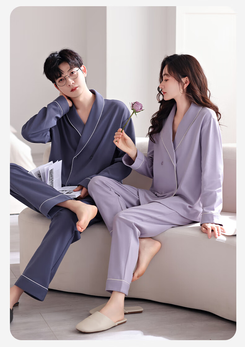 Victoria style couple pajamas for women, autumn pure cotton long sleeves, one man and one woman, couple home wear, can be worn outside, spring and autumn casual suit, female 8691 purple L
