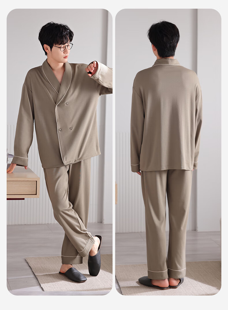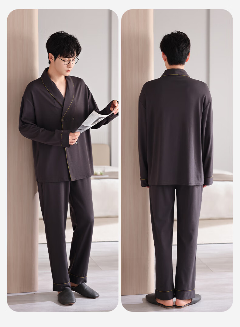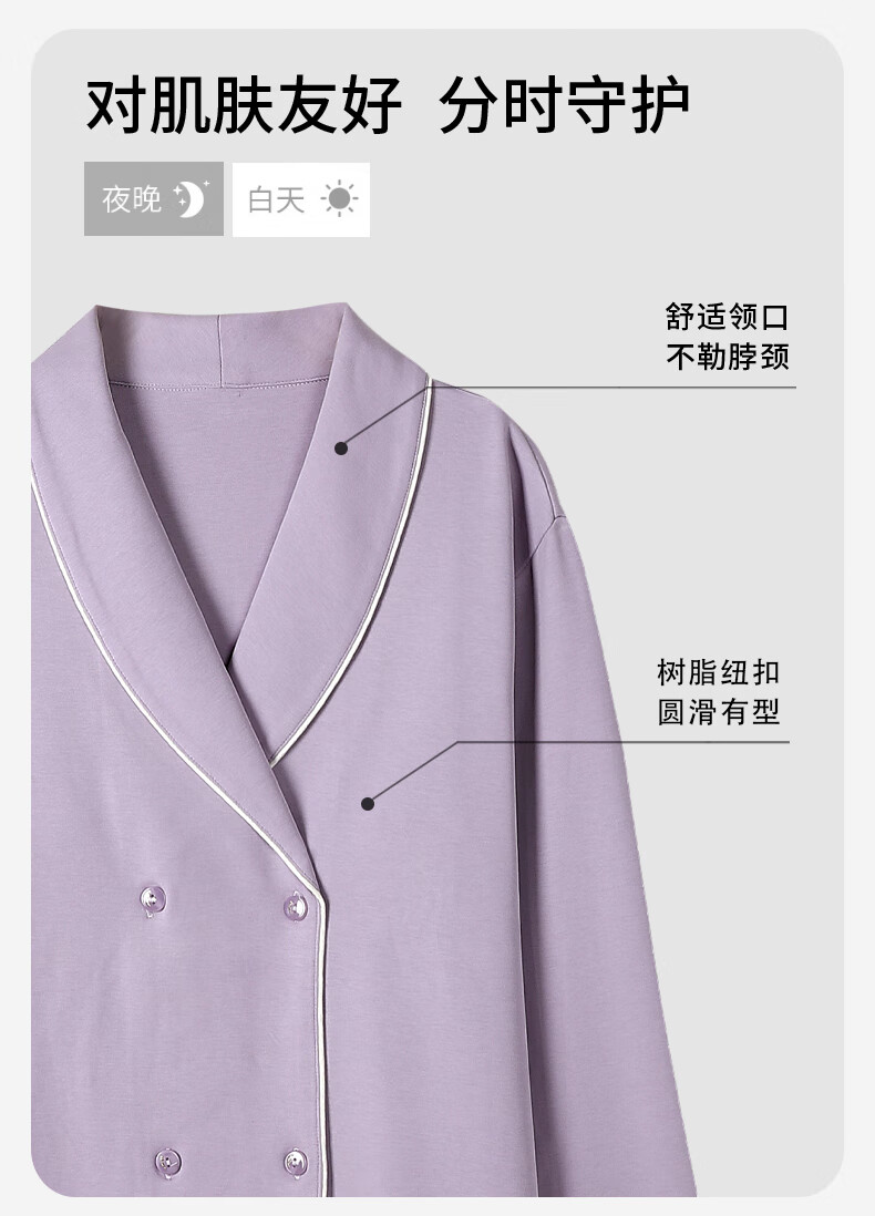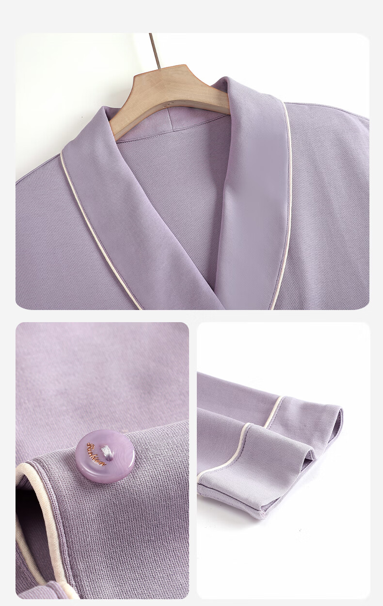 Victoria style couple pajamas for women, autumn pure cotton long sleeves, one man and one woman, couple home wear, can be worn outside, spring and autumn casual suit, female 8691 purple L