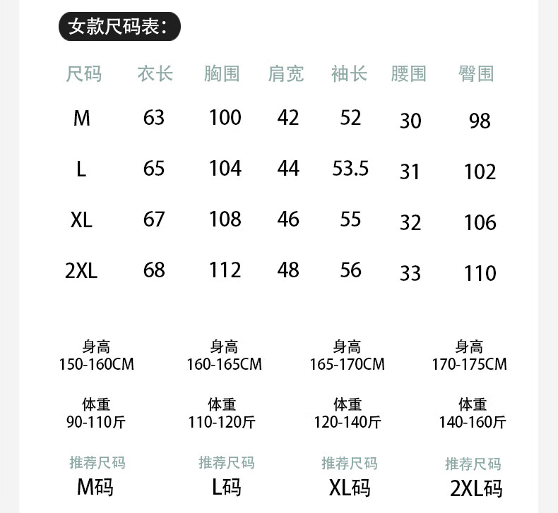China (cm) 160-165/84-86 165-170 / 88-90 167-172 / 92-96 168-173 / 98-102 170-176 / 106-110