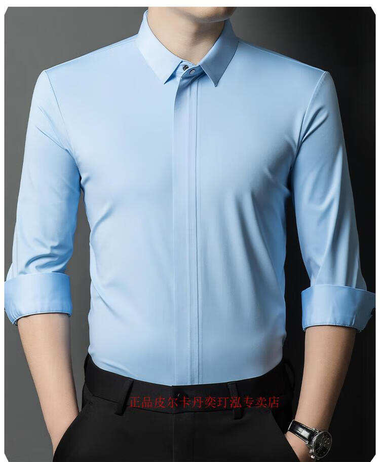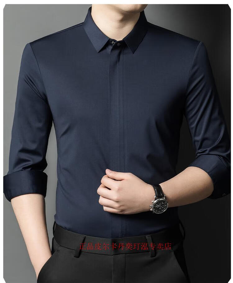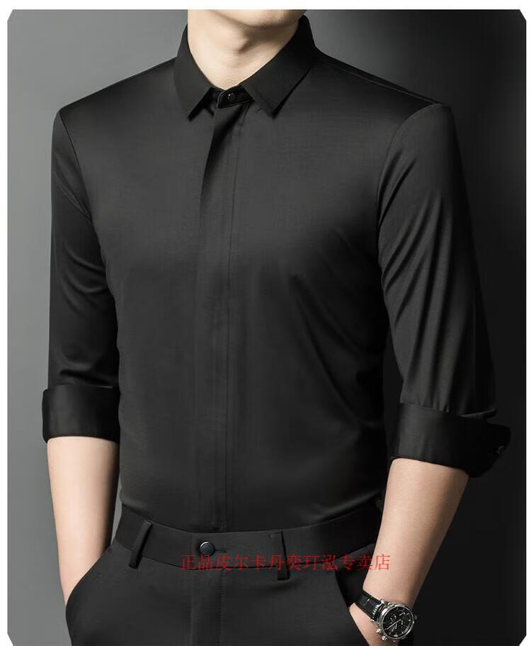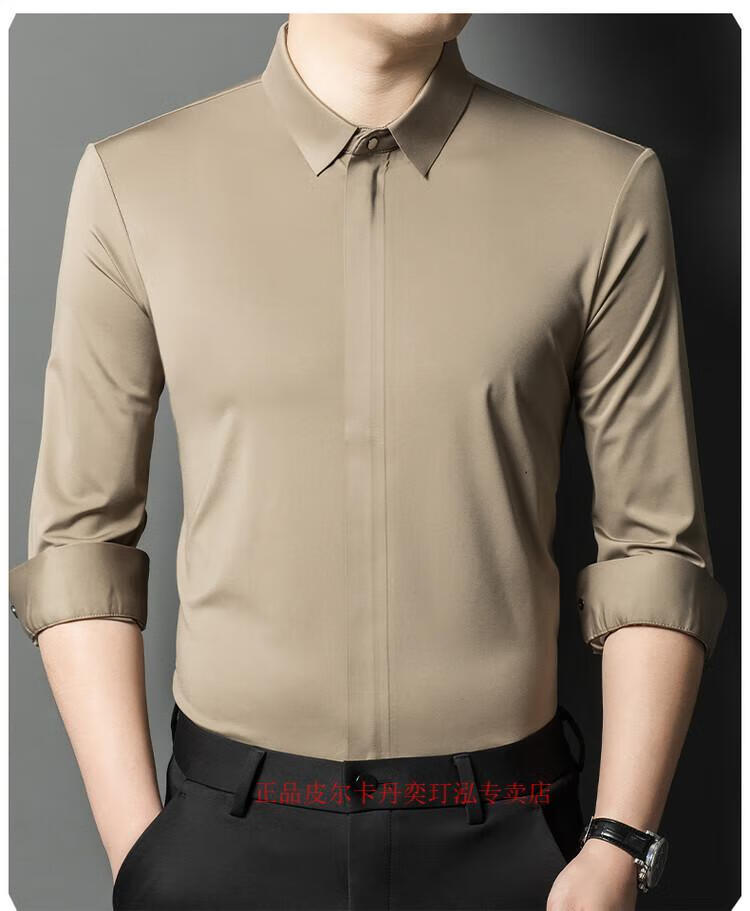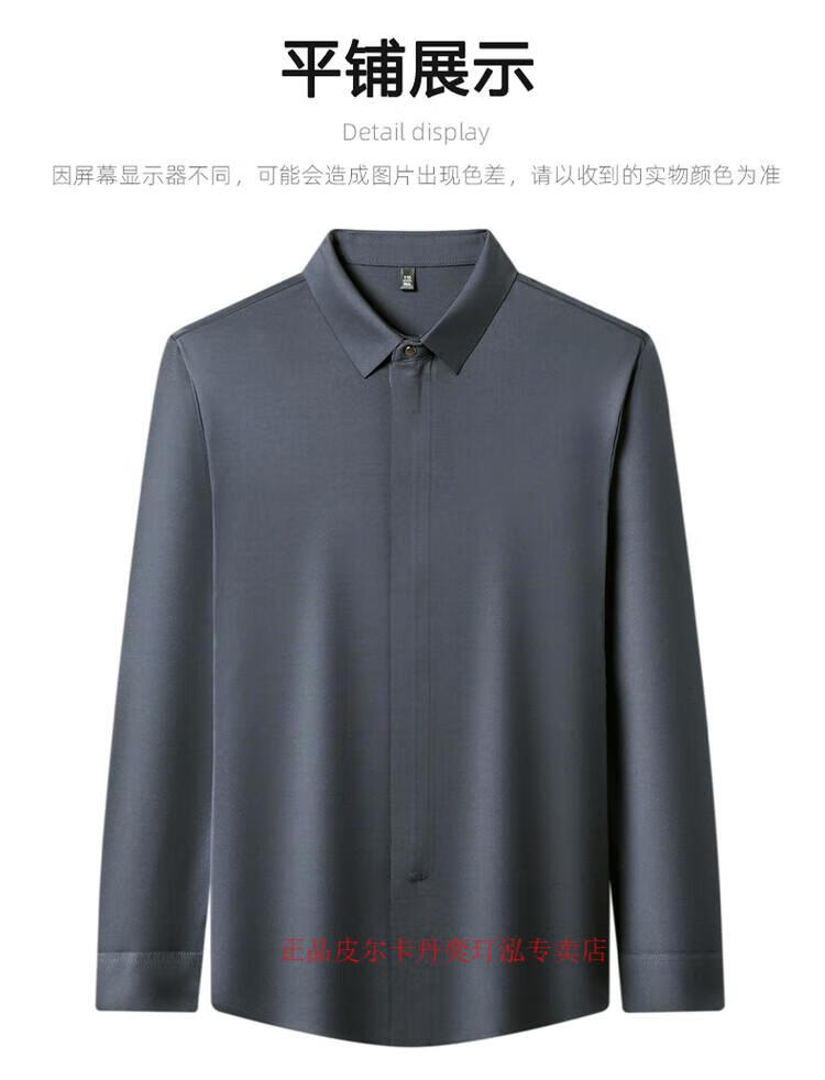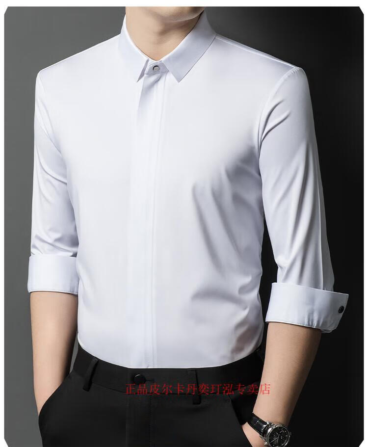 Pierre Cardin 2024 spring and autumn white long-sleeved shirt men's solid color trendy zipper shirt business casual professional wear bottoming shirt white L recommended 120-140 Jin Jin equals 0.5 kg to wear