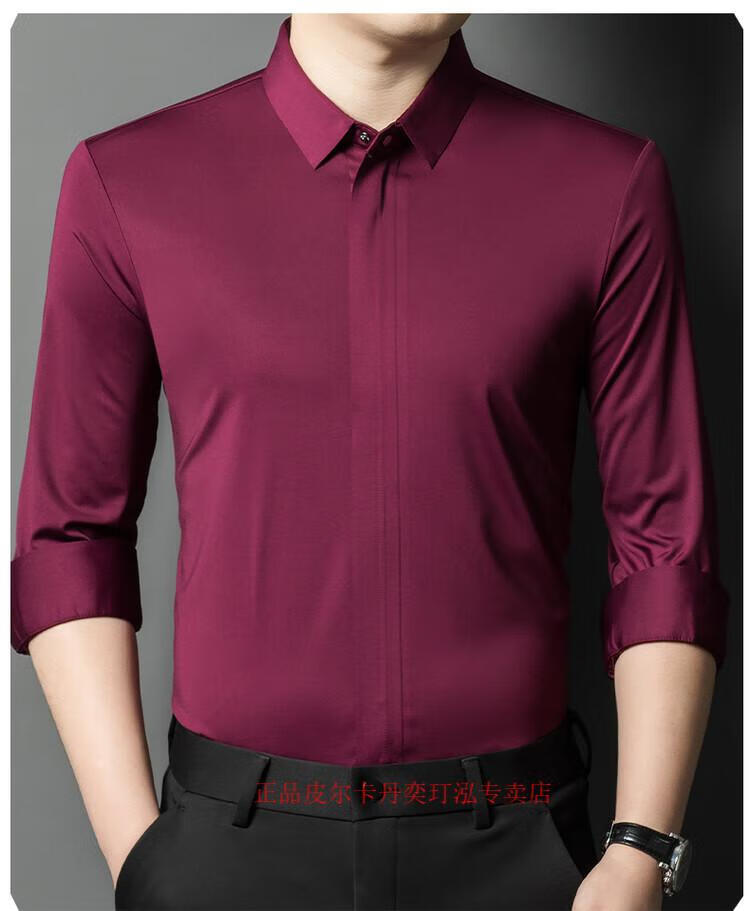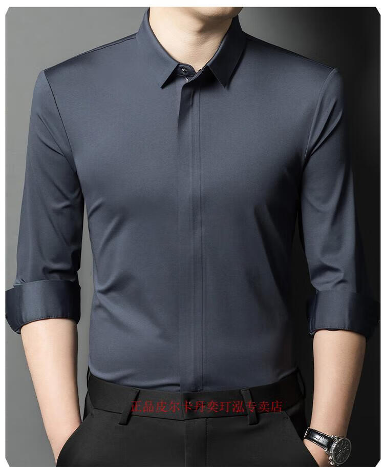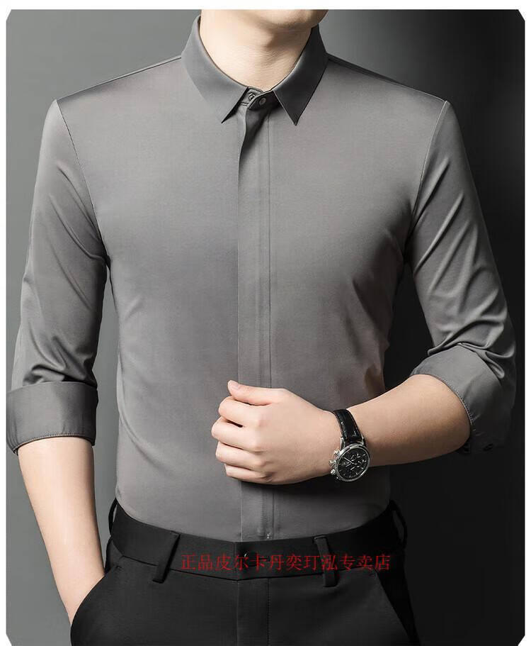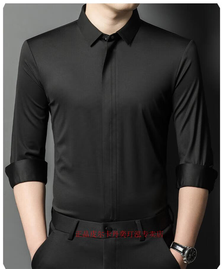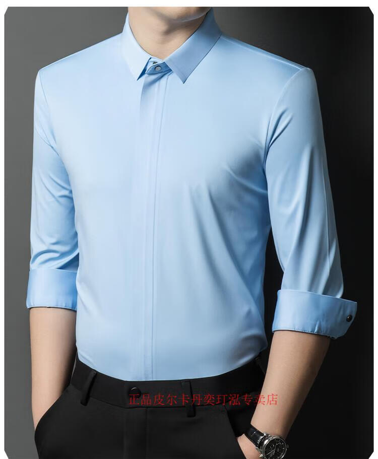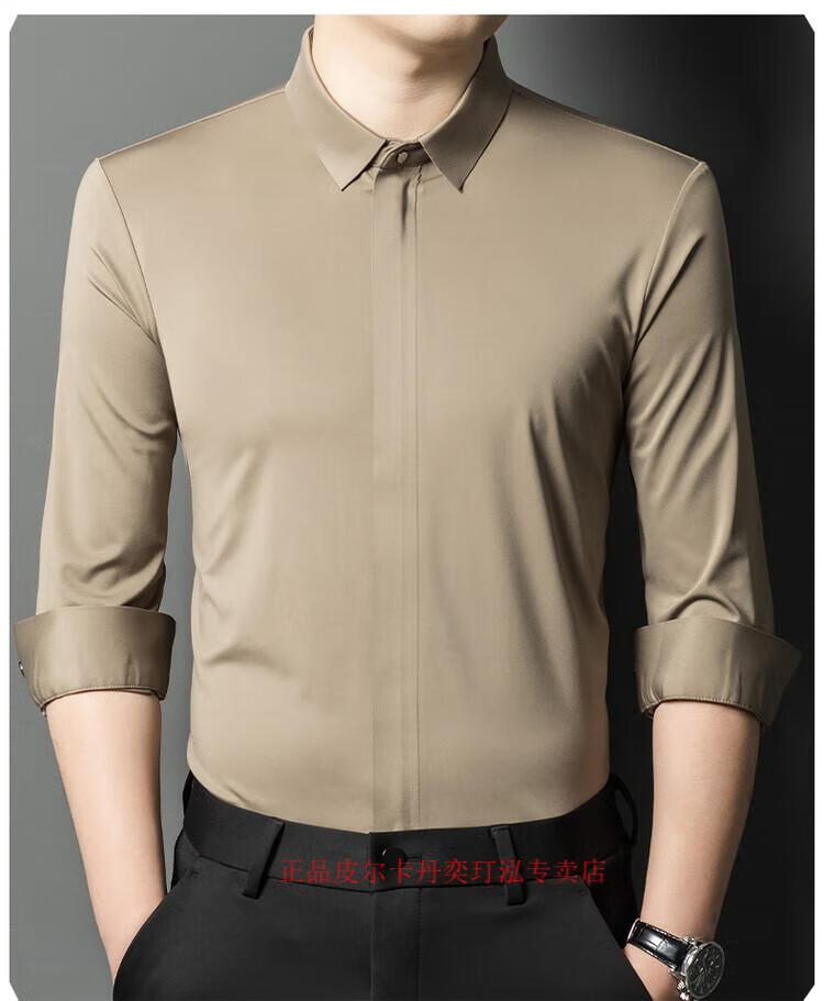 Pierre Cardin 2024 spring and autumn white long-sleeved shirt men's solid color trendy zipper shirt business casual professional wear bottoming shirt white L recommended 120-140 Jin Jin equals 0.5 kg to wear
