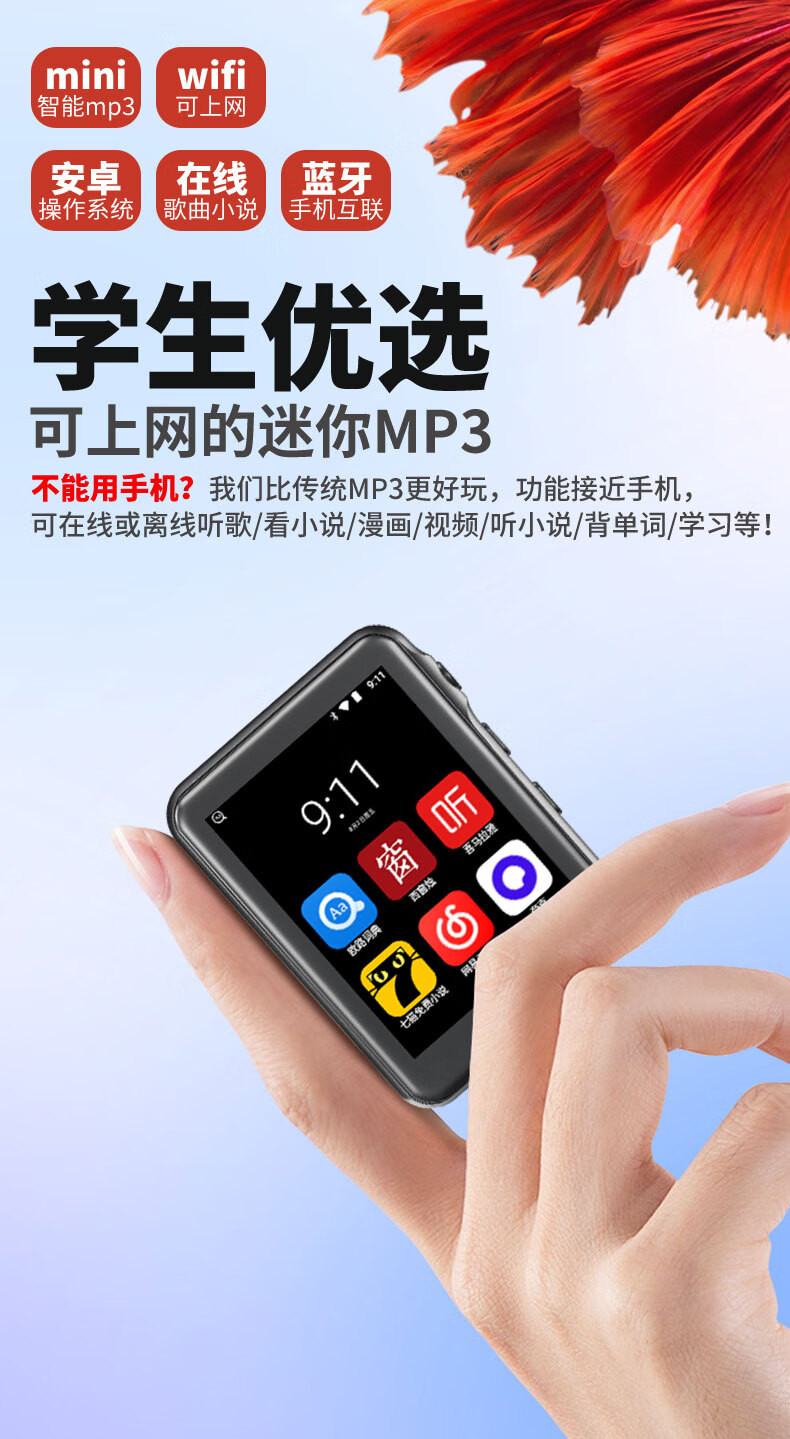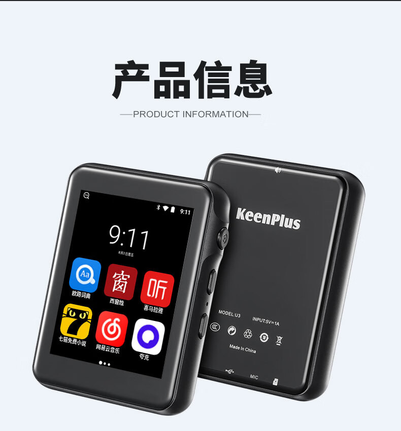 KeenPlus full screen mp3mp4 walkman WiFi Internet access student version Bluetooth small portable full touch screen mp5 music player artifact mp6 English pronunciation dictionary novel p4 WiFi Internet version 8GB Android 8 | Quad core body memory