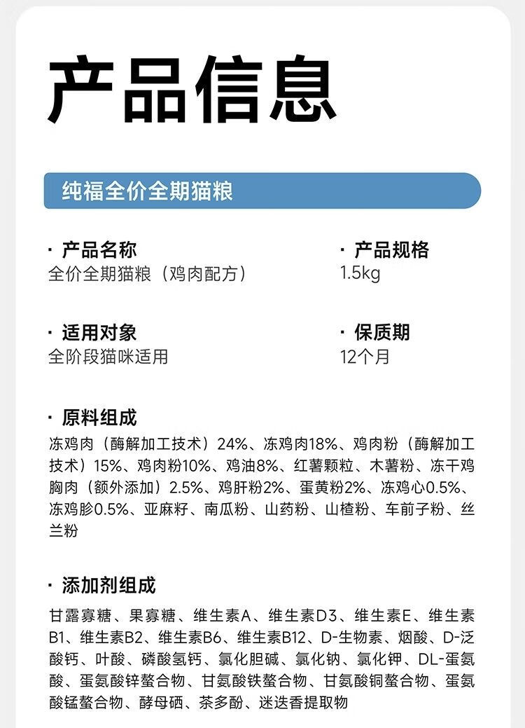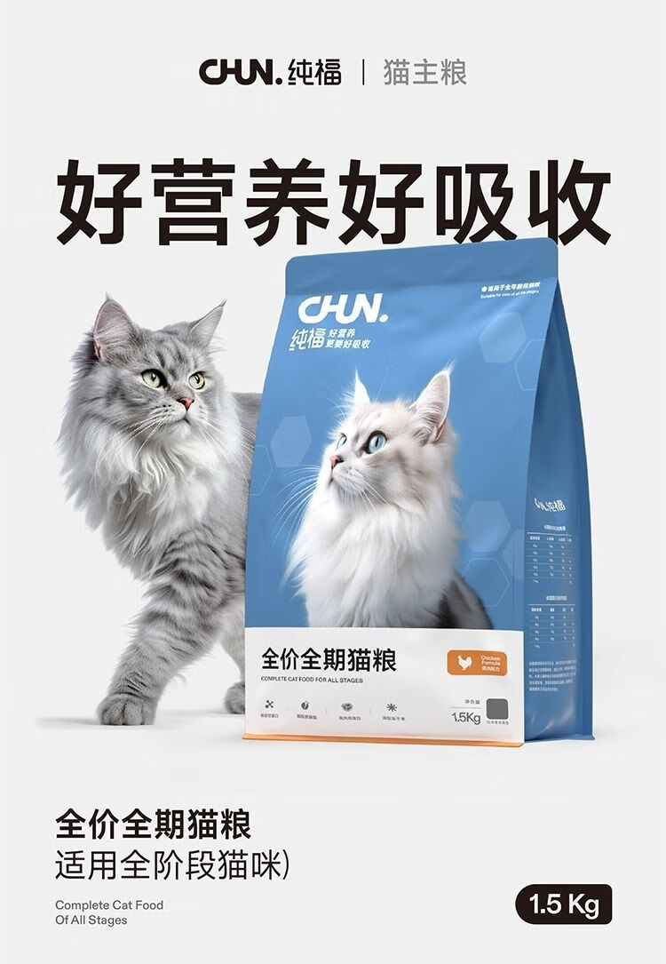 Chunfu (chunfu) cat food full-priced whole-term cat food grain-free enzymatically hydrolyzed chicken freeze-dried kitten and adult cat special staple food natural grain-free cat food single package 3Jin Jin is equal to 0.5 kg (formal package unopened and returnable) test Chunfu full-term cat food
