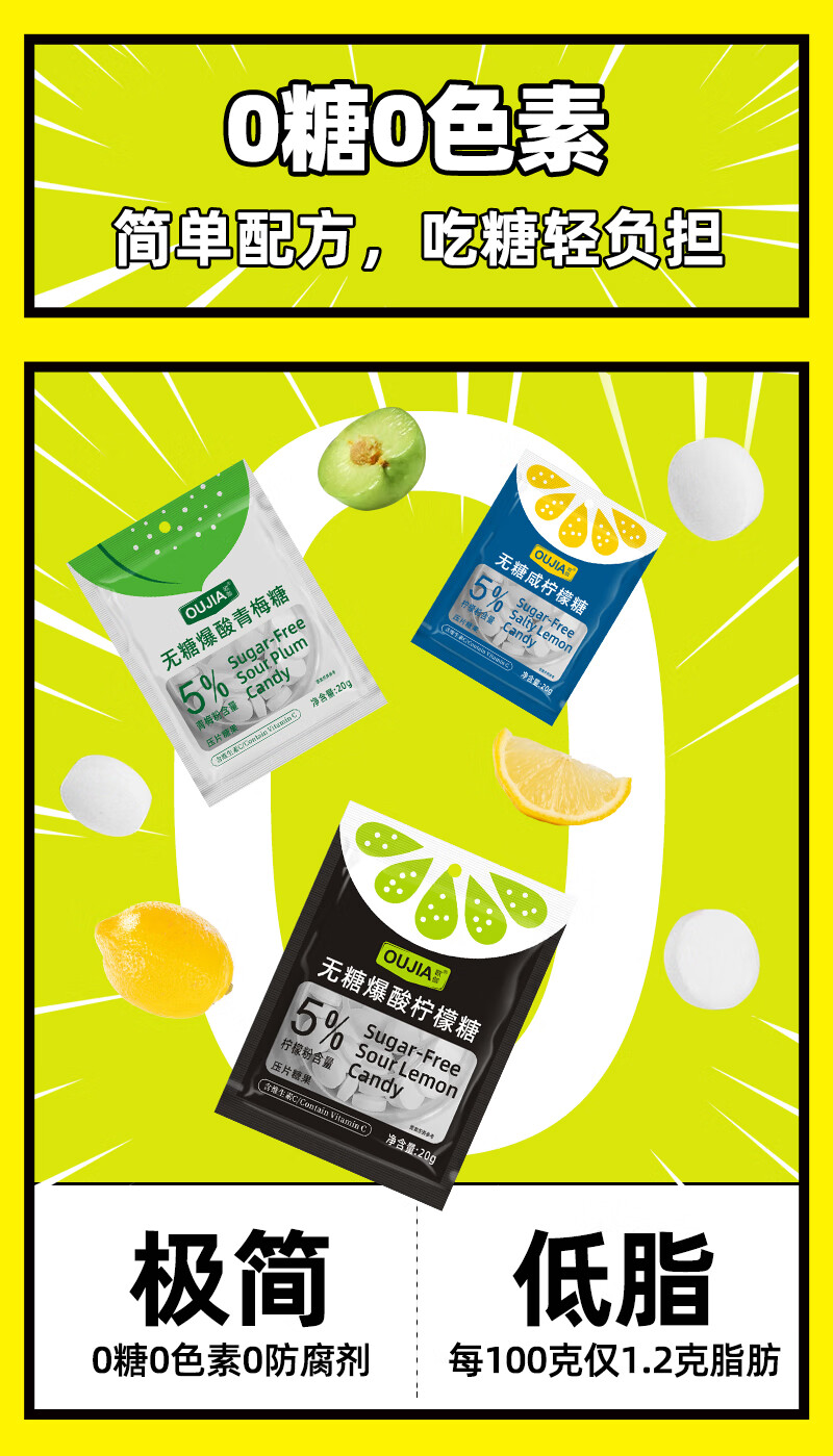 OUJIA Sugar-free Sour Lemon Candy Salted Lemon Candy Sugar-free Salted Lemon 3 packs