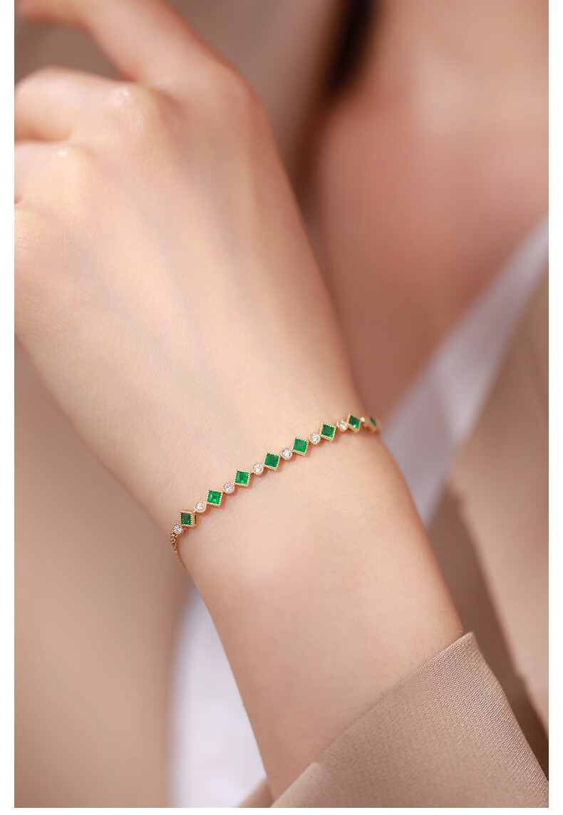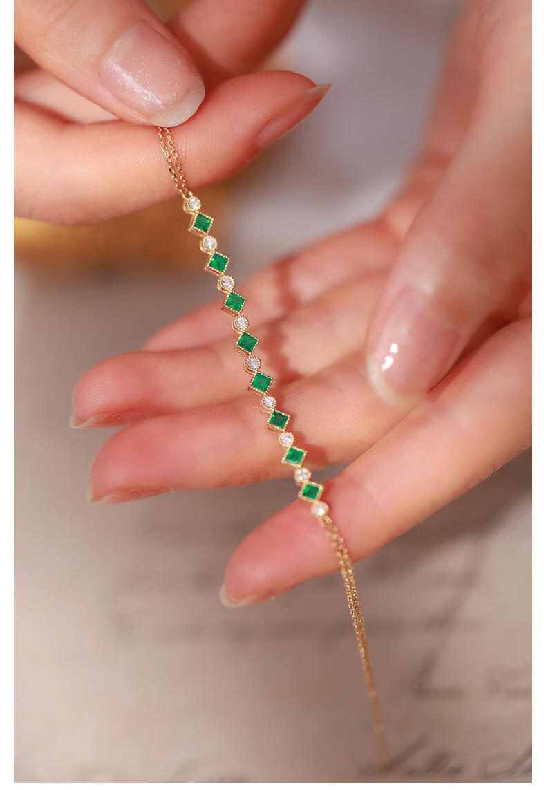 COASZE 18k gold emerald and diamond bracelet set with colorful gems and diamond jewelry for women to give to their besties emerald bracelet