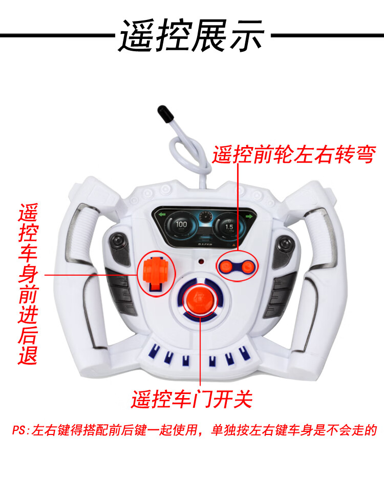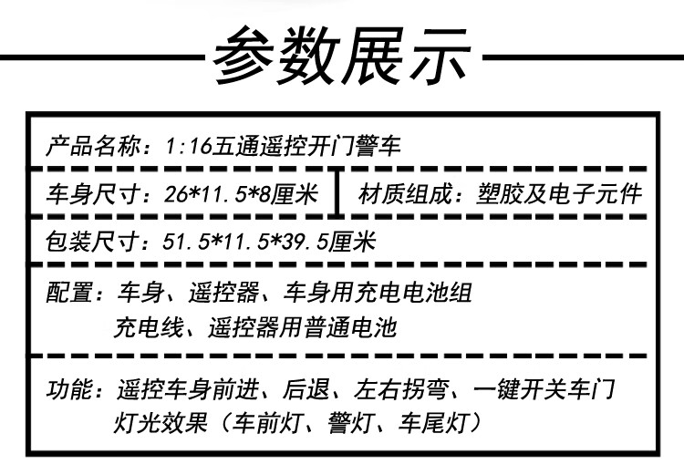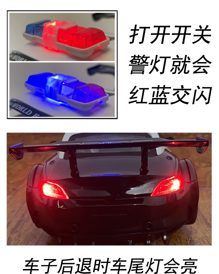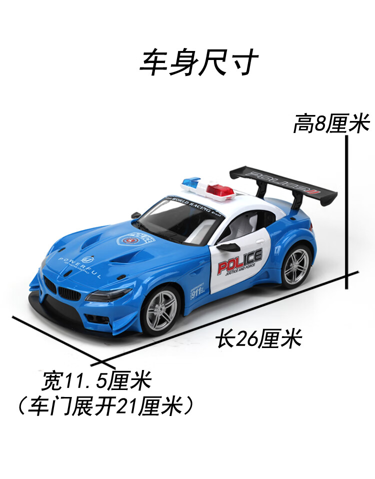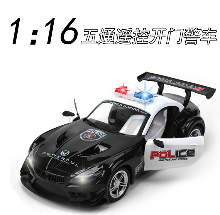 Large children's remote control car rechargeable wireless remote control light opening police car drift racing car model toy 26cm five-way remote control opening police car black 2253