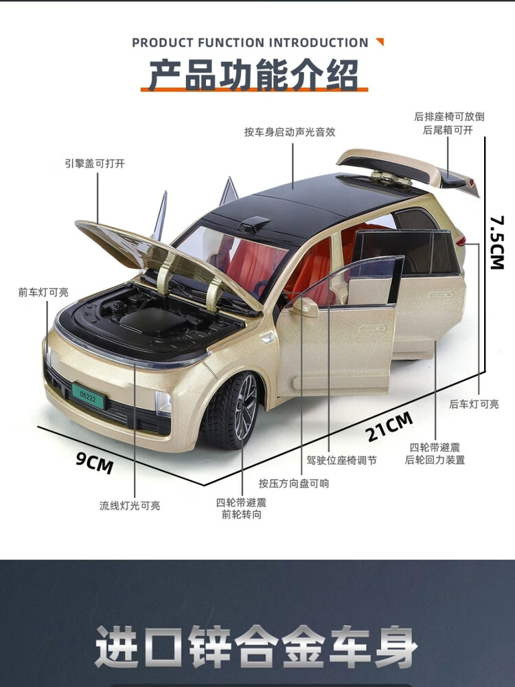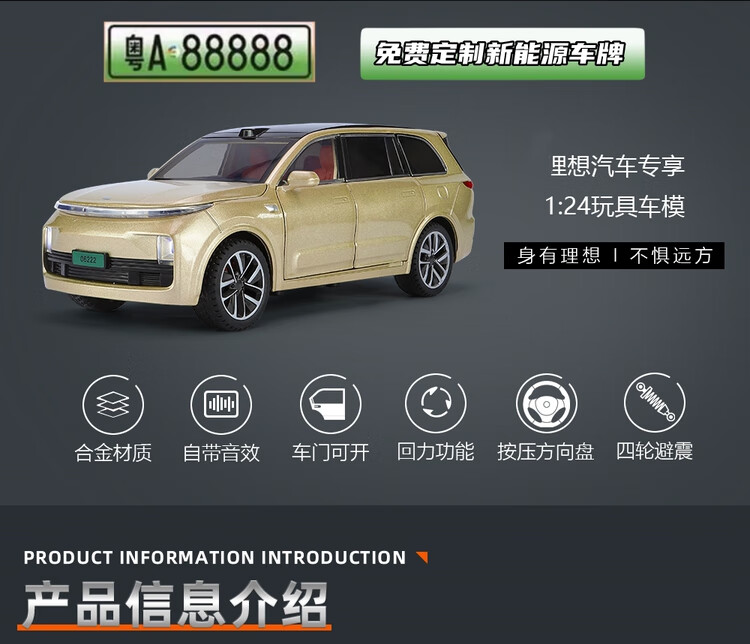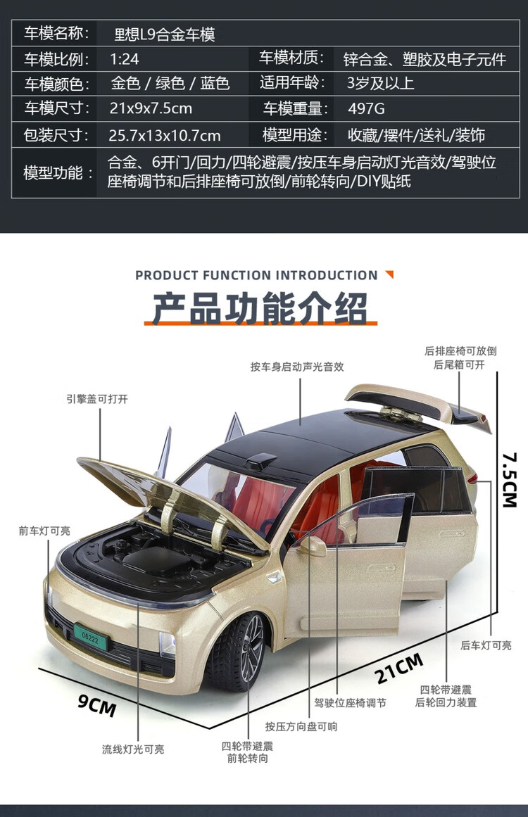 Japan Seiko Ideal Car Model New Energy Car Model Alloy Simulation Collection Children's Toy Car Boy Large Ideal L9 Gold Free Sticker Door Opener SUV