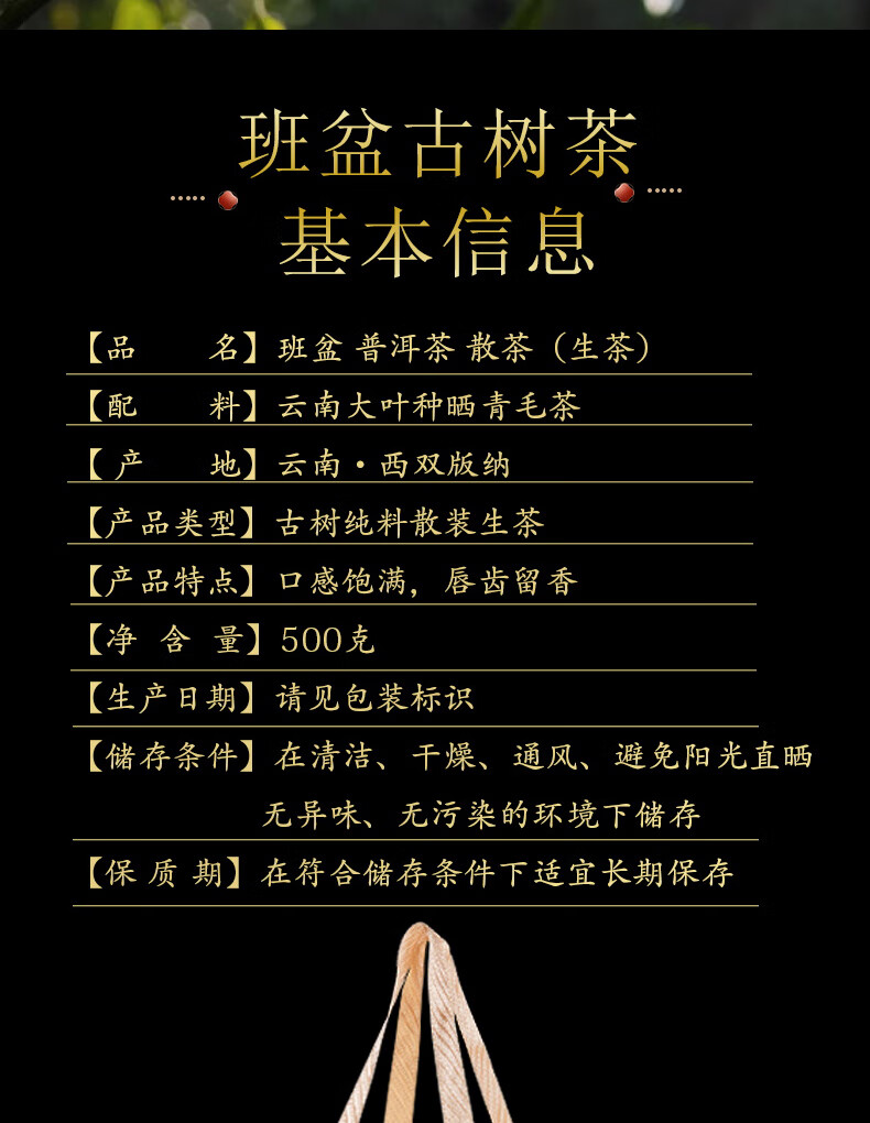 Hedan Yunnan Pu'er Tea Raw Tea Loose Tea Bulk 2024 Banpen Laozhai Pu'er Head Spring Picking Ancient Tree Pure Material 500g