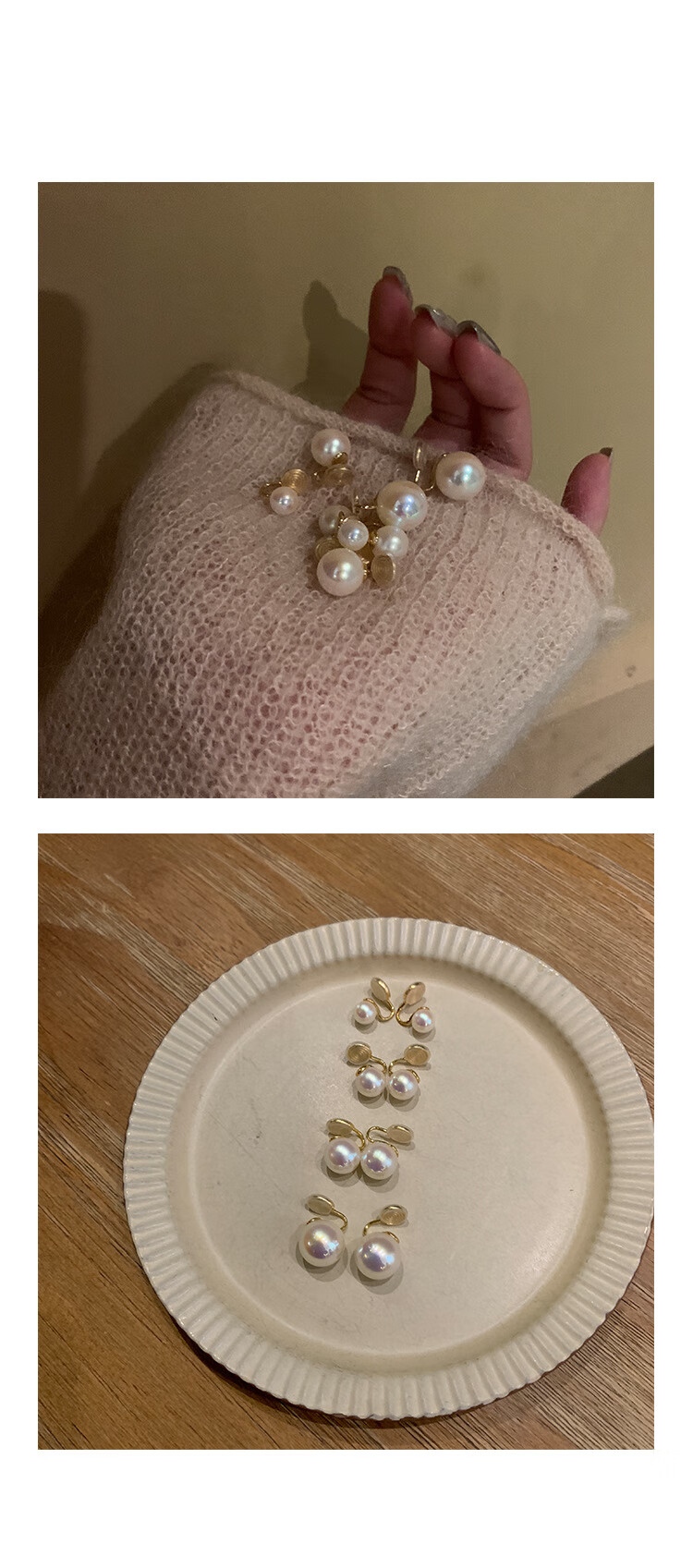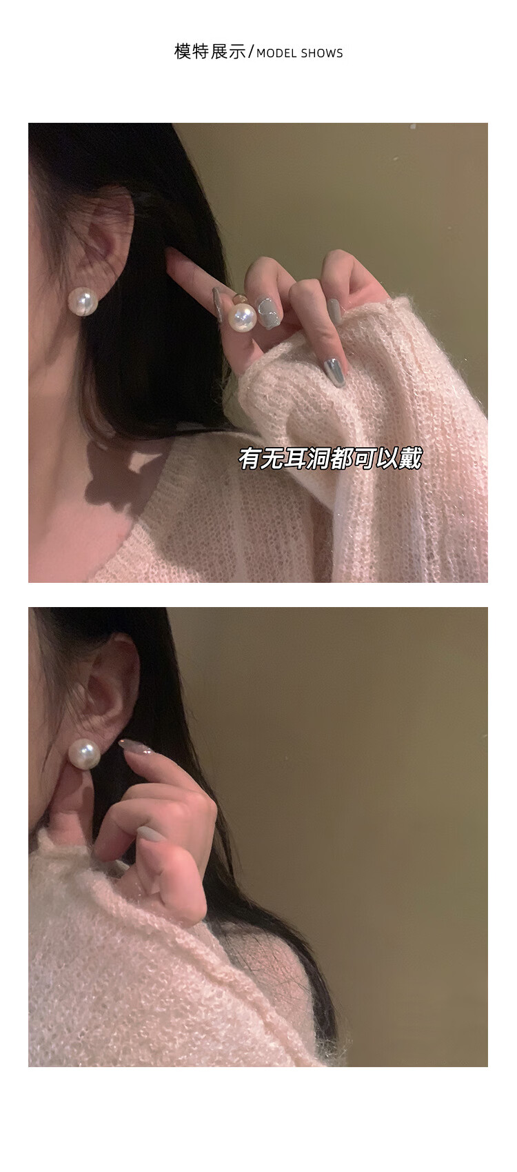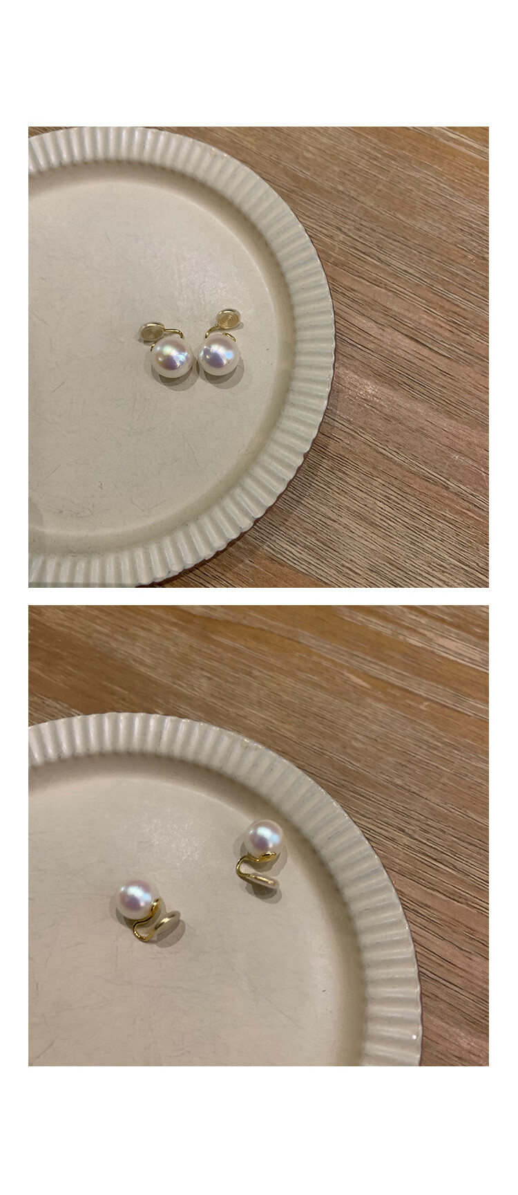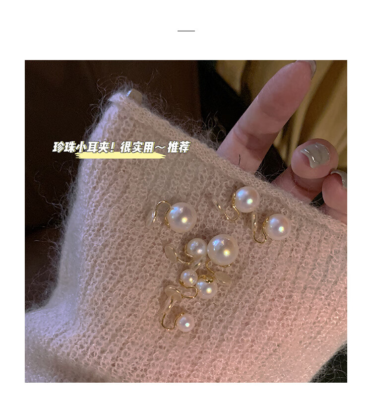 Japanese and Korean simple pearl small mosquito coil ear clips without piercing niche autumn and winter earrings women's ear jewelry earrings 12mm pair mosquito coil ear clips with soft cushions