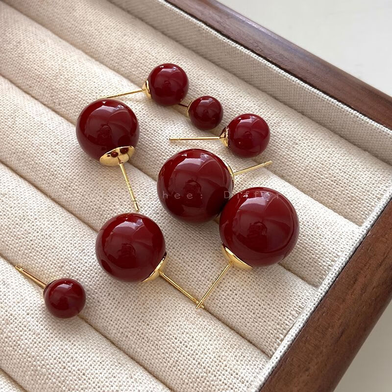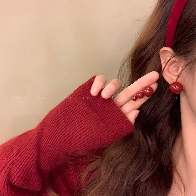 Hong Kong style wine red sugar bean pearl earrings for women new 2024 earrings niche design ear jewelry 10mm red bean mosquito coil ear clip