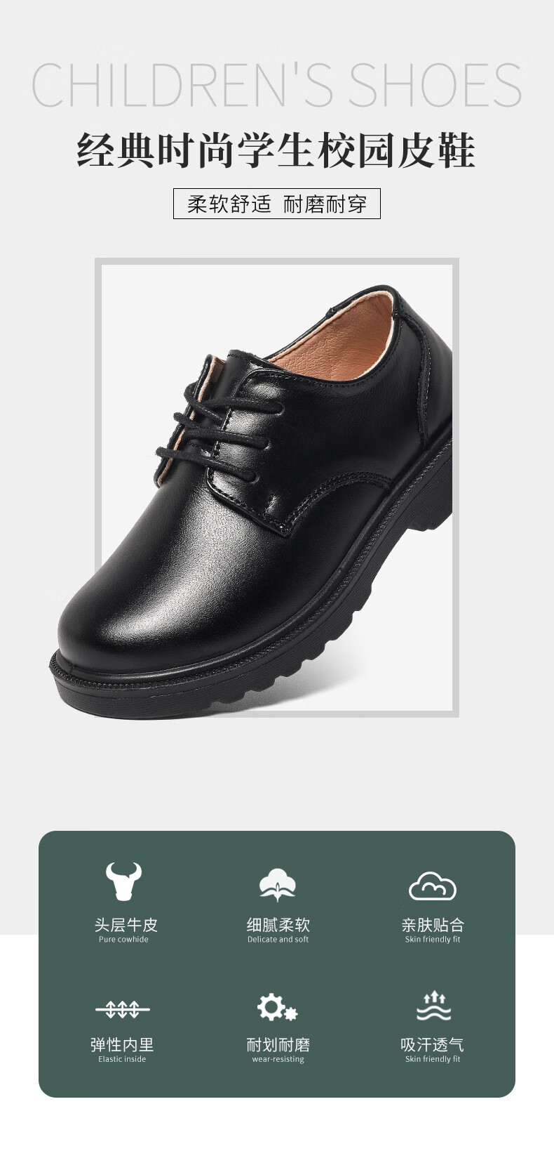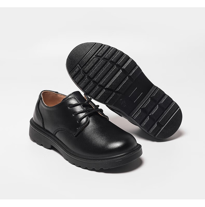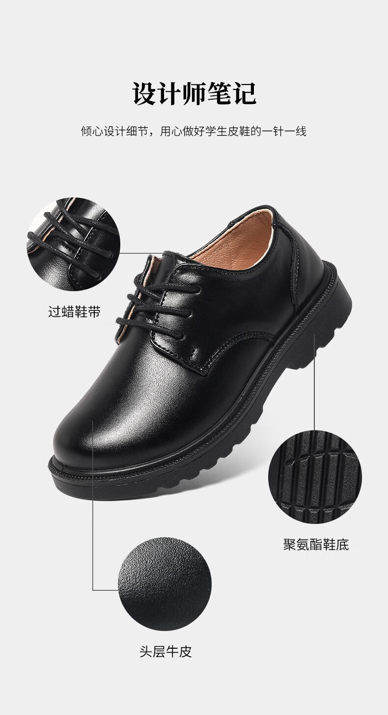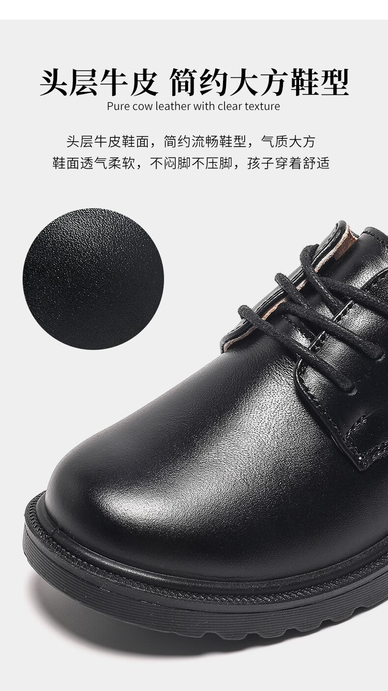 Shepherd Cow Boys' Leather Shoes Black Genuine Leather Spring and Autumn Style Soft-soled Children's British Style Lace-up Primary School Performance Shoes for Middle and Large Children Classic Lace-up Upgraded First-Layer Cowhide Size 36 Size/Shoe Inner Length 22.7cm