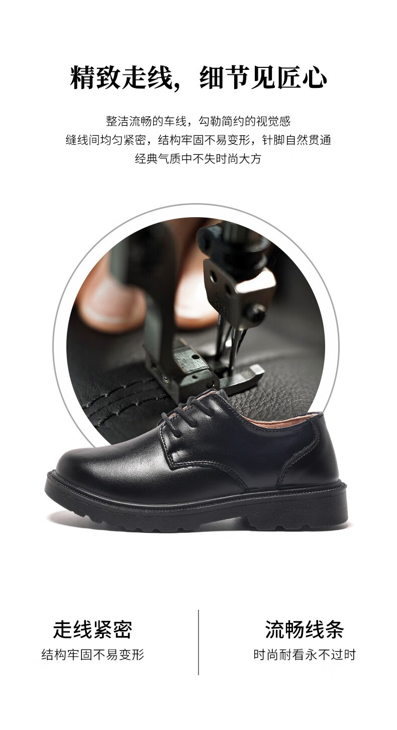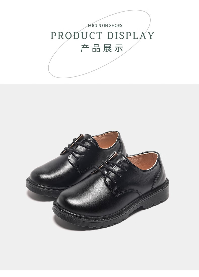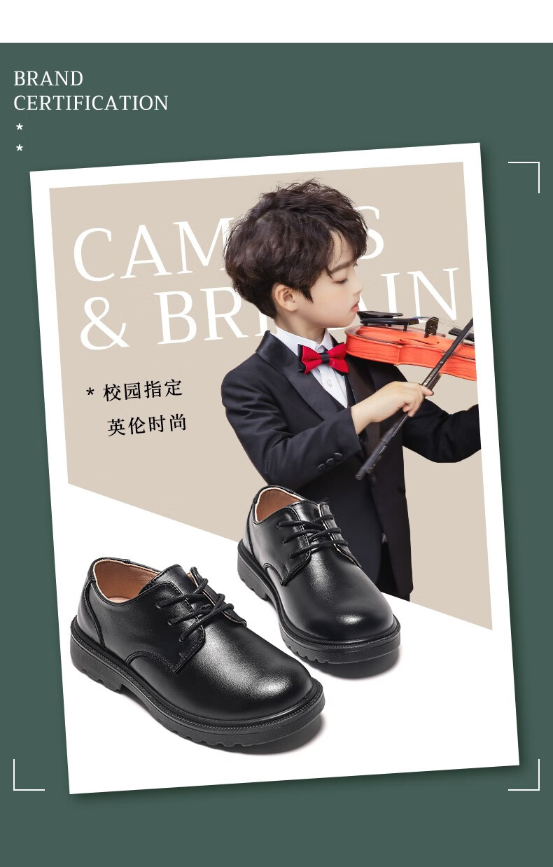 Shepherd Cow Boys' Leather Shoes Black Genuine Leather Spring and Autumn Style Soft-soled Children's British Style Lace-up Primary School Performance Shoes for Middle and Large Children Classic Lace-up Upgraded First-Layer Cowhide Size 36 Size/Shoe Inner Length 22.7cm