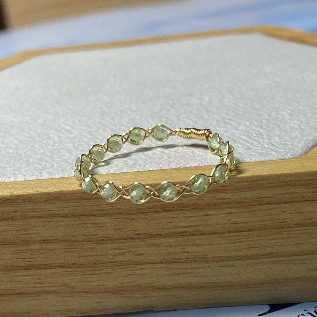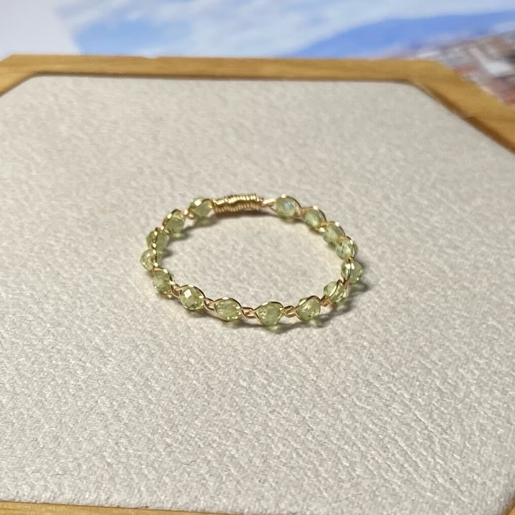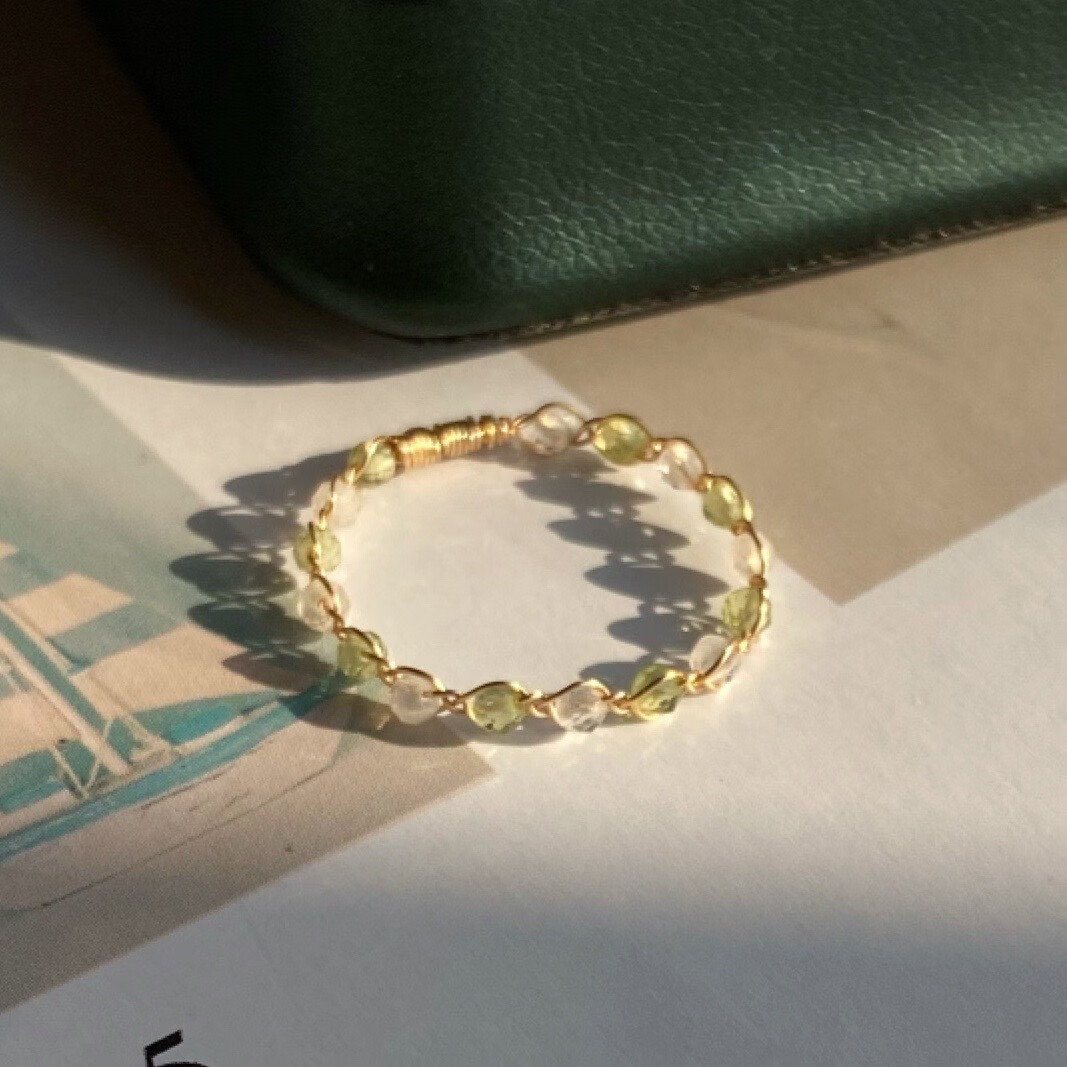 Moyun natural crystal peridot white moonlight olive green woven ring forest style small fresh retro pure beauty thin circle stacked peridot finger circumference 50mm