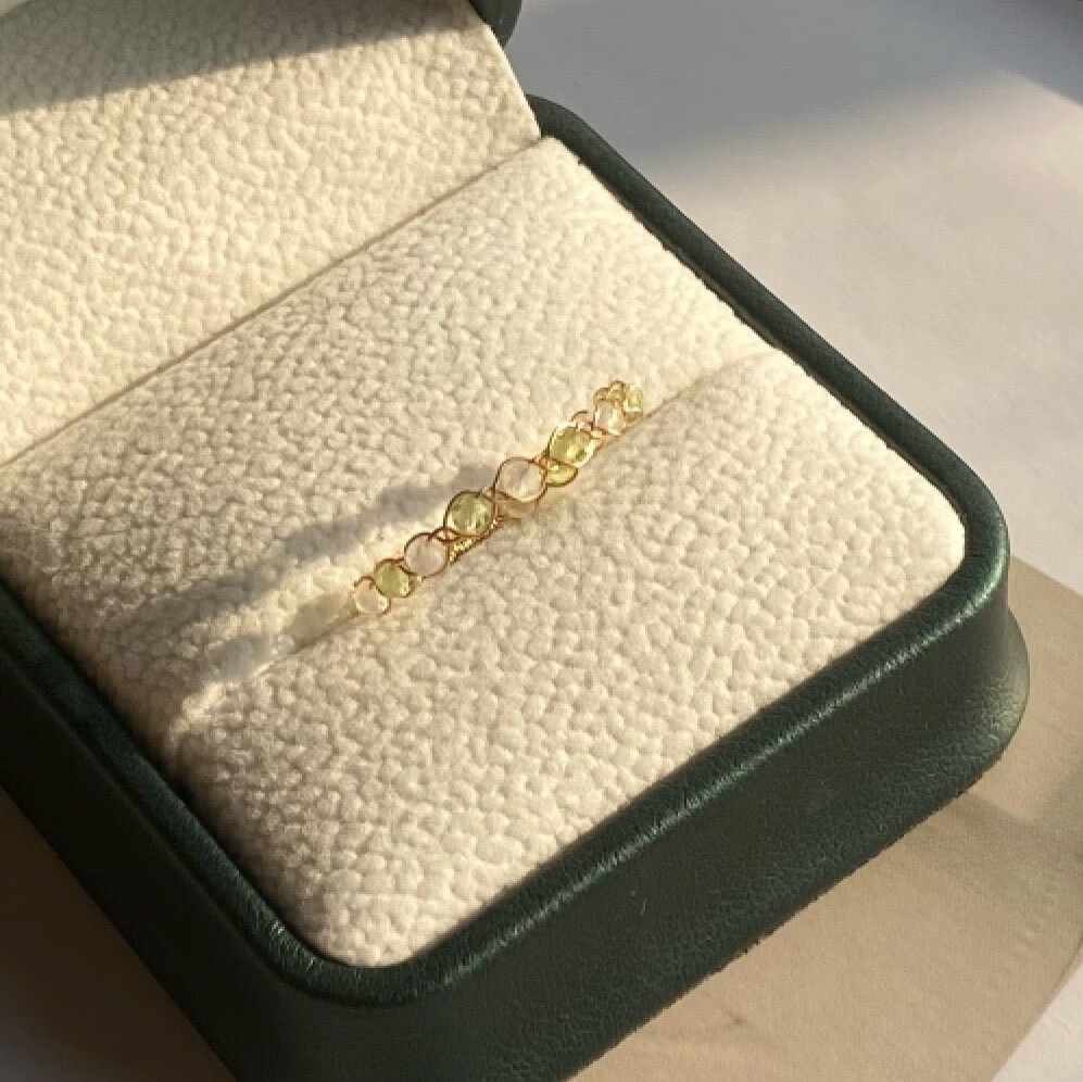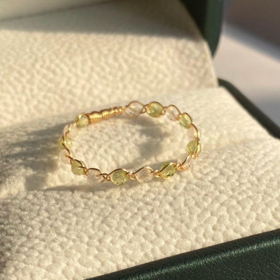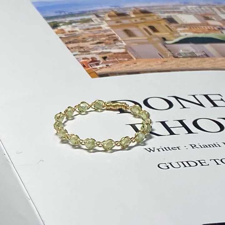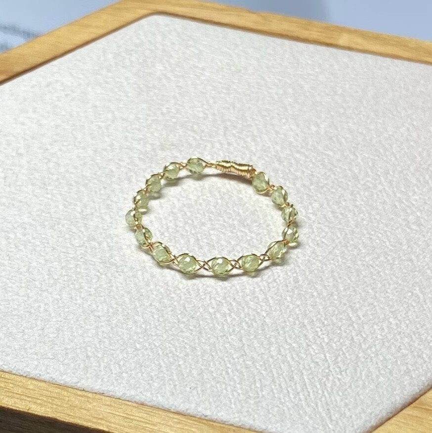 Moyun natural crystal peridot white moonlight olive green woven ring forest style small fresh retro pure beauty thin circle stacked peridot finger circumference 50mm