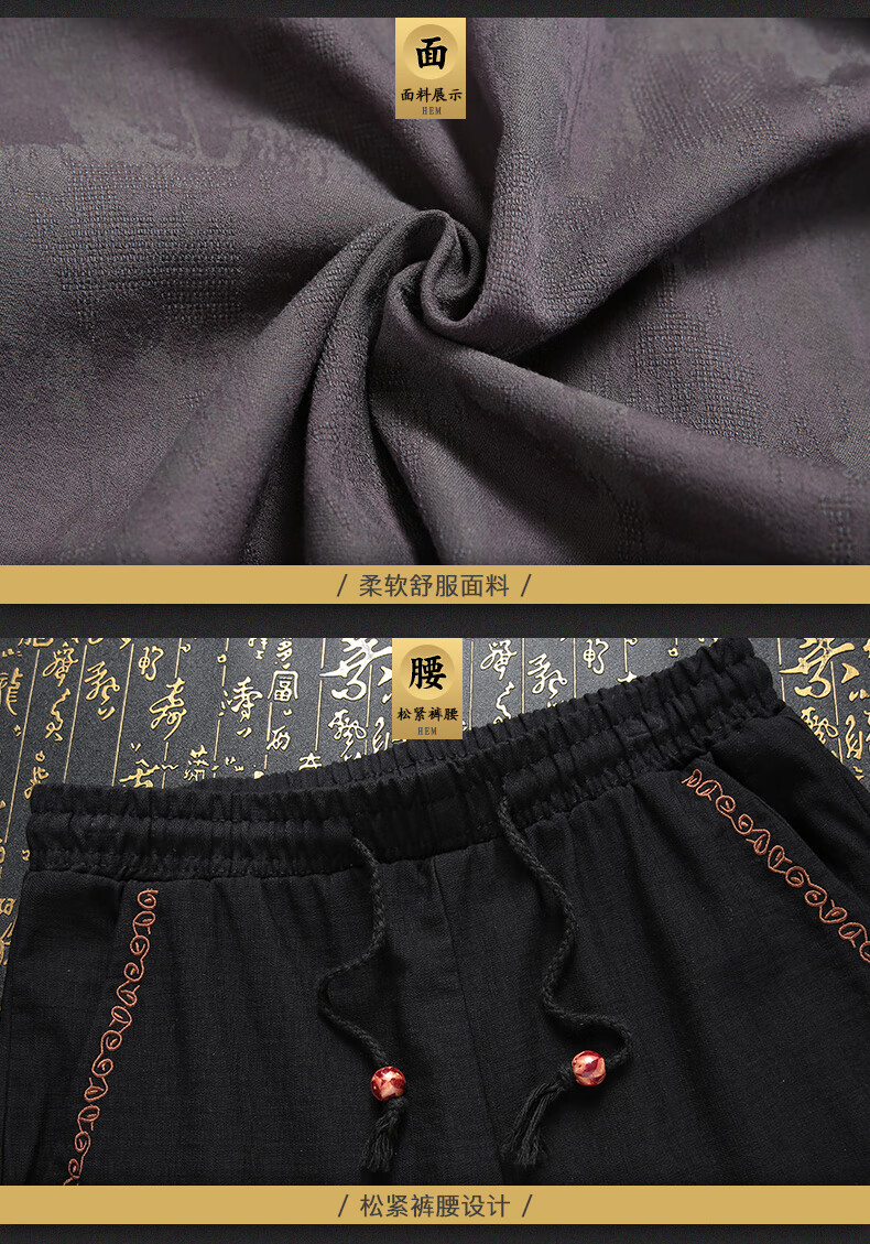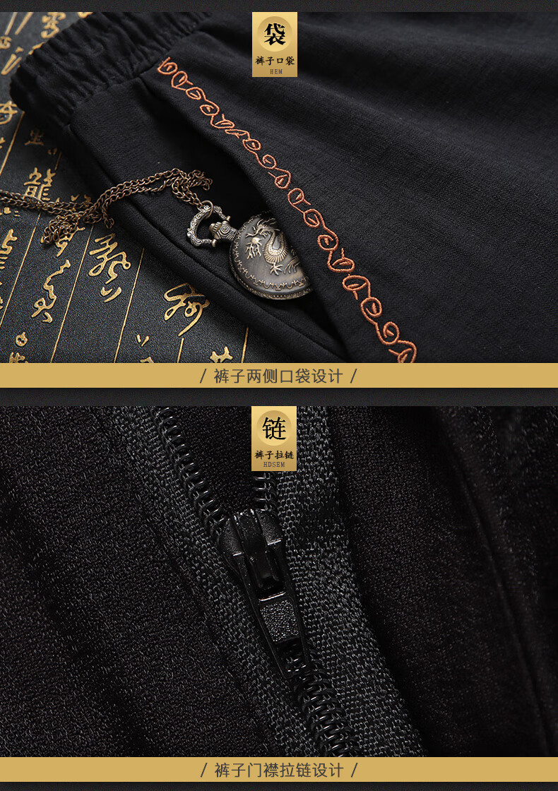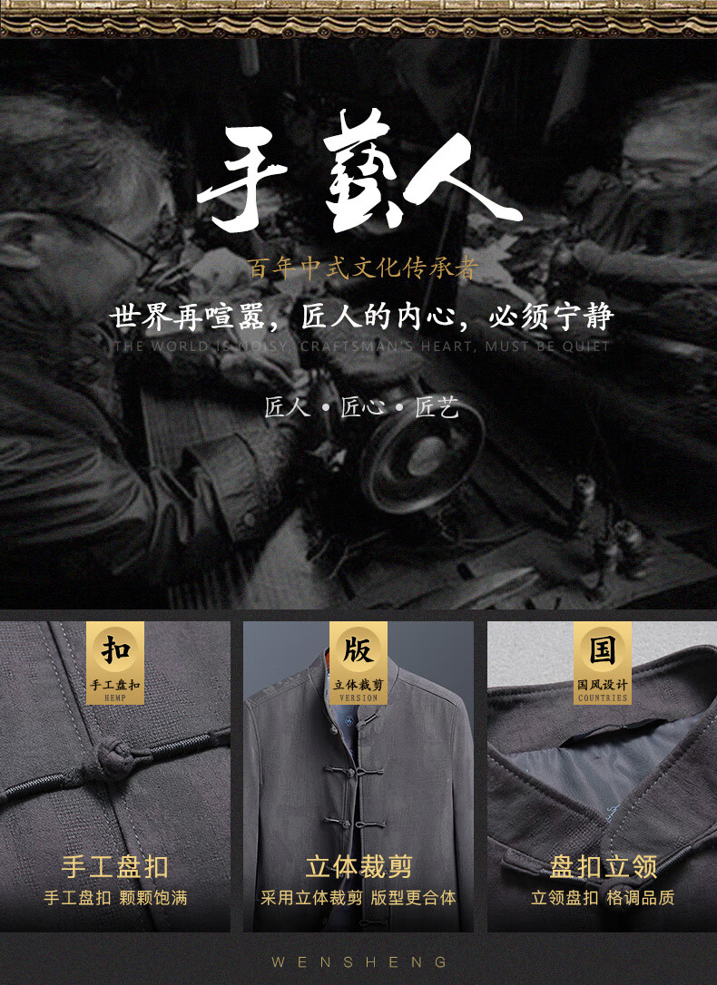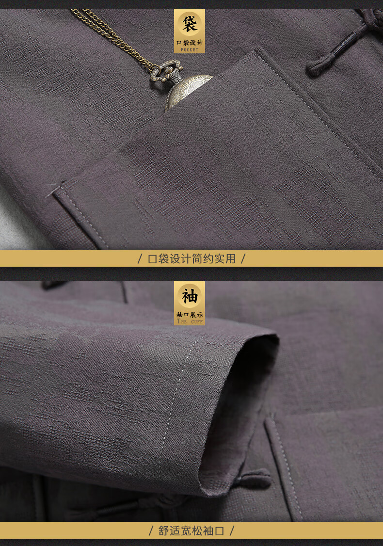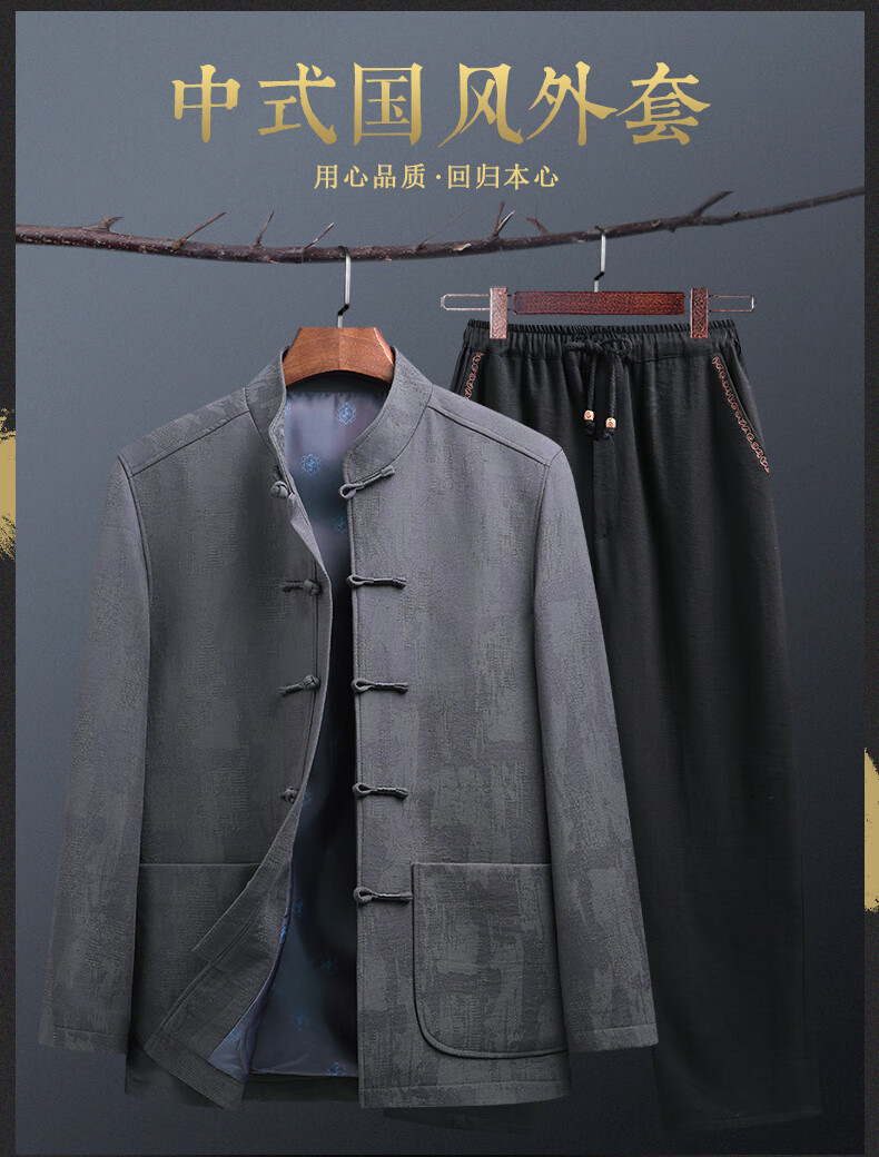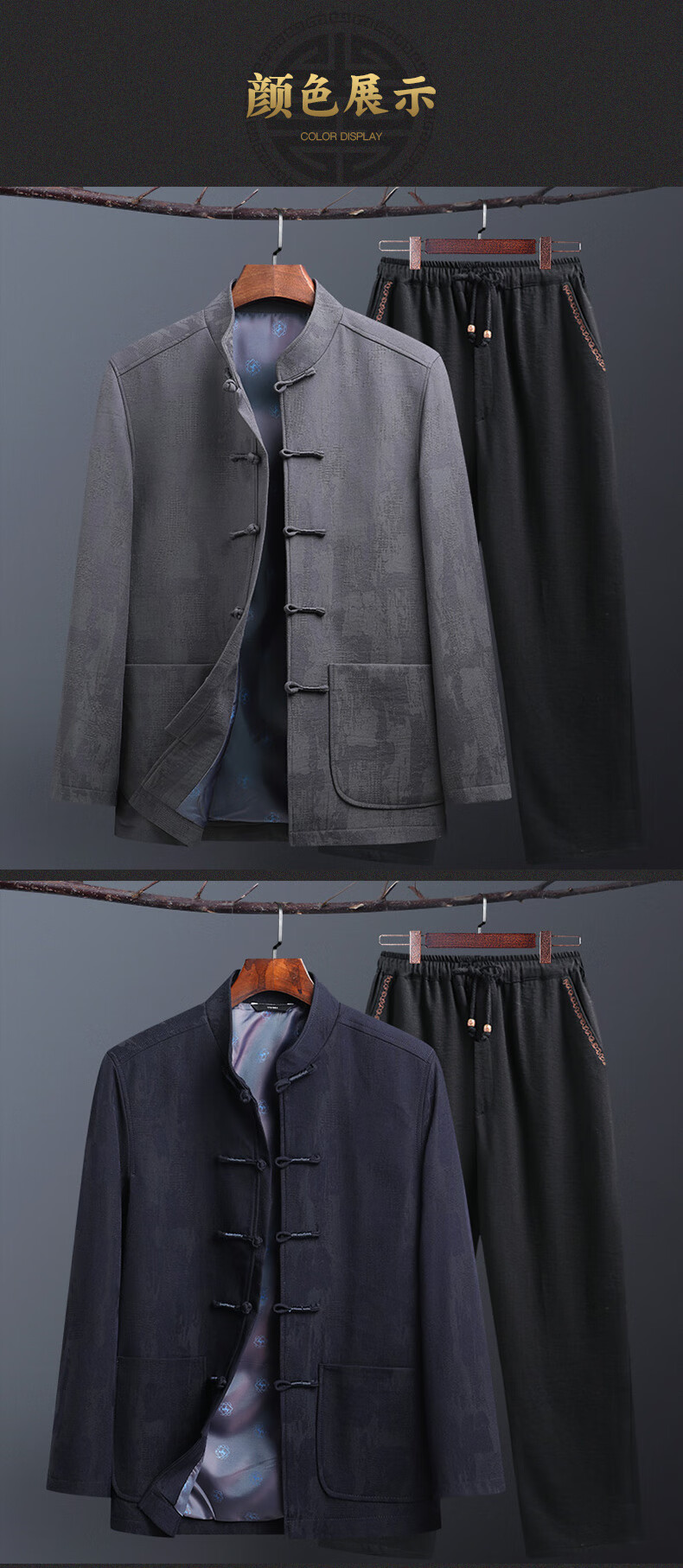 Hengyuanxiang middle-aged and elderly spring and autumn clothing Tang suit men's long-sleeved coat dad's tunic suit elderly grandfather's clothes Chinese style suit black suit (top + * pants) M 100-120Jin Jin equals 0.5 kg