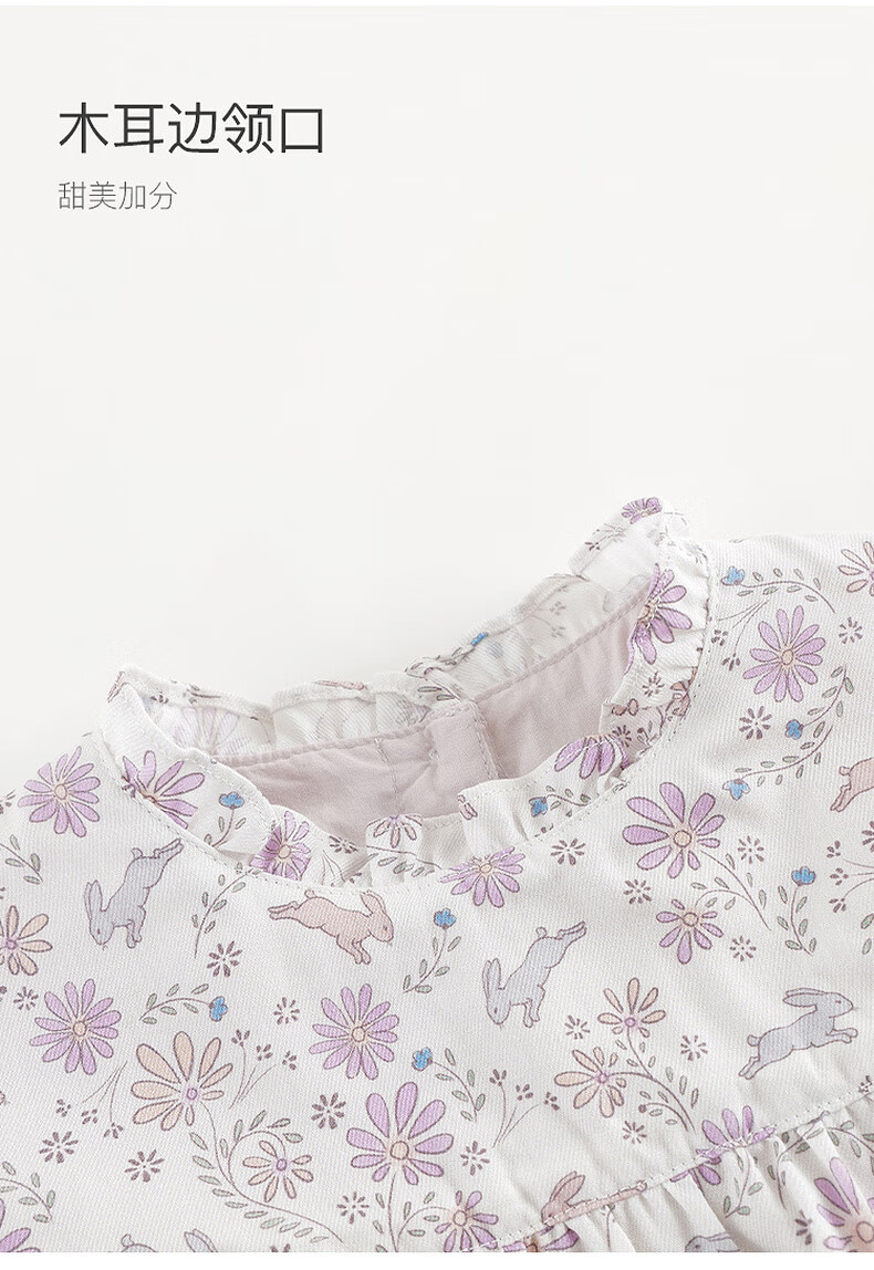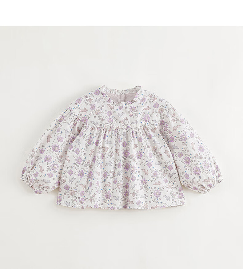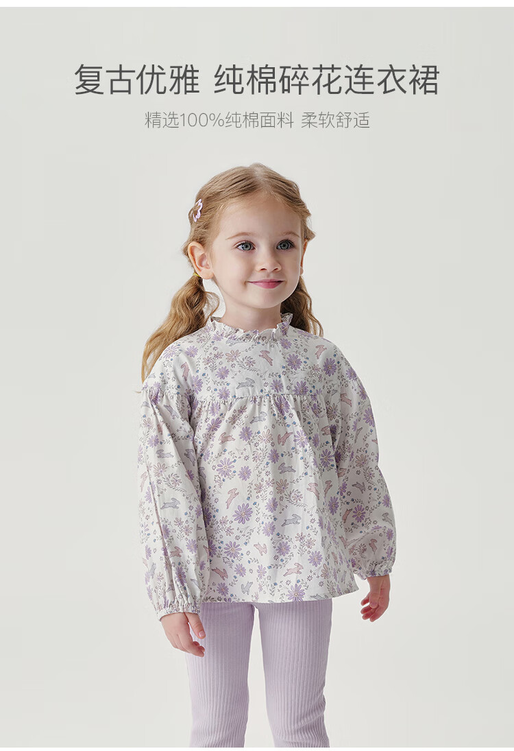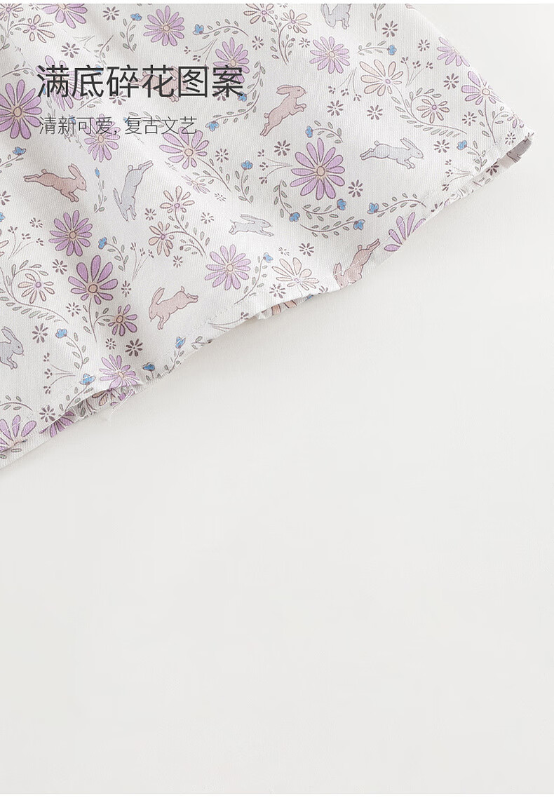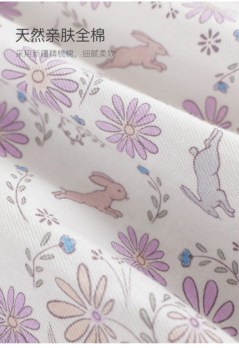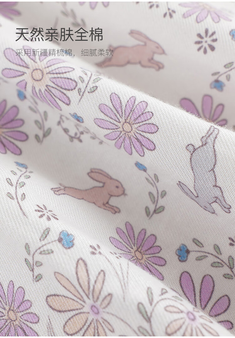 MARC&JANIE Girls' Full-soled Floral Cotton Shirt Spring and Autumn New Style 241111 Purple Bunny 100 (recommended height 91-100)